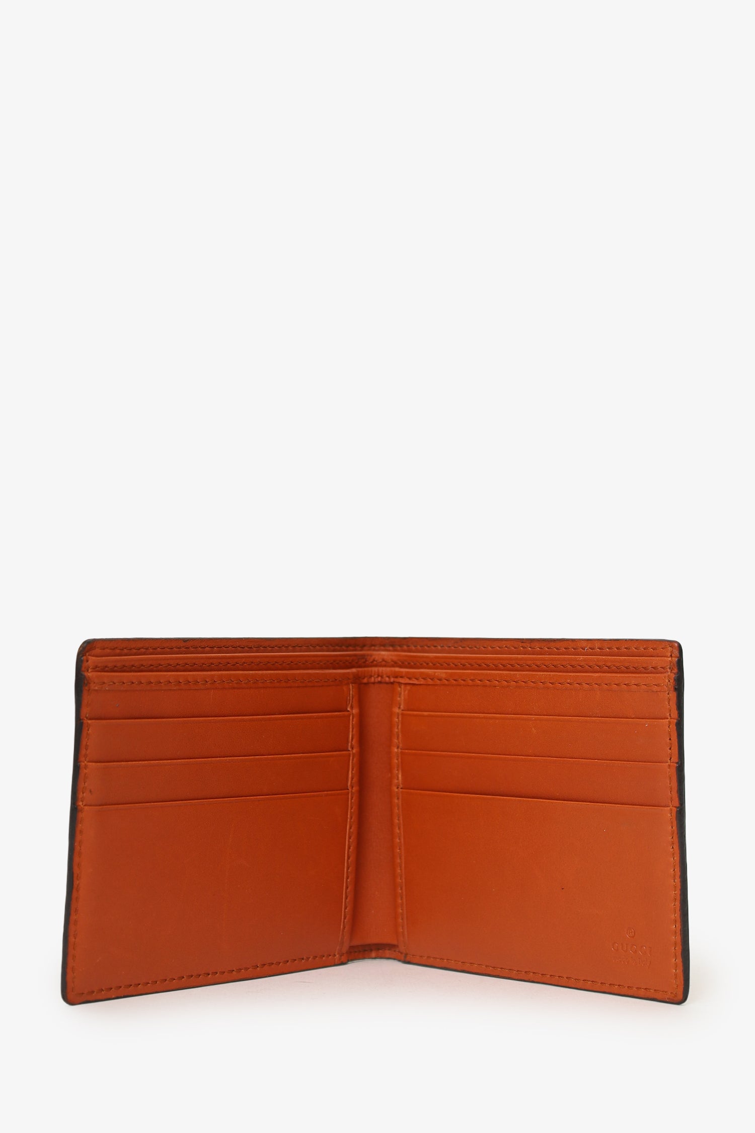 Refresh availabilityGucci Brown Leather Bi-Fold Wallet. Lined interior with 10 pockets; 6 card slots; 2 slip, and 2 bill. Tonal stitching.