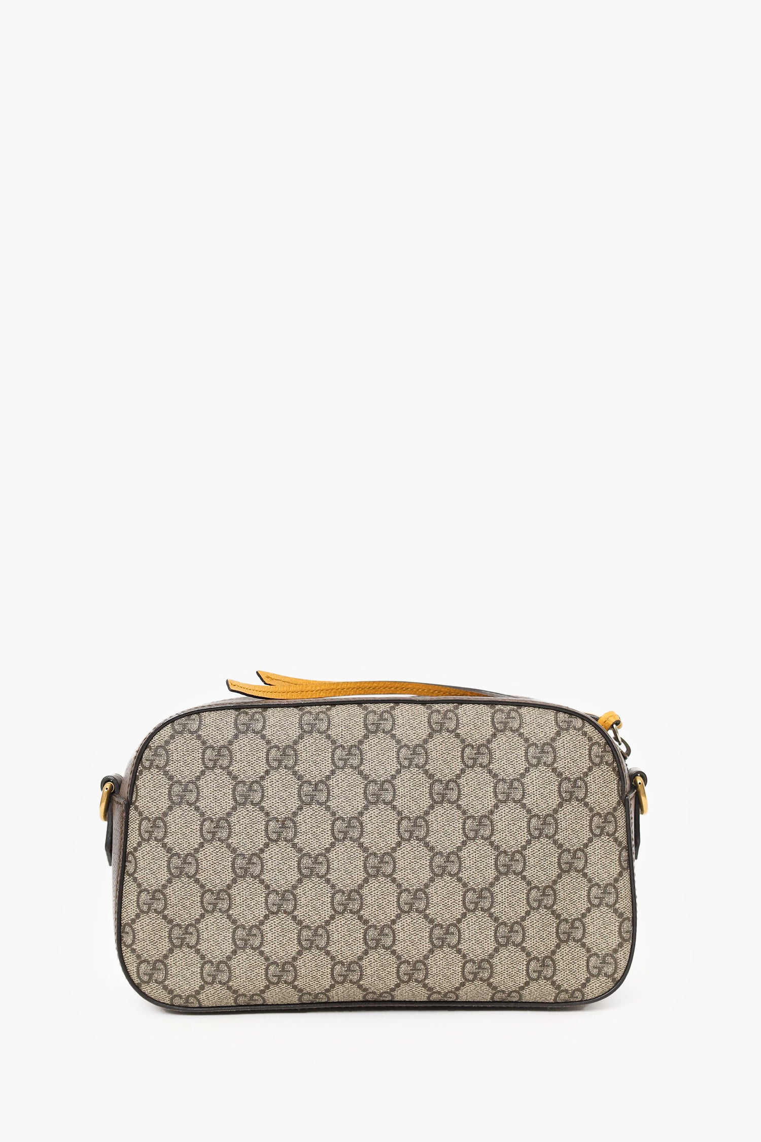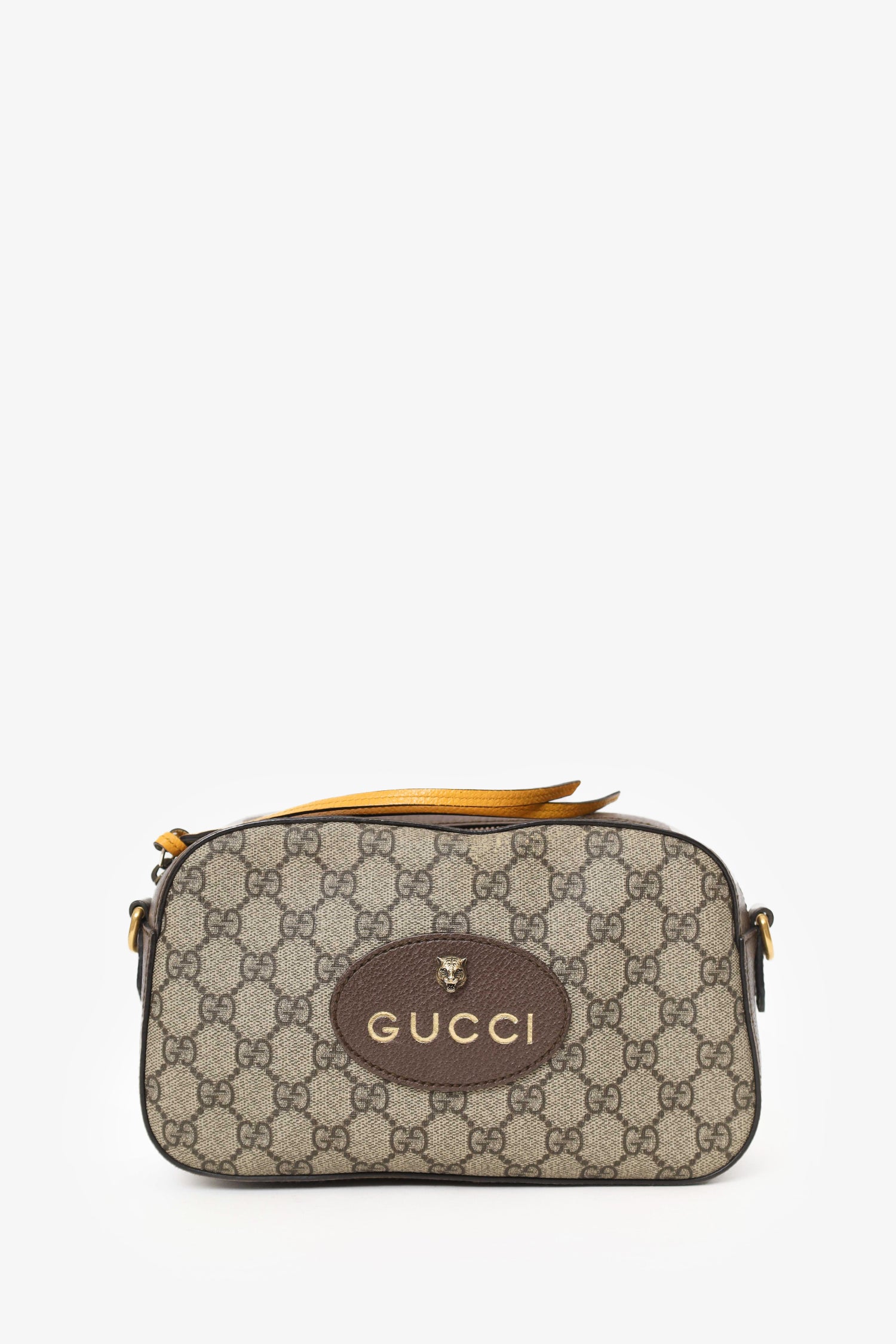 Refresh availabilityGucci Brown Neo Vintage Messenger Bag With Web Strap. Top zip closure. Removable canvas strap. Lined interior. Single interior slip pocket. Gold-tone hardware. Tonal stitching.