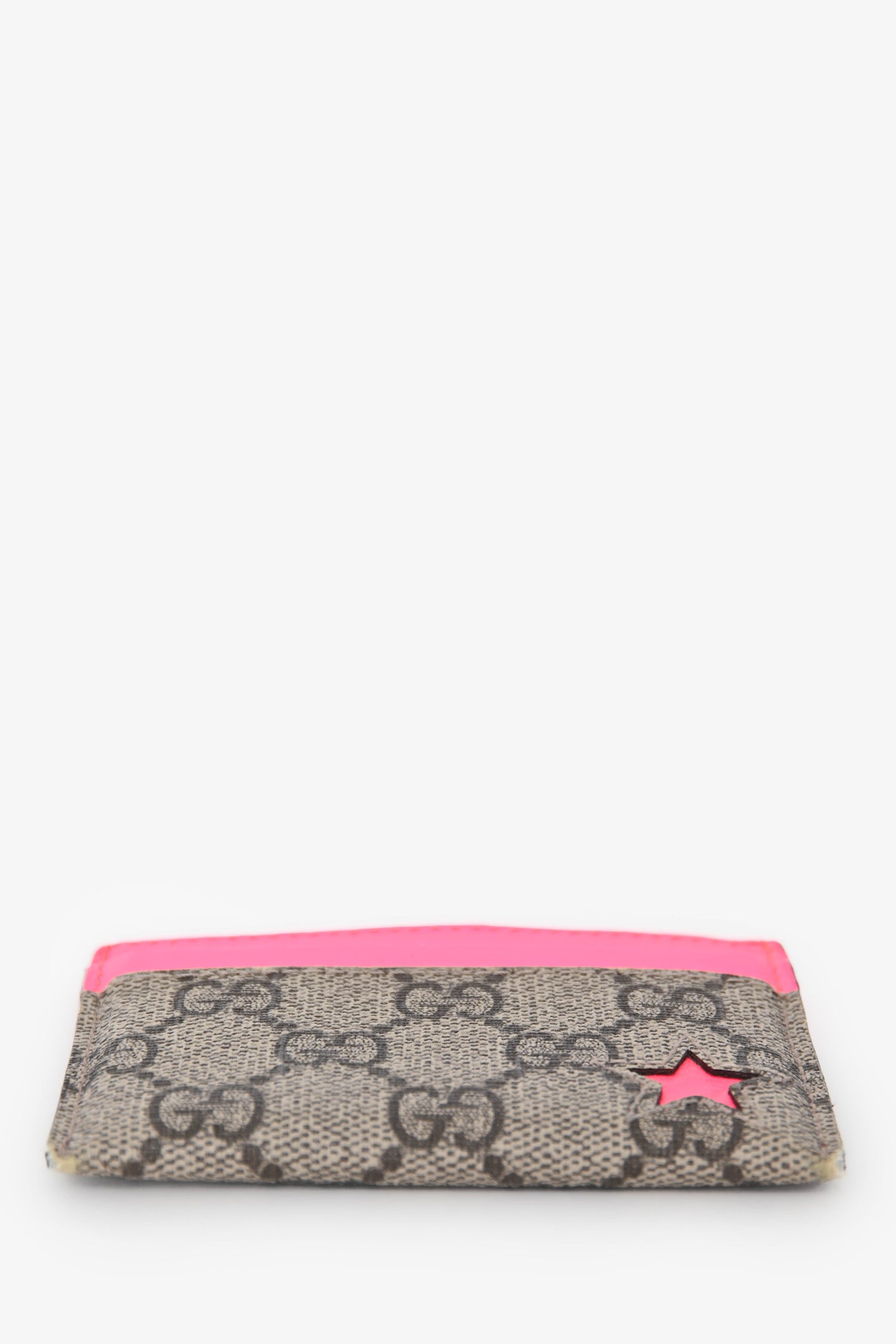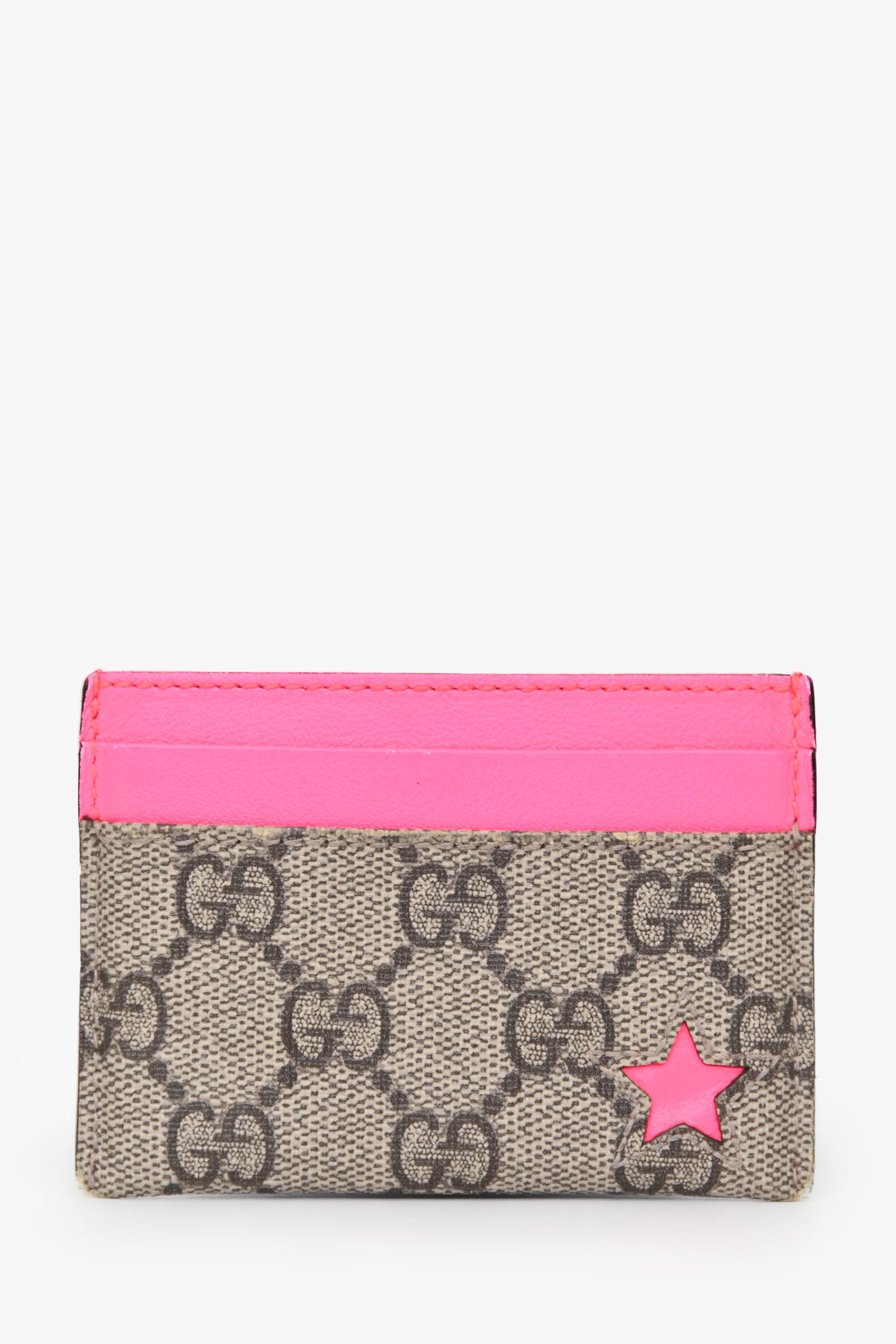 Refresh availabilityGucci Brown/Neon Pink Coated Canvas/Leather Cardholder. 5 card slots. Tonal stitching.