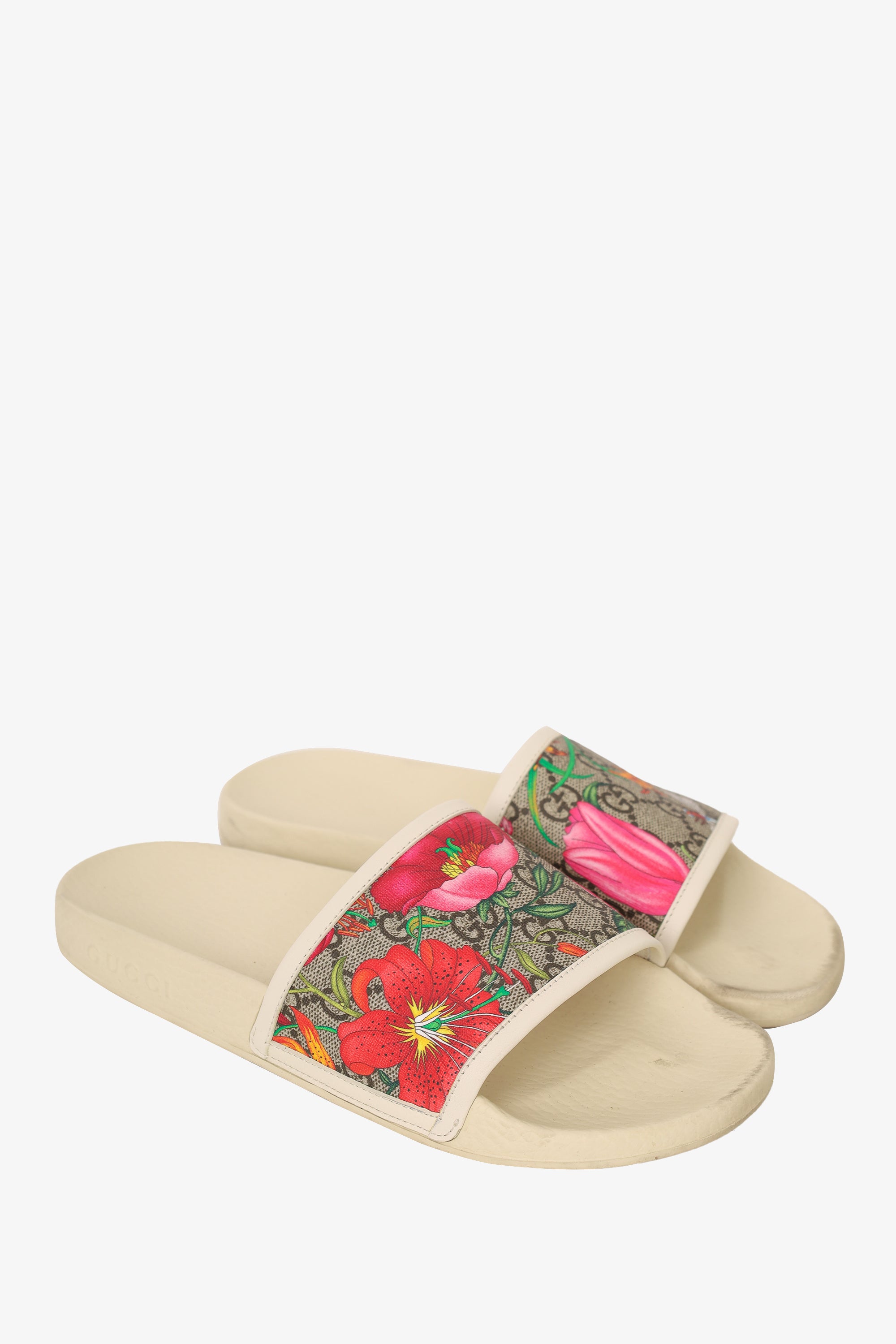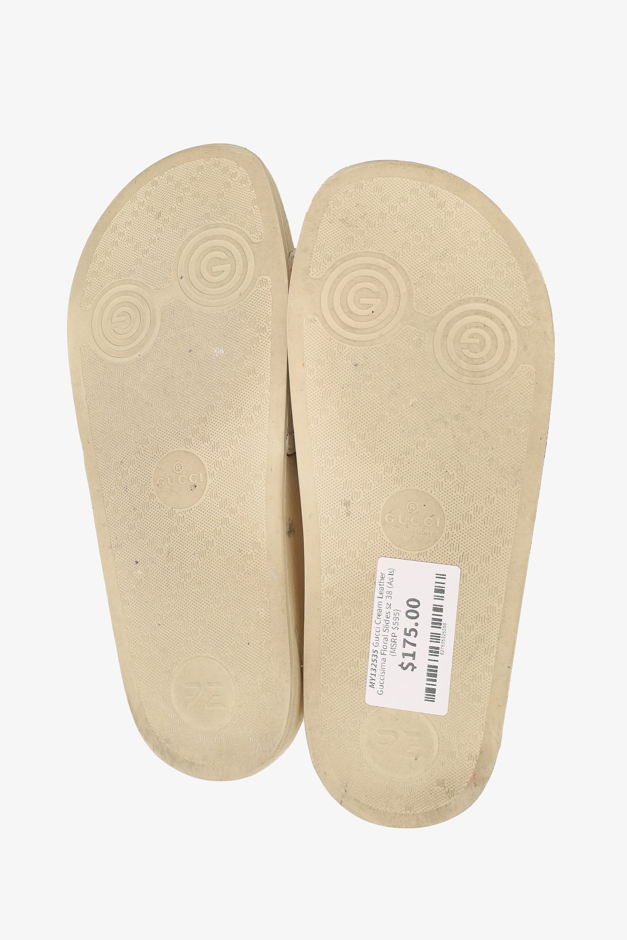 Gucci Cream Leather Guccisima Floral Slides Size 38 (As Is)