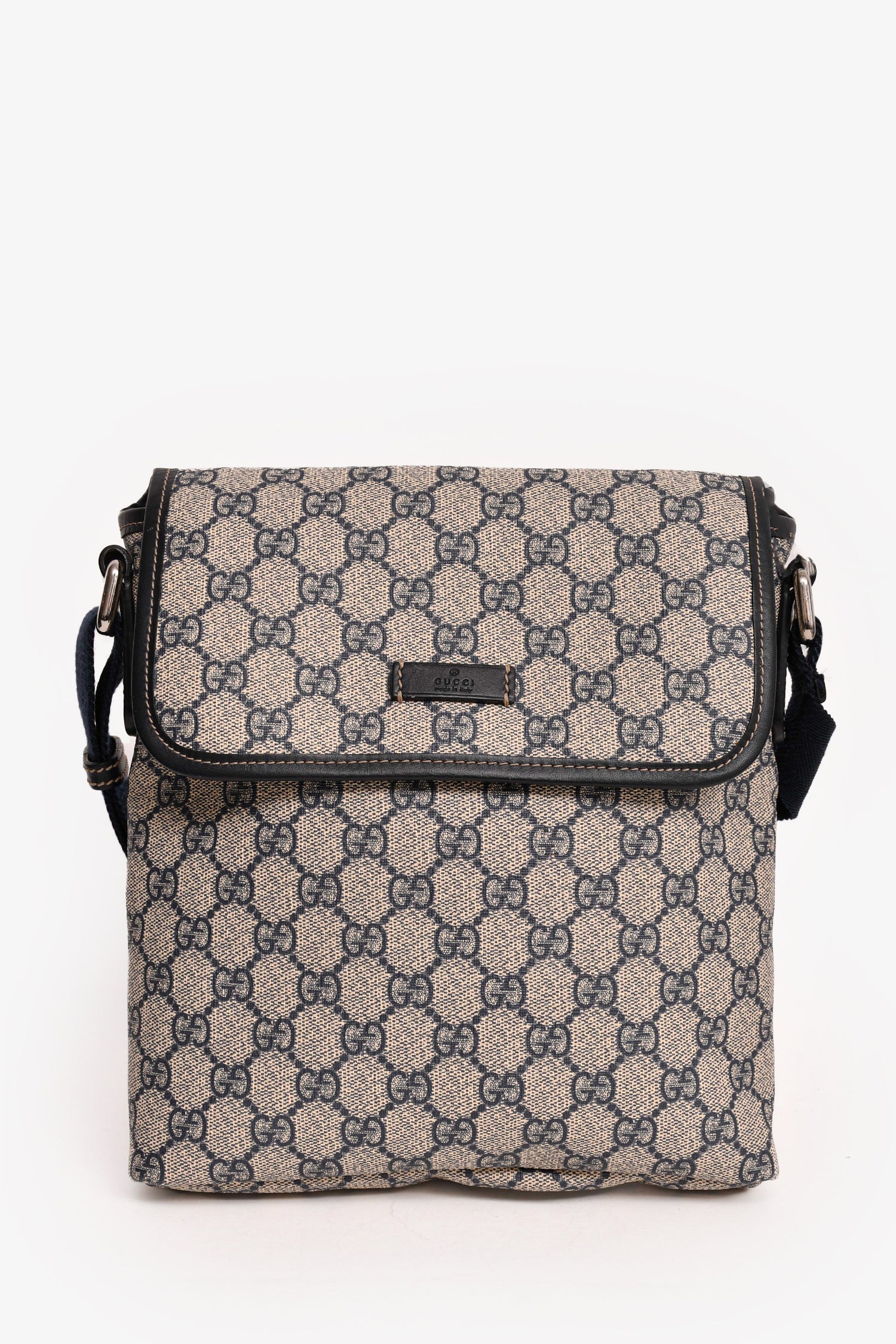 Refresh availabilityGucci Cream/Navy GG Supreme Messenger Bag. Top magnetic closure. Interior small pocket. Adjustable strap. Tonal stitching.
