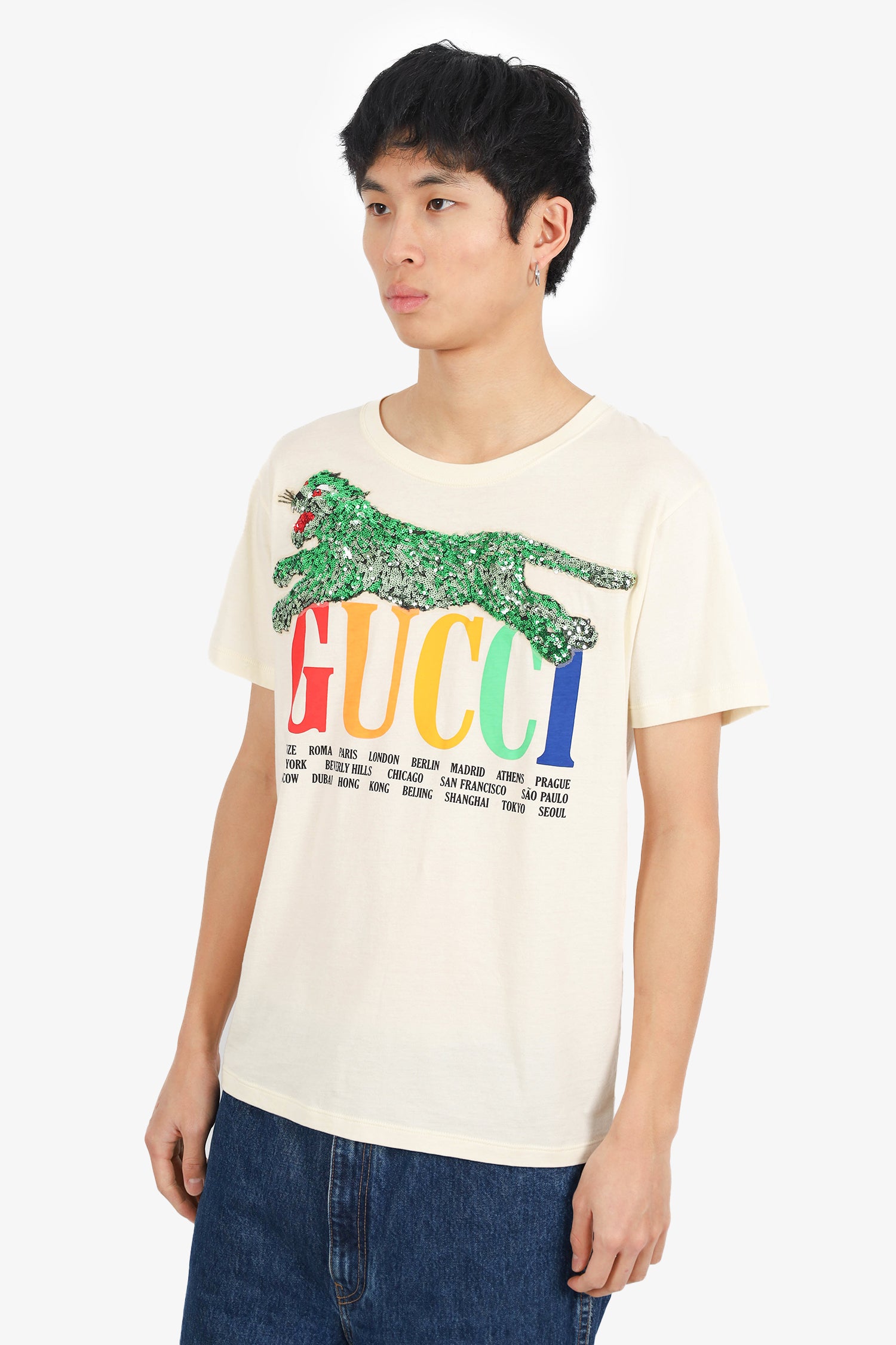 Gucci Cream Sequin City Detail T-Shirt Size XS