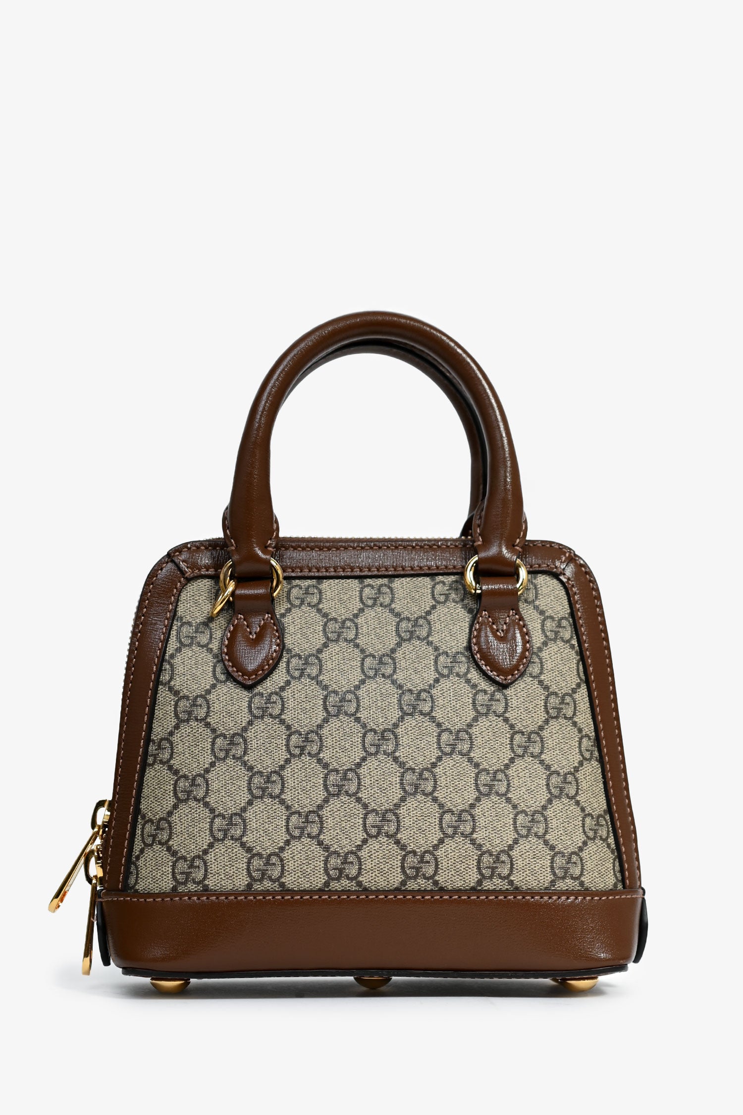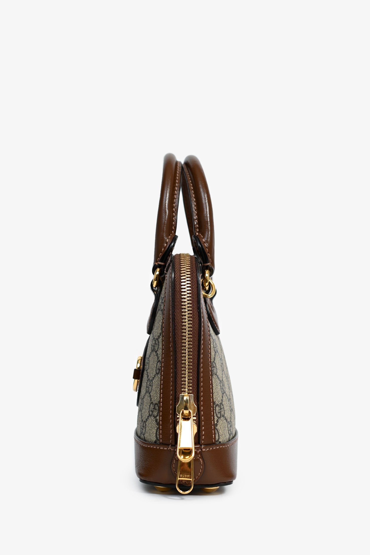 Gucci GG Supreme Brown Leather 1955 Horsebit Top Handle with Strap