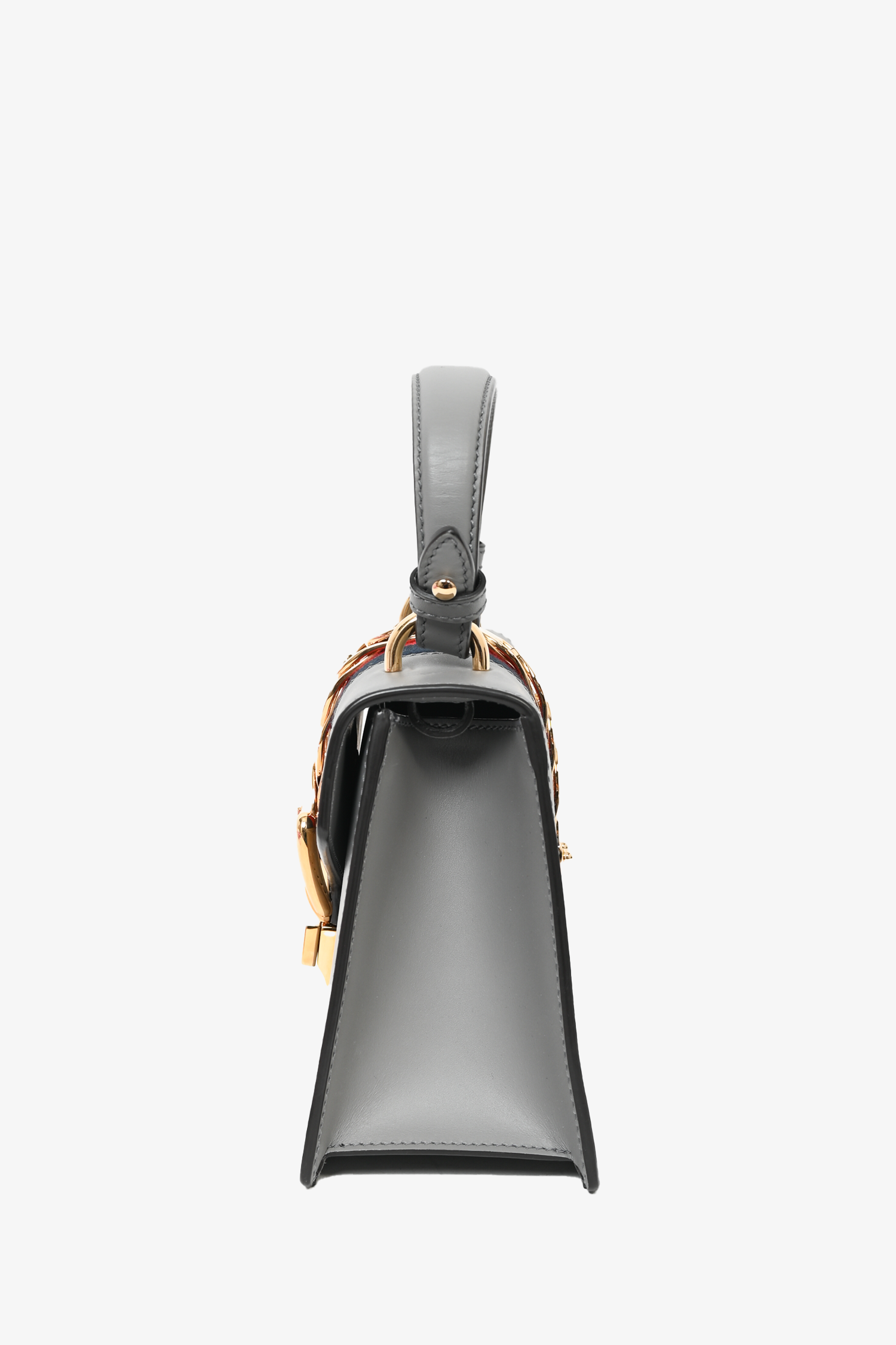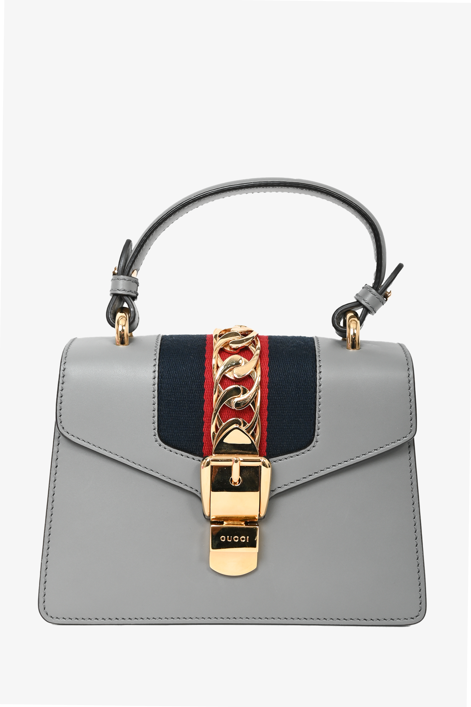 Refresh availabilityGucci Grey/Web Leather Sylvie with 2 Straps Crossbody Bag. Fold over flap with push-tab closure. 1 interior slip pocket. Removable crossbody straps. Gold-tone hardware. Tonal stitching.