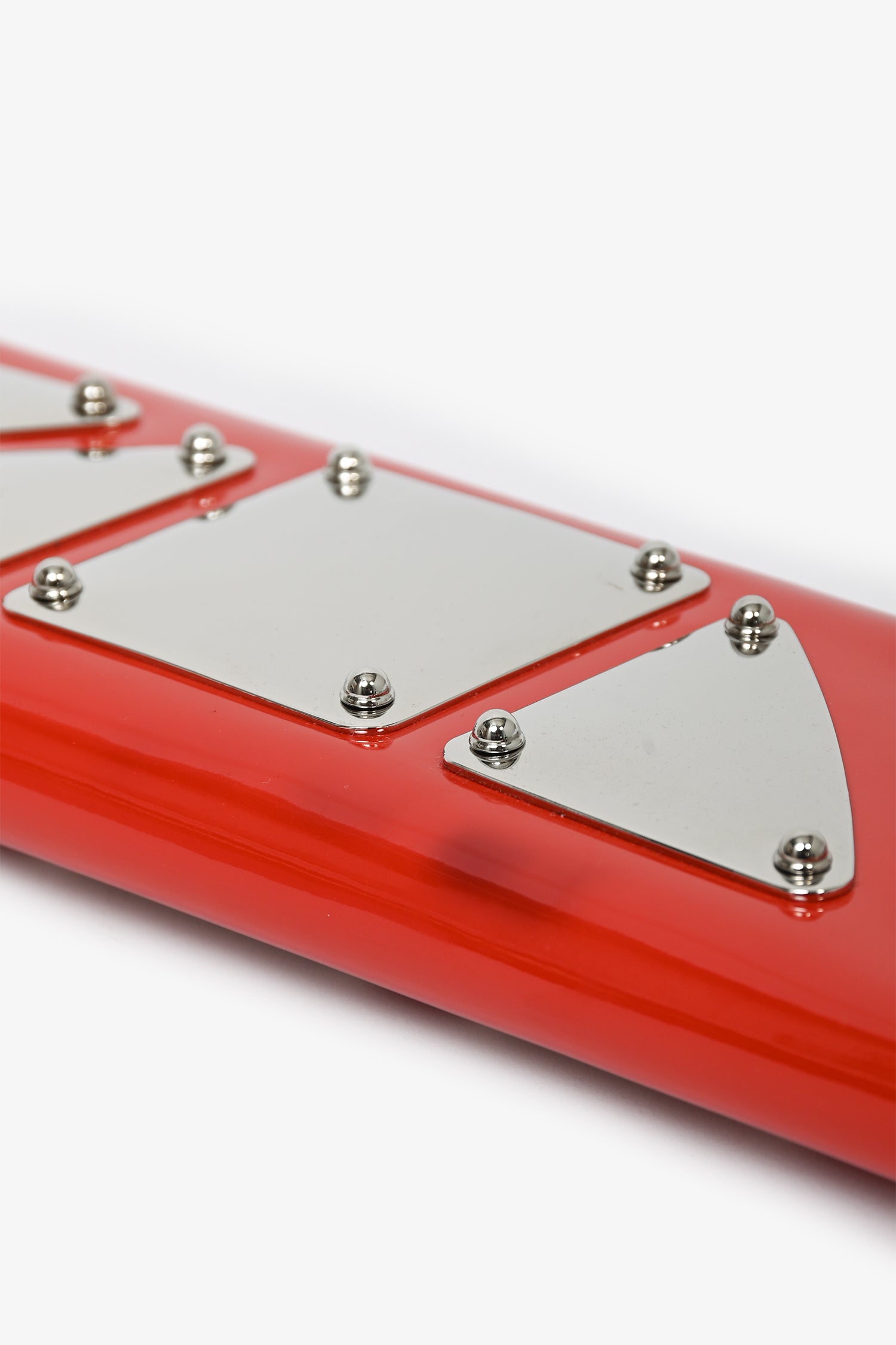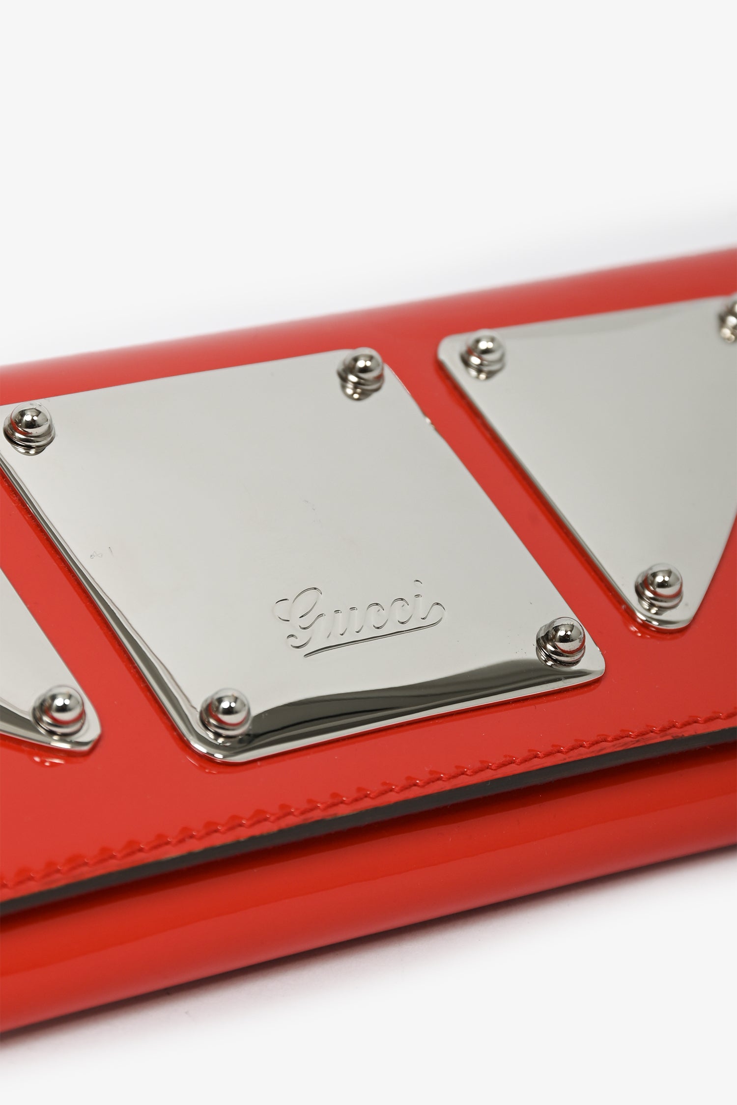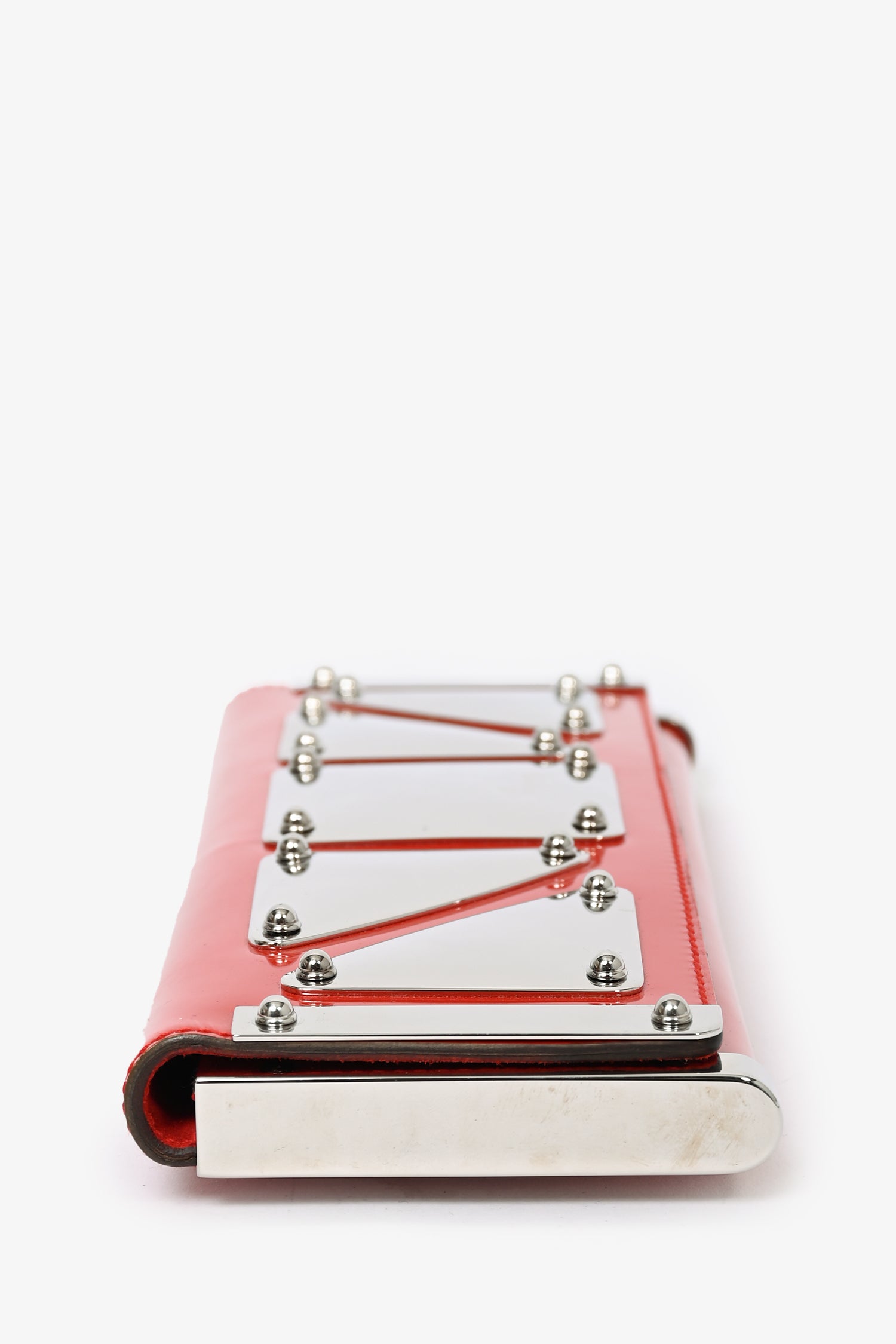 Gucci Red/Silver Toned Patented Leather Plated Clutch