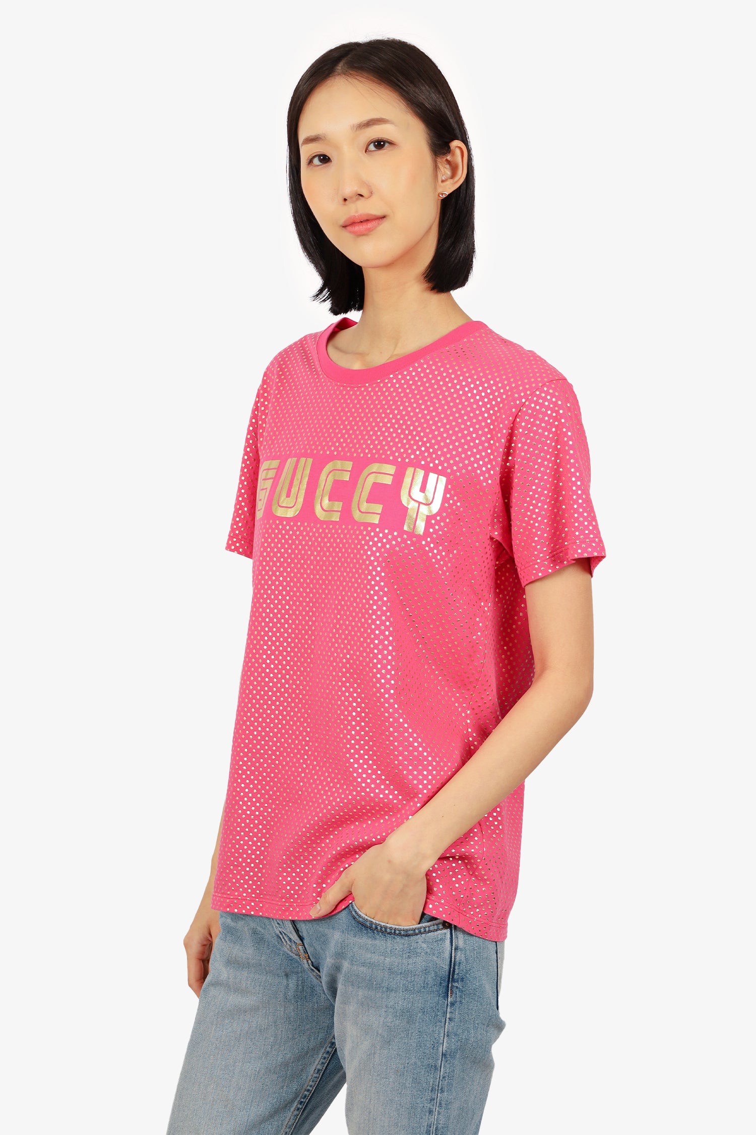 Gucci Pink/Gold Star Printed 'Guccy' T-Shirt Size XS