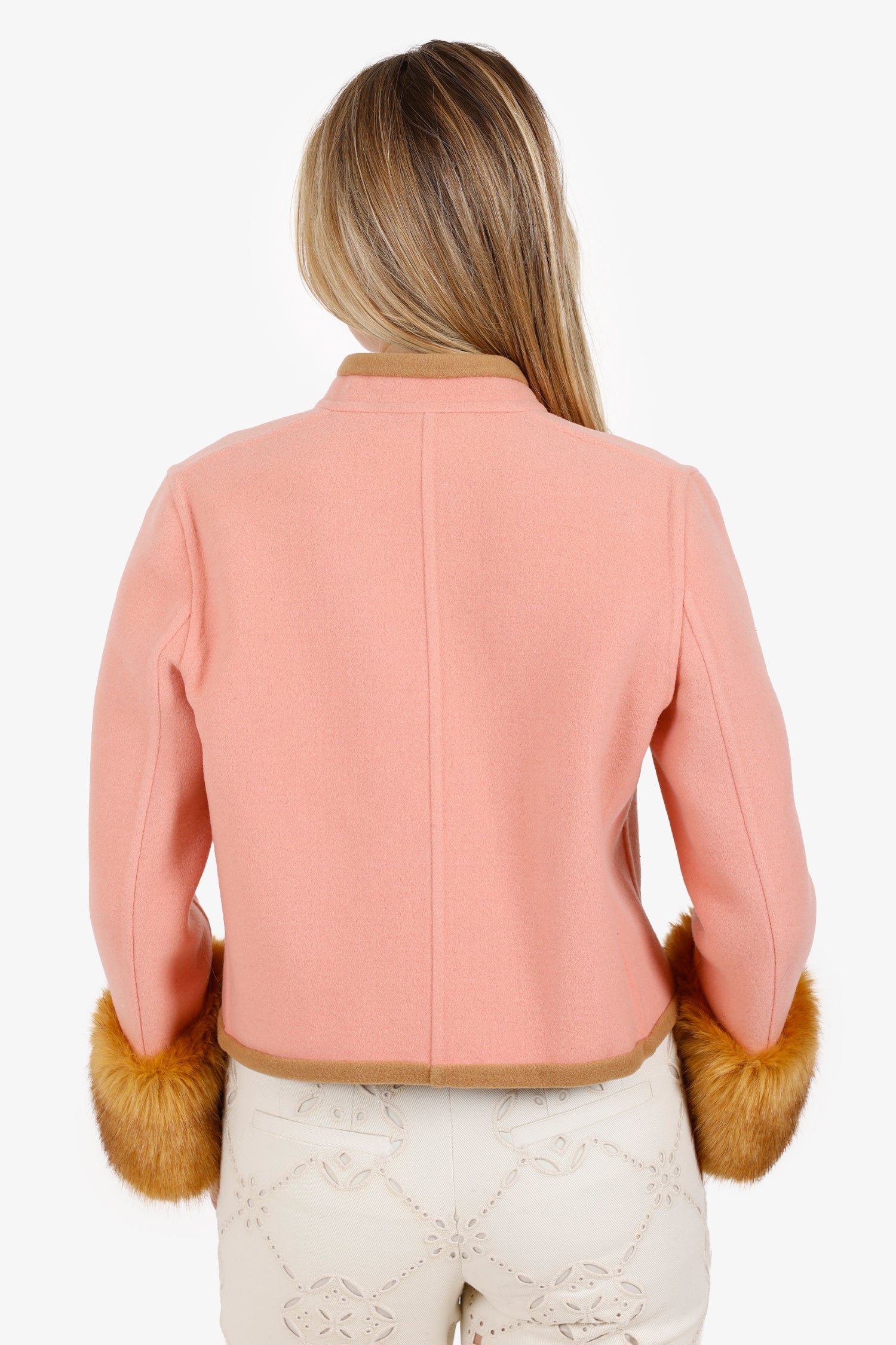 Gucci Pink Wool Lion Head Buckle Detail Coat With Fur Size 42