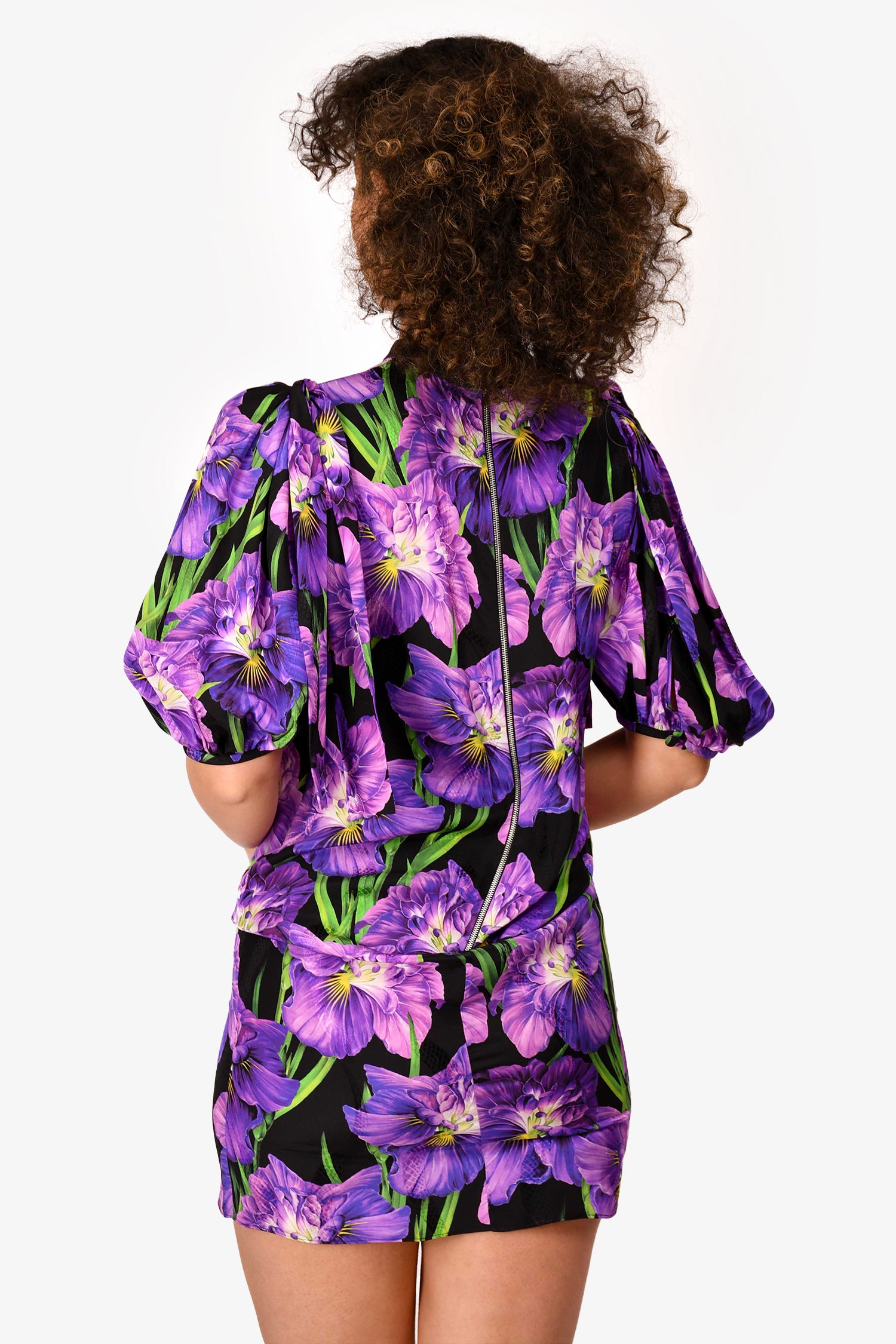 Gucci 2016 Purple/Black Silk Floral Printed Short Sleeve Mini Dress Size 36