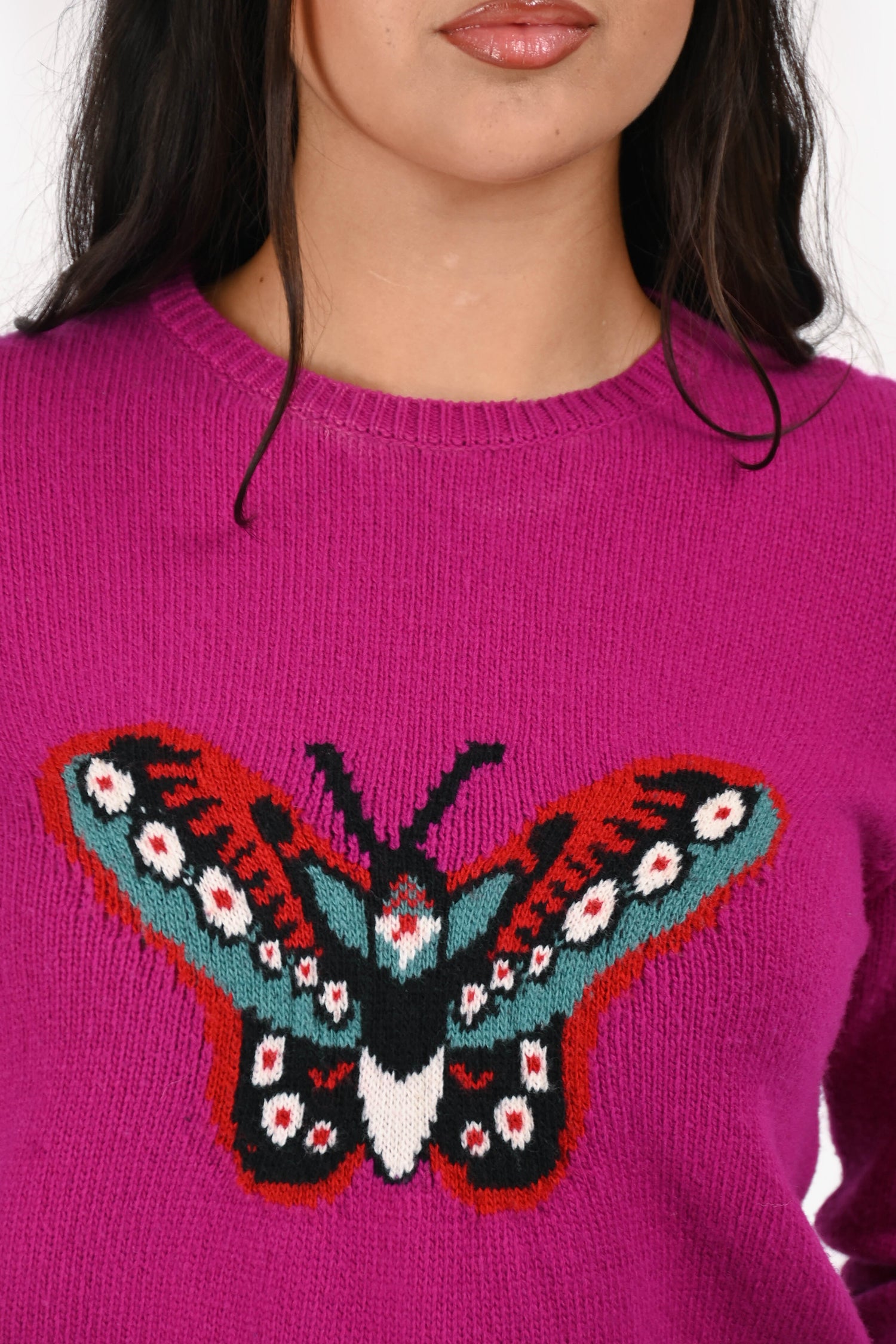 Refresh availabilityGucci Purple Wool 'Butterfly Intarsia' Sweater. Pull-on. Ribbed neck, cuffs, and hemline. Tonal stitching.