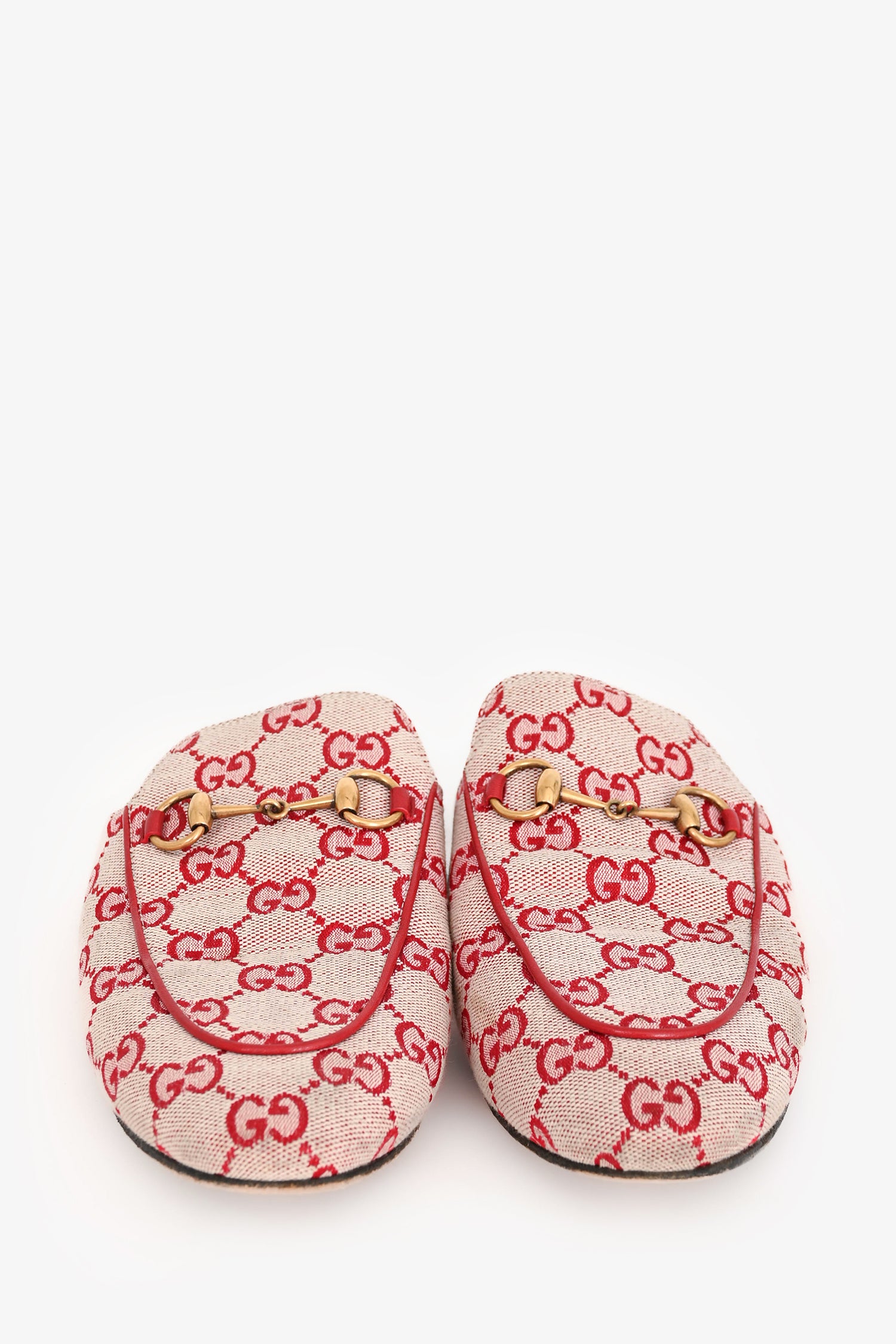 Gucci Red GG Logo Horsebit Princetown Slip-On Loafers Size 38