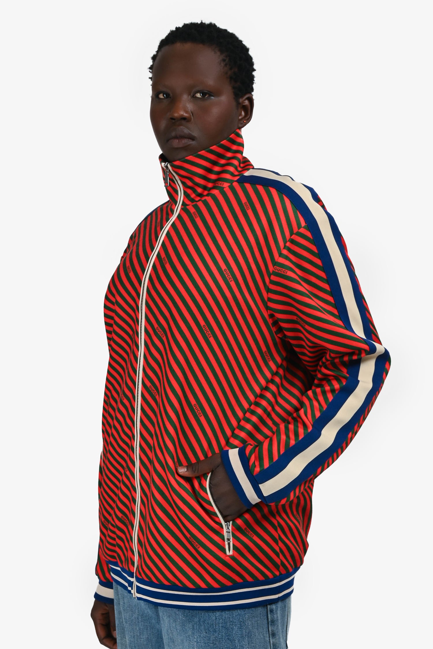 Gucci Red/Green Striped Zip-Up Jacket Size M Mens