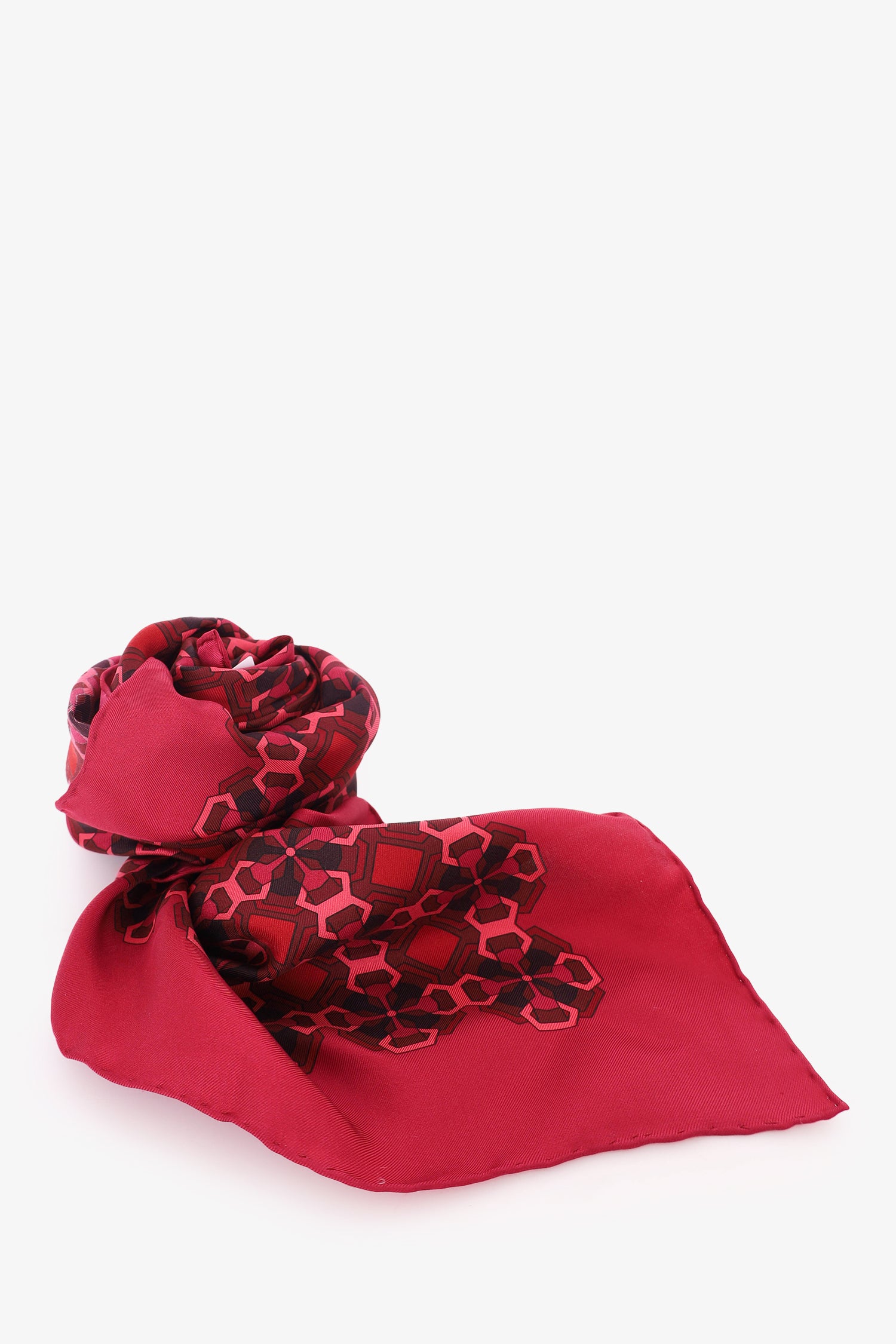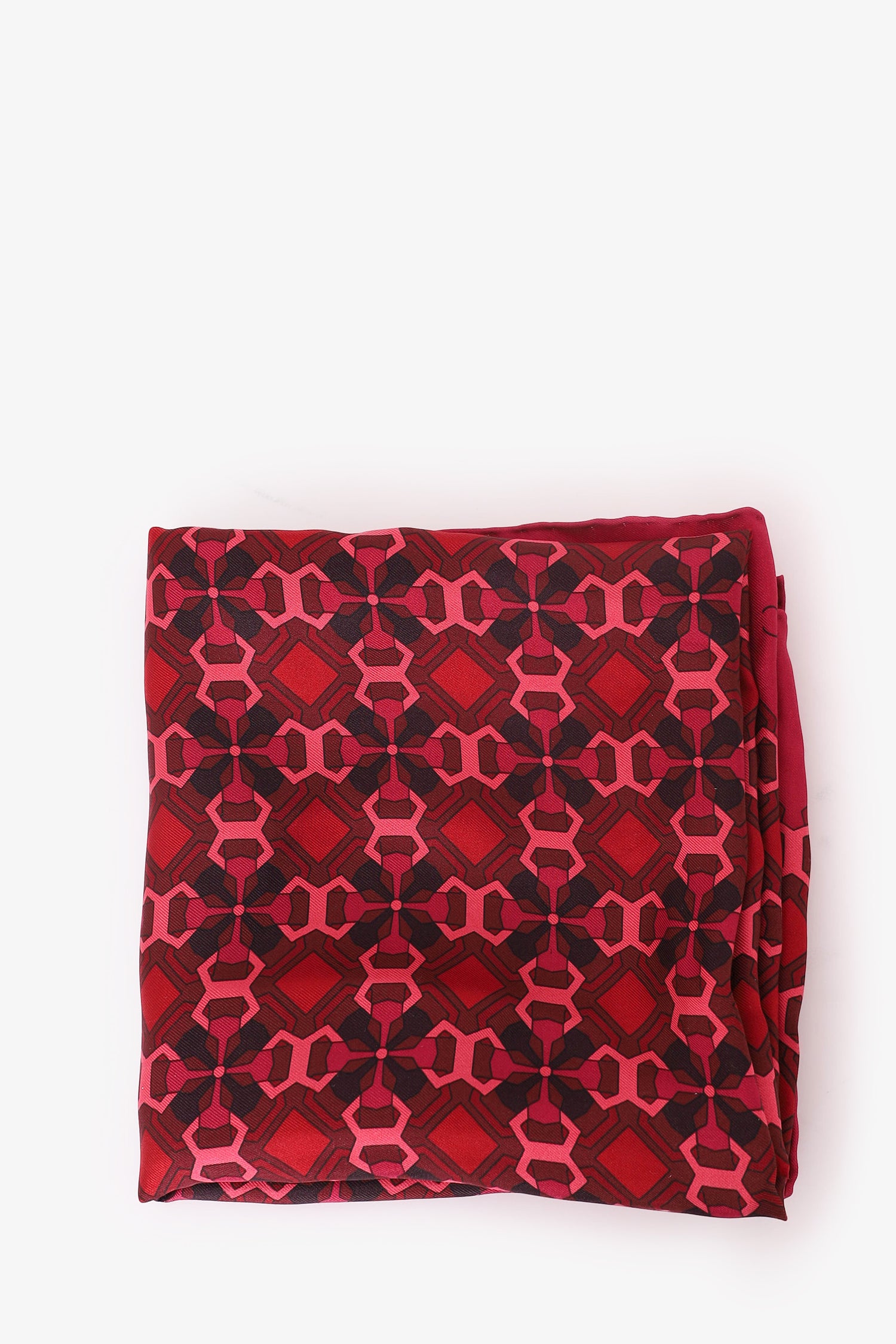 Refresh availabilityGucci Red Silk Printed Scarf. Tonal stitching.