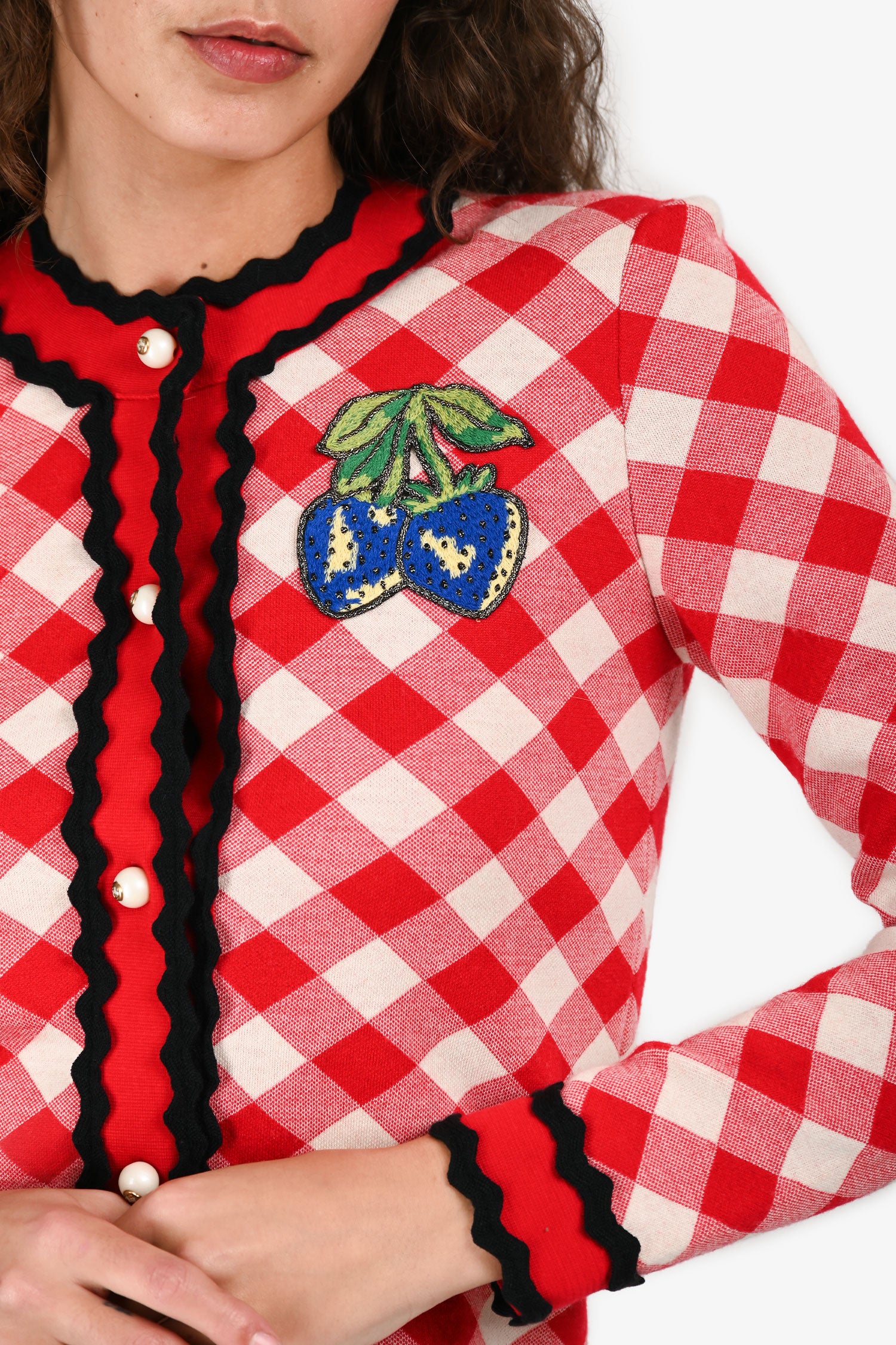 Gucci Red Wool Patterned Strawberry Embroidered Cardigan Size 12 Kids