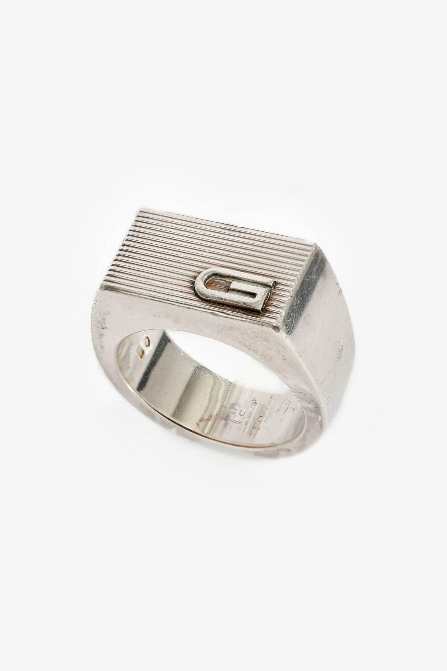 Gucci Sterling Silver 'Mille Righe' Ring Size 61 Mens