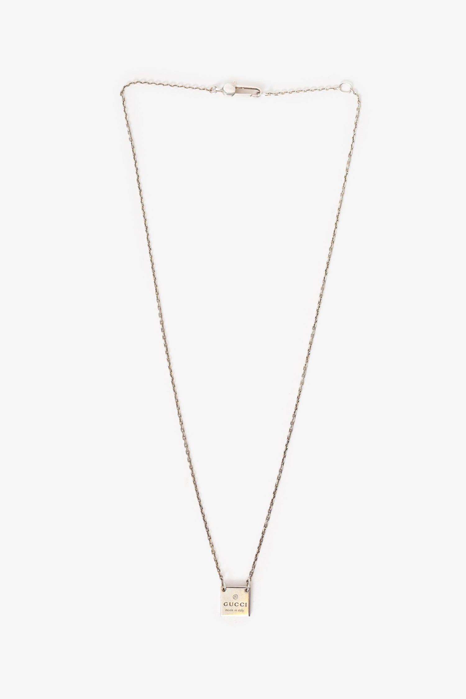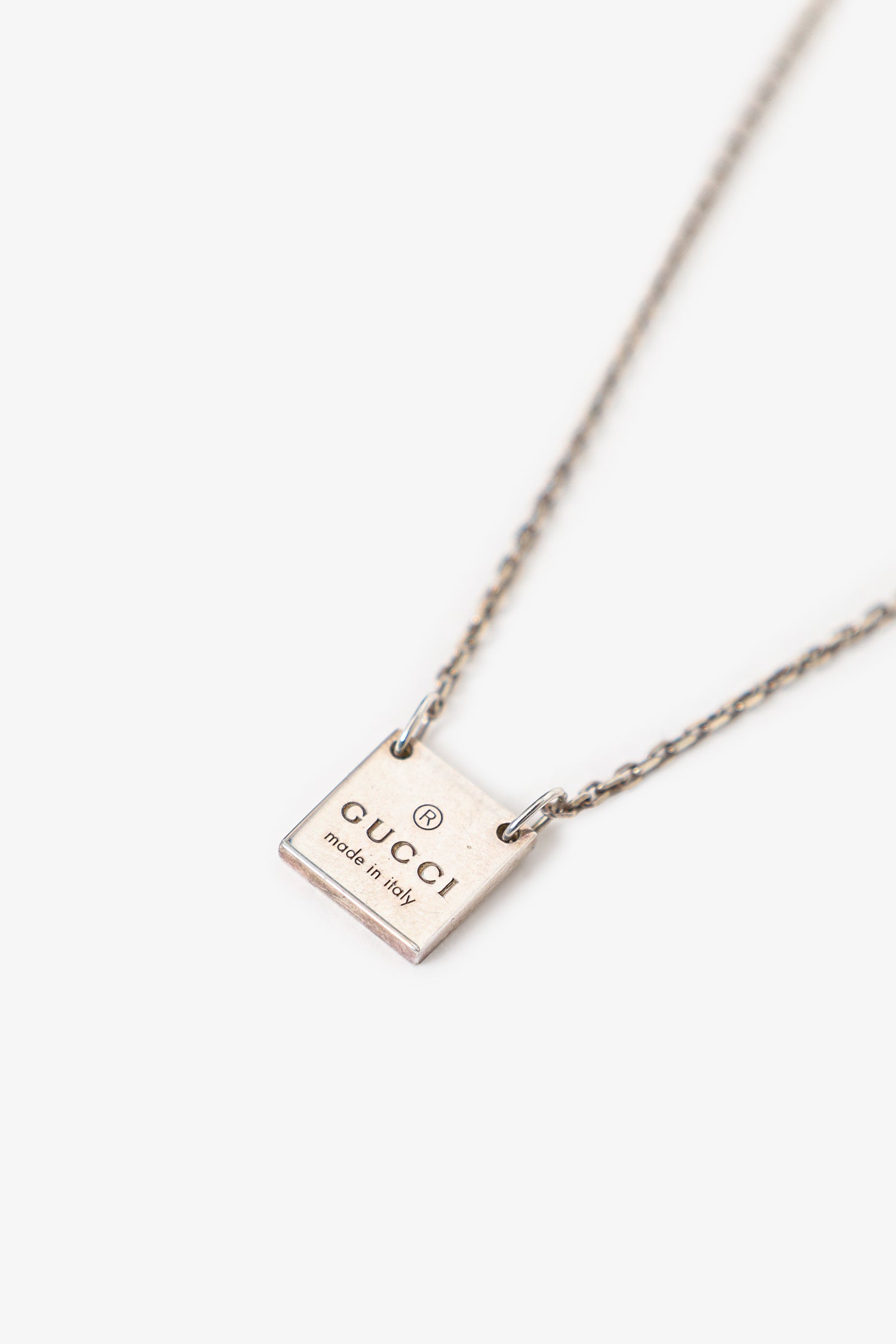 Refresh availabilityGucci Sterling Silver Square Trademark Pendant Necklace. Rear lobster-clasp closure. Silver-tone hardware.