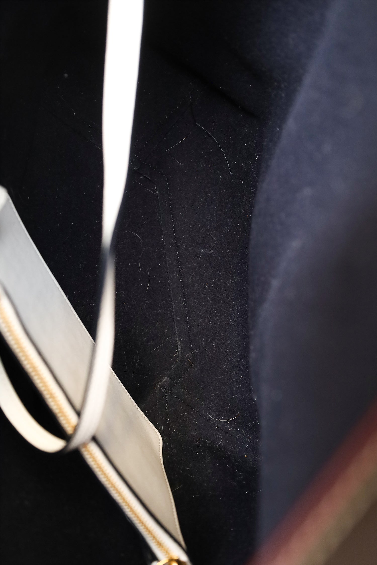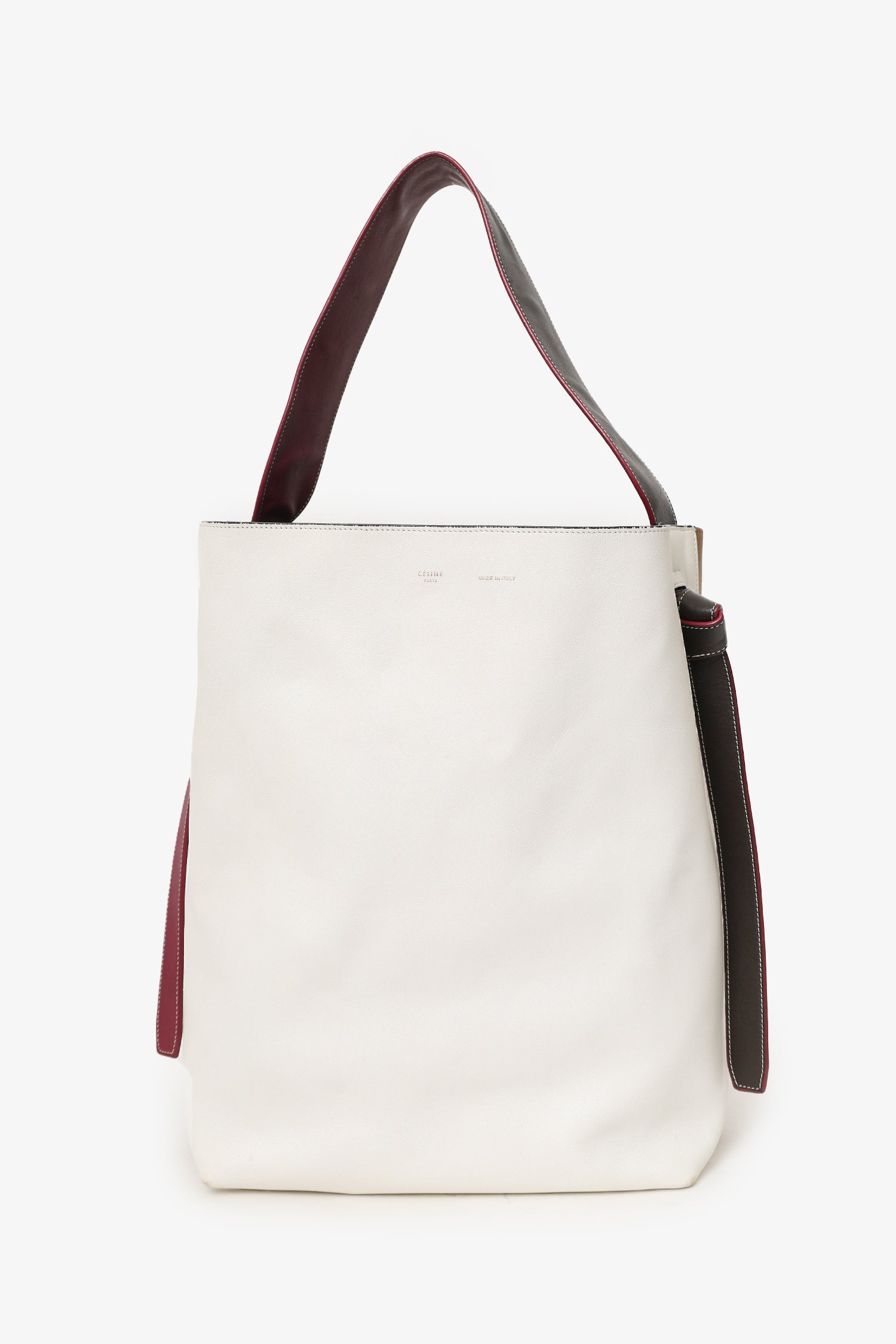 Refresh availabilityCeline Beige/White Leather Twisted Cabas Bag. Top open. Top strap. Open lined interior. Includes removable zip pouch. Tonal and contrast stitching.