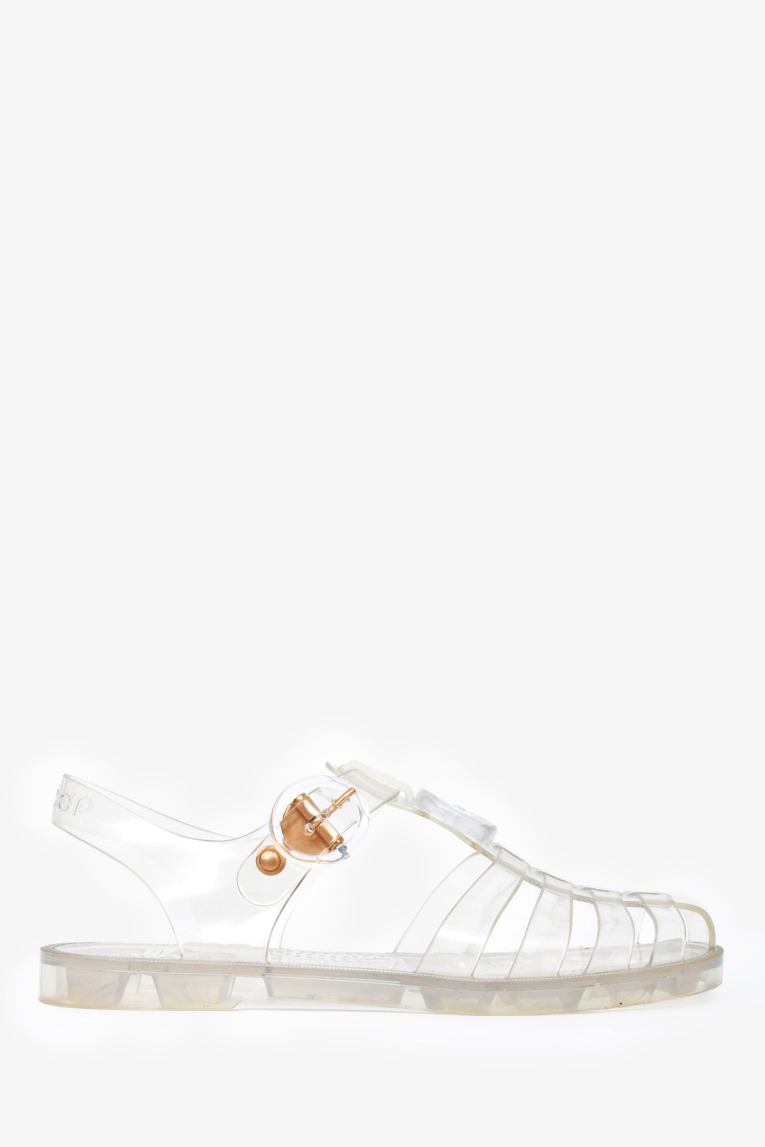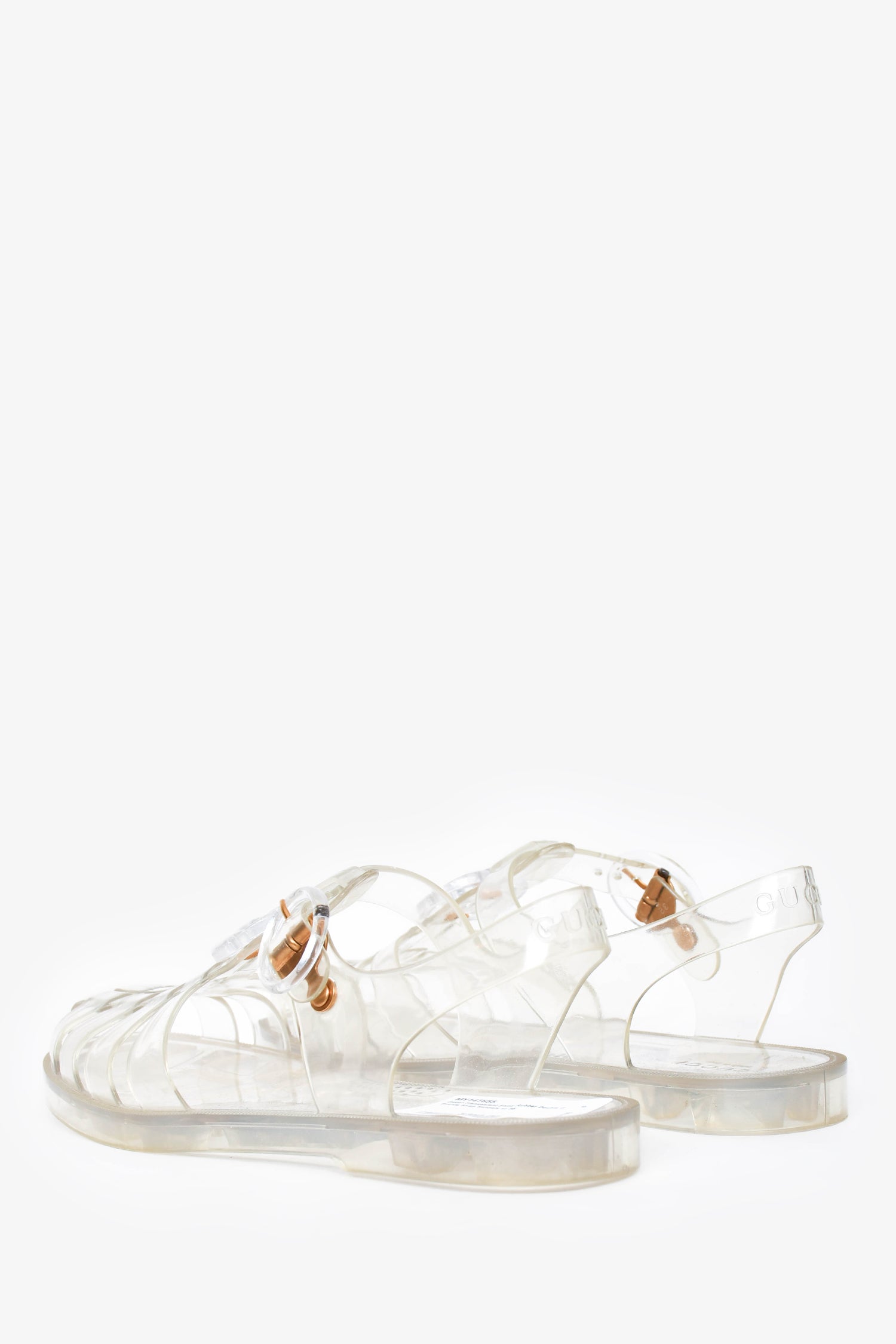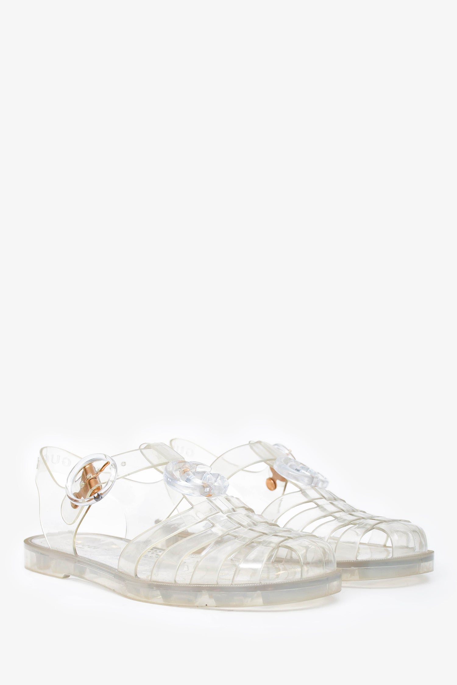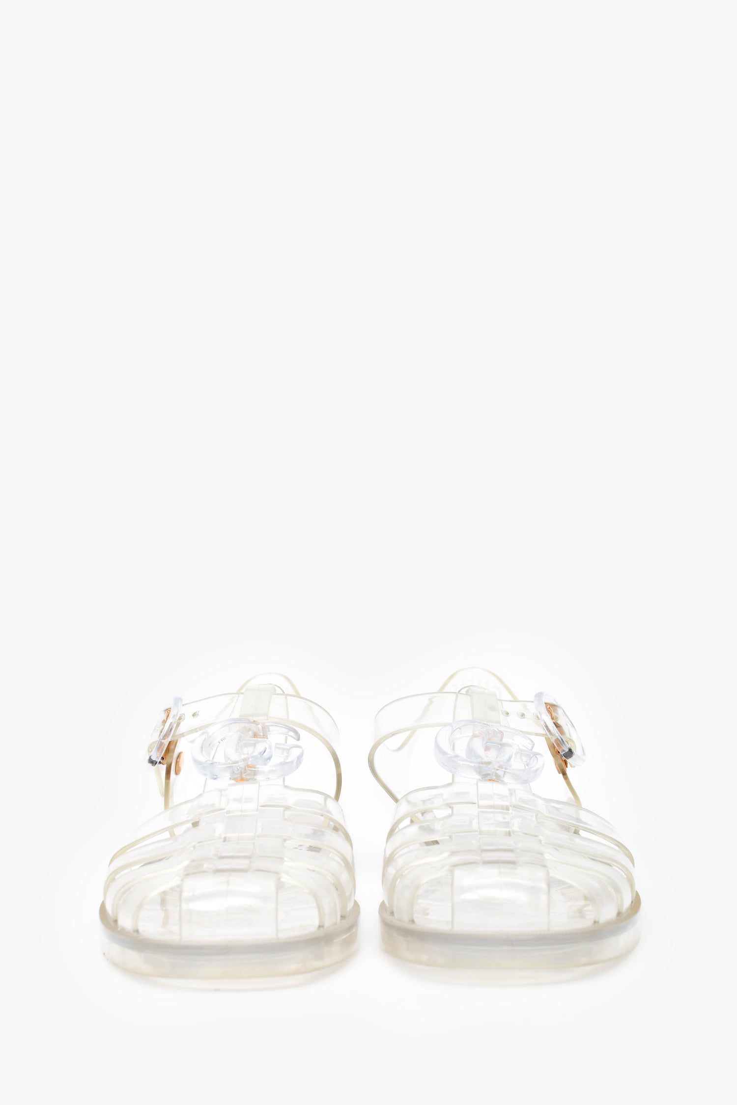 Gucci Transparent Shiny Rubber Double G Buckle Strap Sandals Size 35
