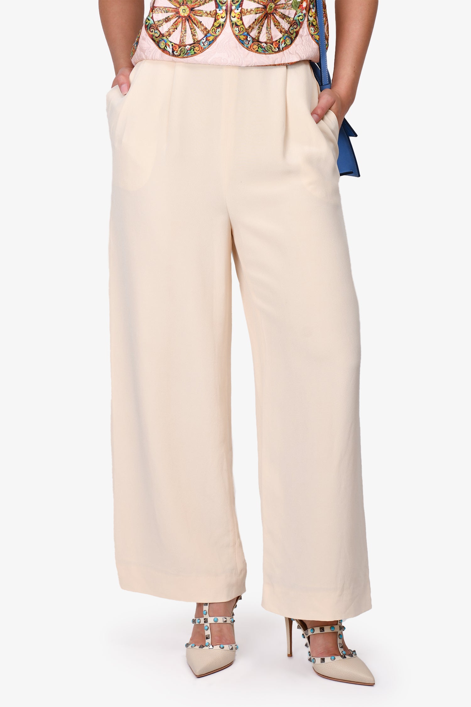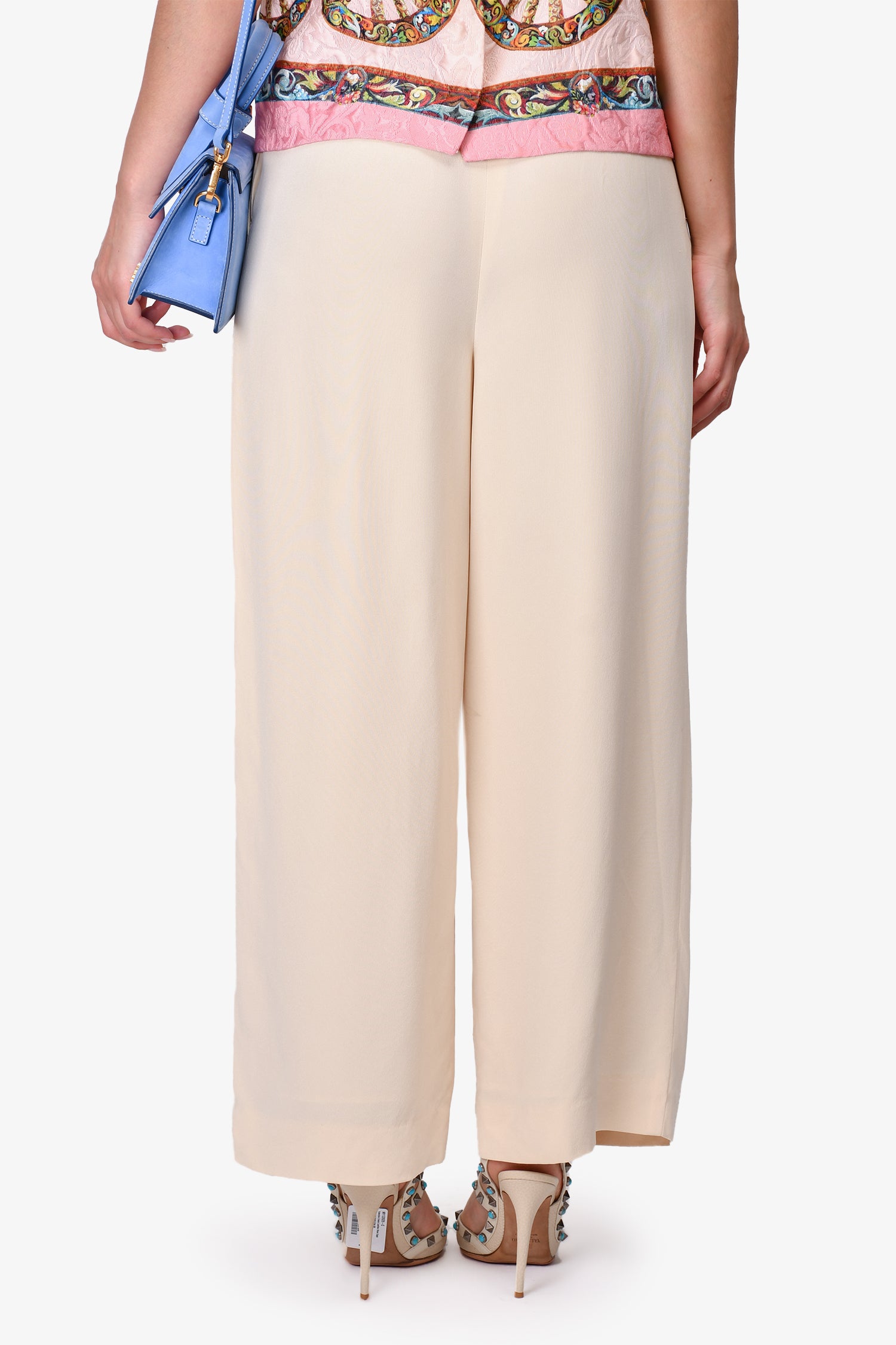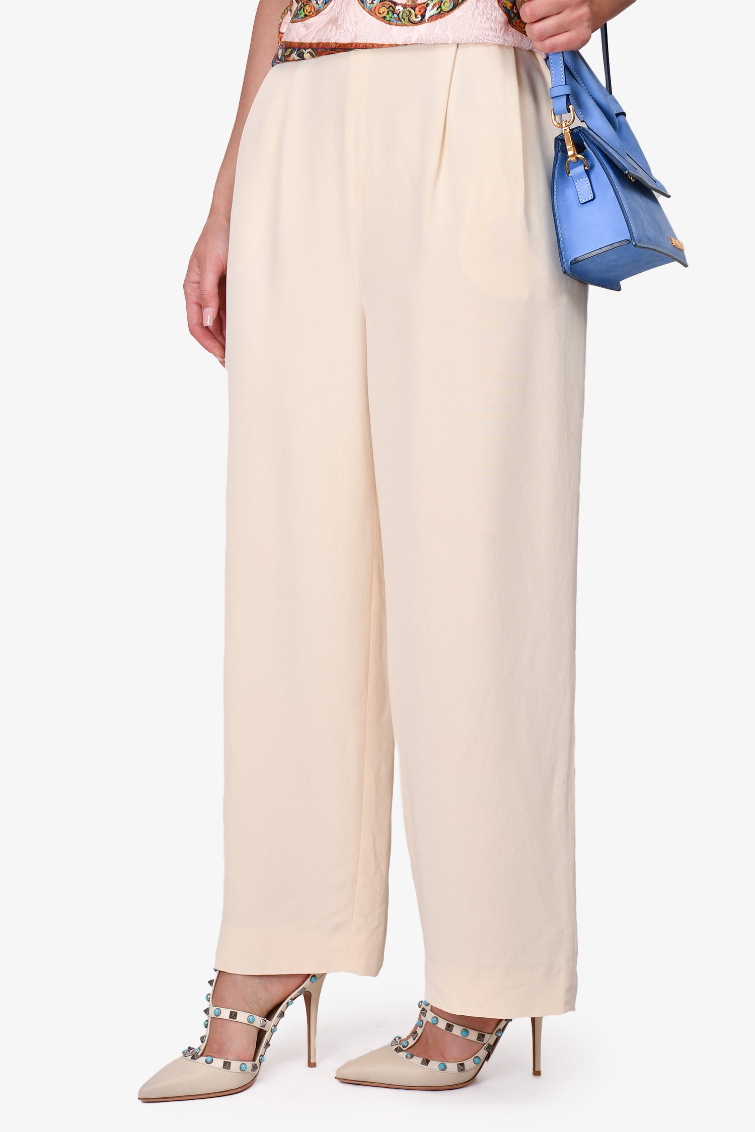 Gucci Vintage Cream Silk Wide Leg Trousers Size 42