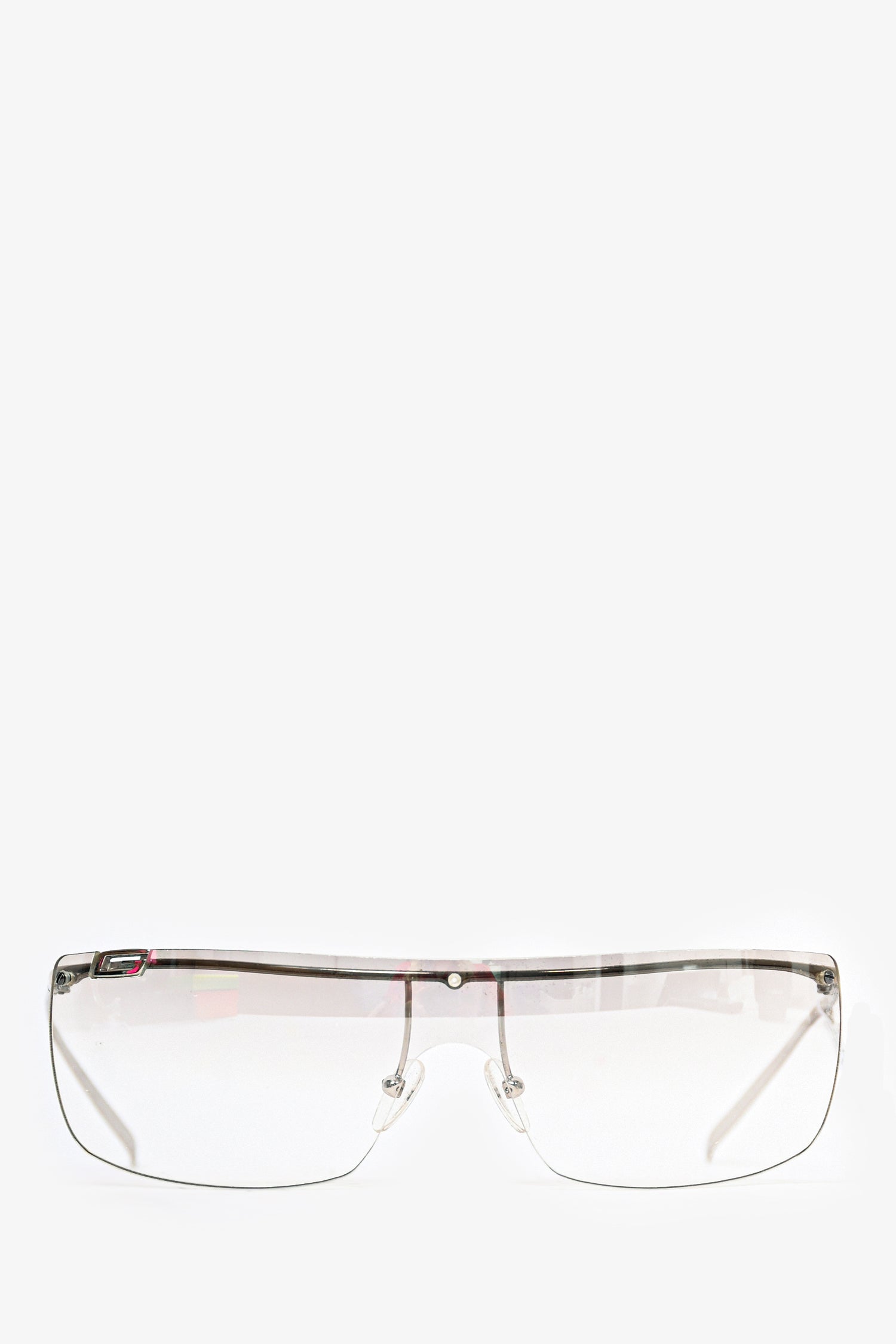 Refresh availabilityGucci Vintage Silver Frame Clear Acrylic Sunglasses. Adjustable nose pads. Gradient lens.