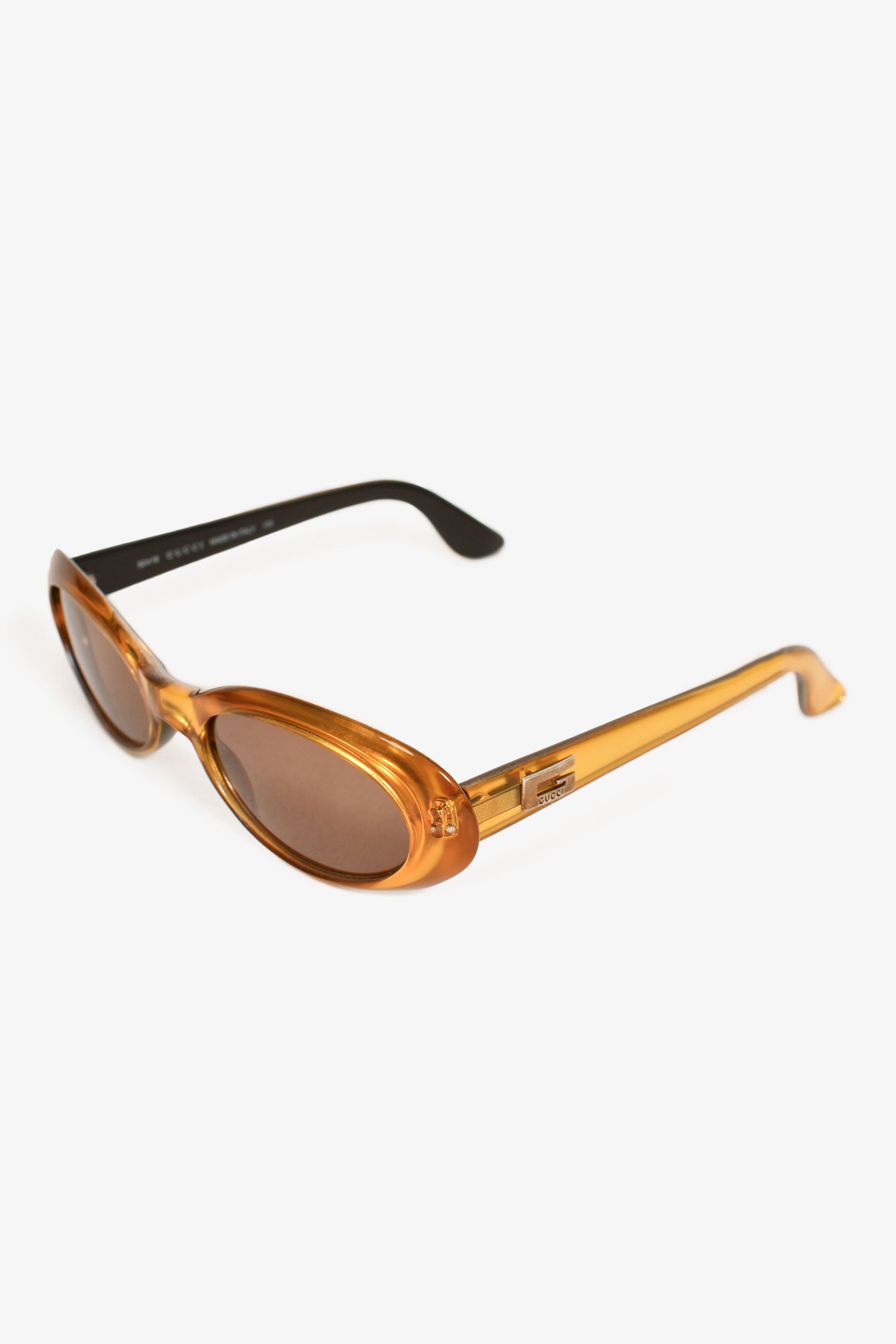 Refresh availabilityGucci Vintage Yellow Round Sunglasses. Tinted lenses. Yellow and black-tone acetate frames. Built-in nose pads.