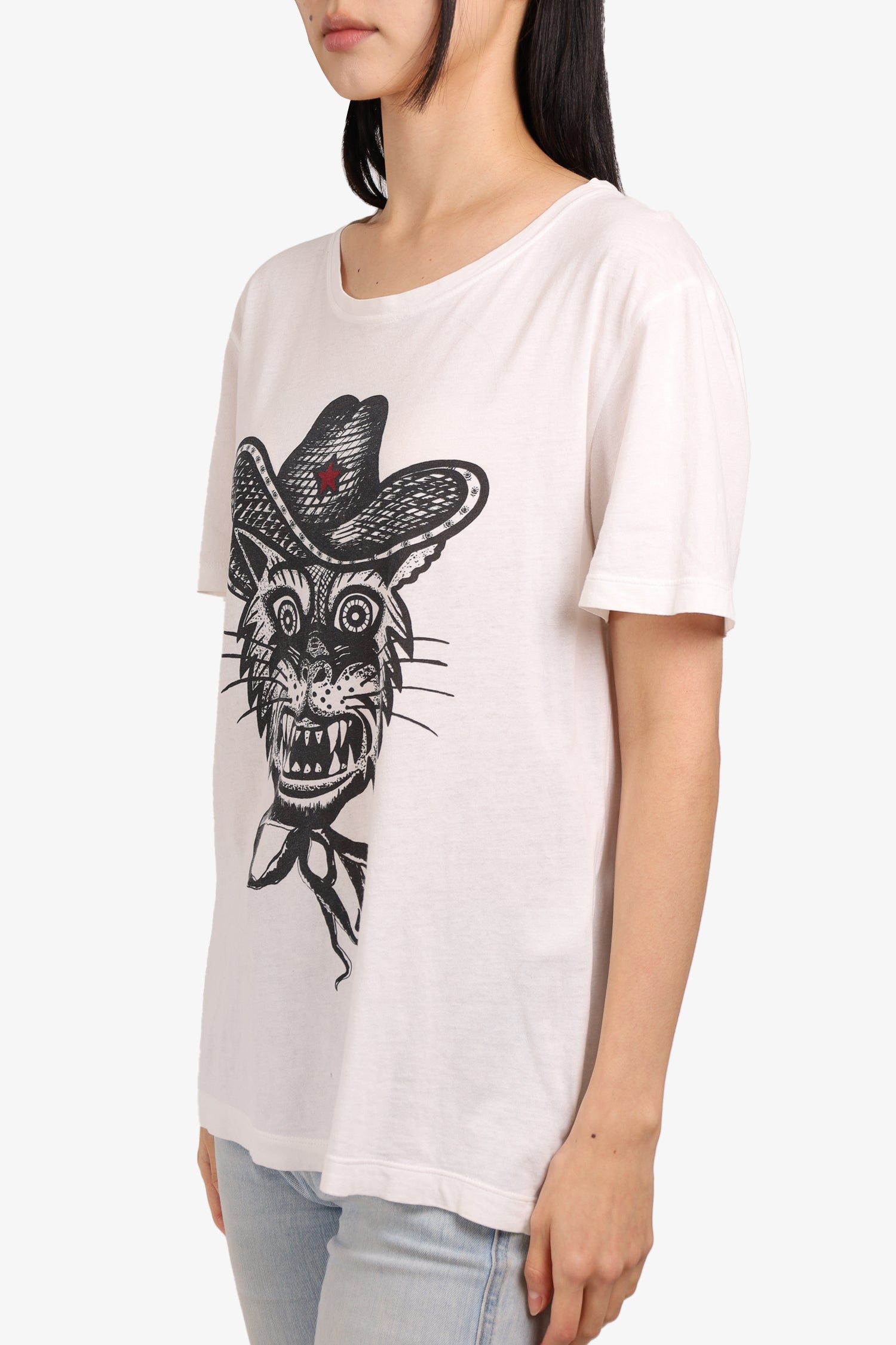 Gucci White Cotton Angry Cat T-Shirt Size Small