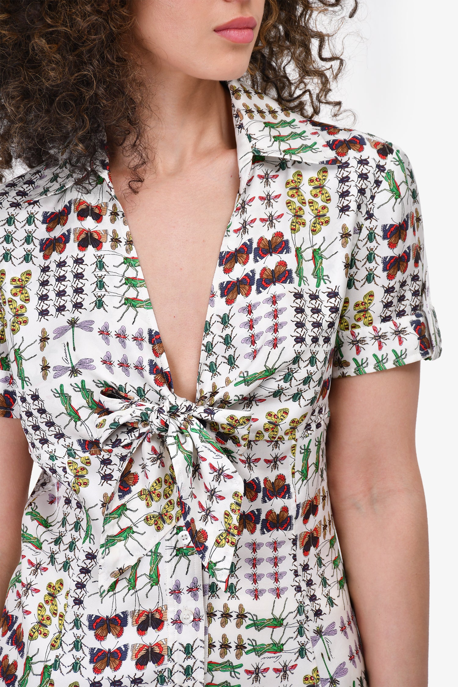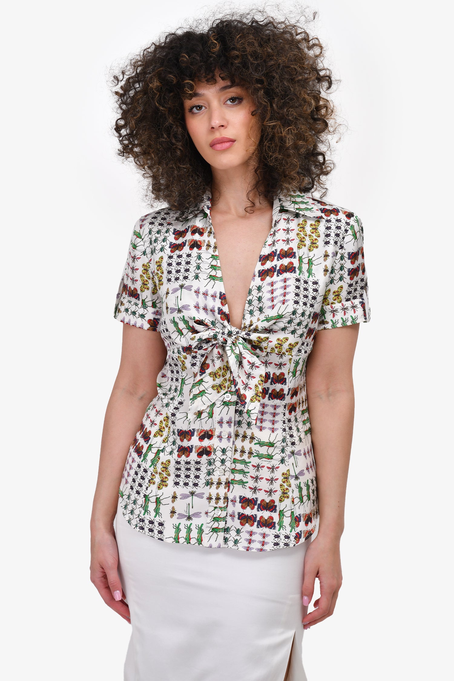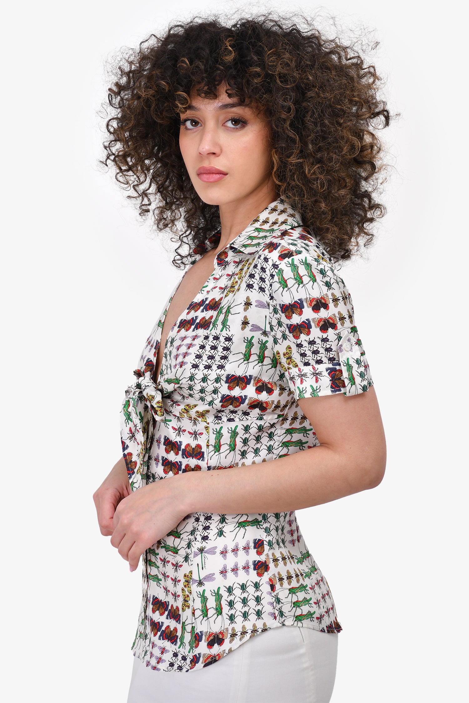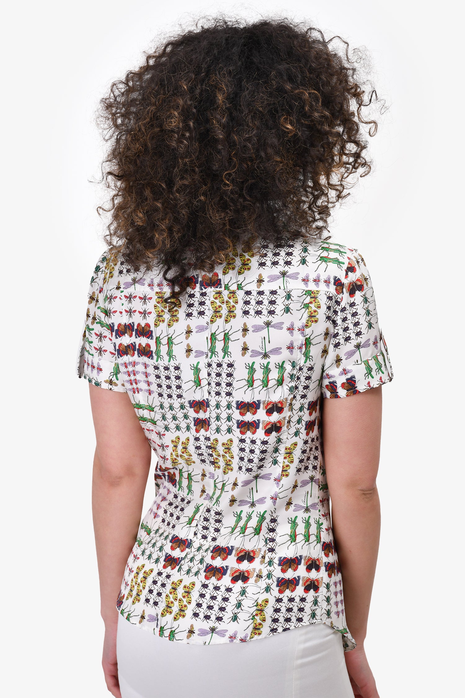 Gucci White Insect Printed Collared Button Down Top Size 40
