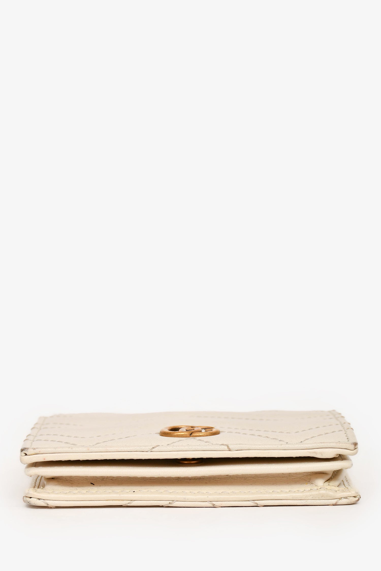 Gucci White Leather Chevron Quilted GG Marmont Wallet (As Is)