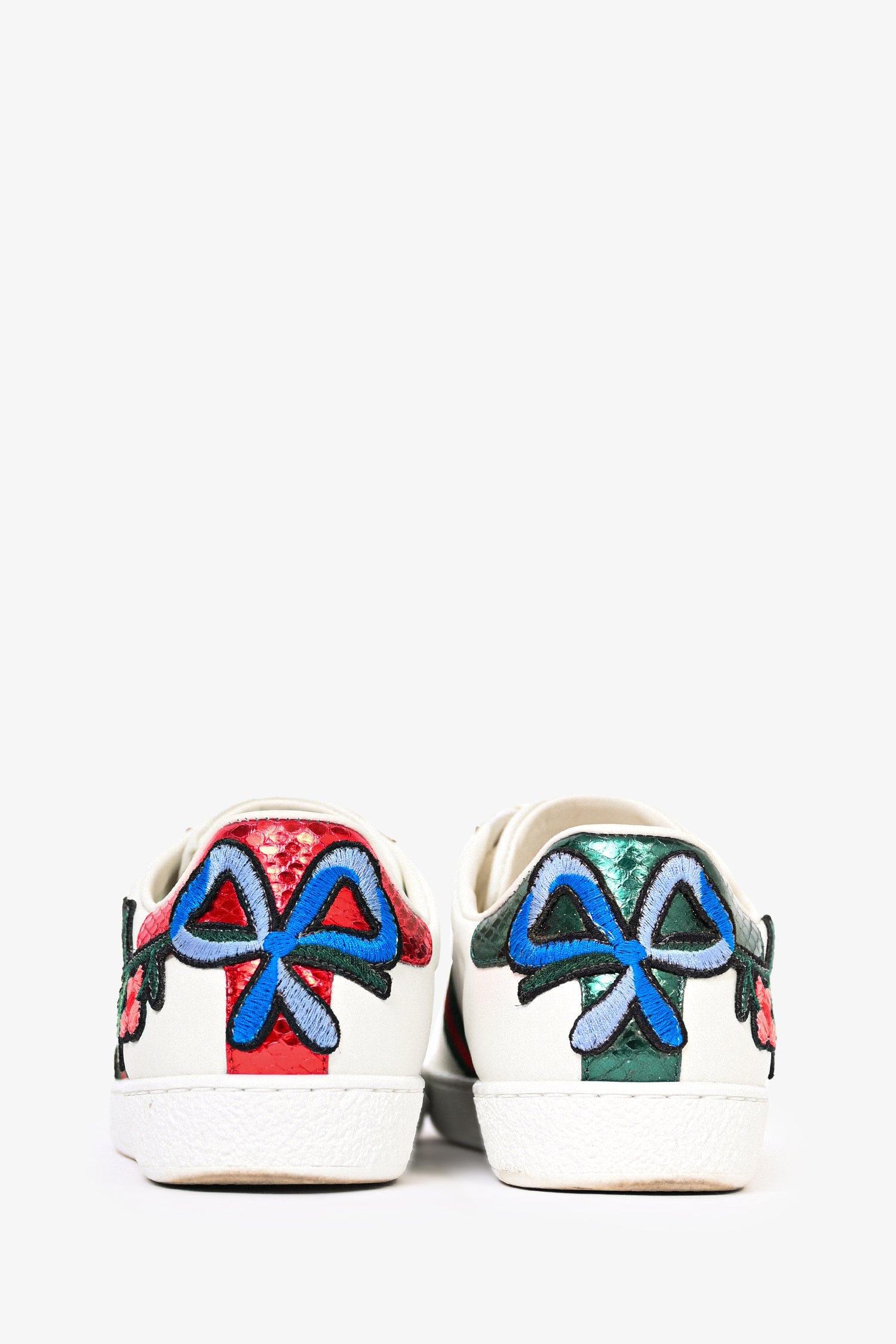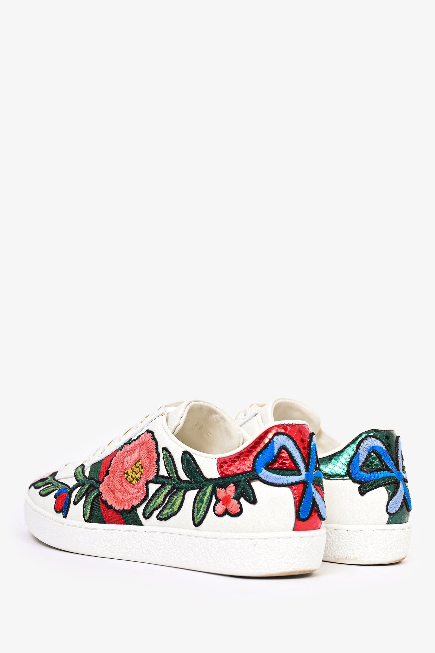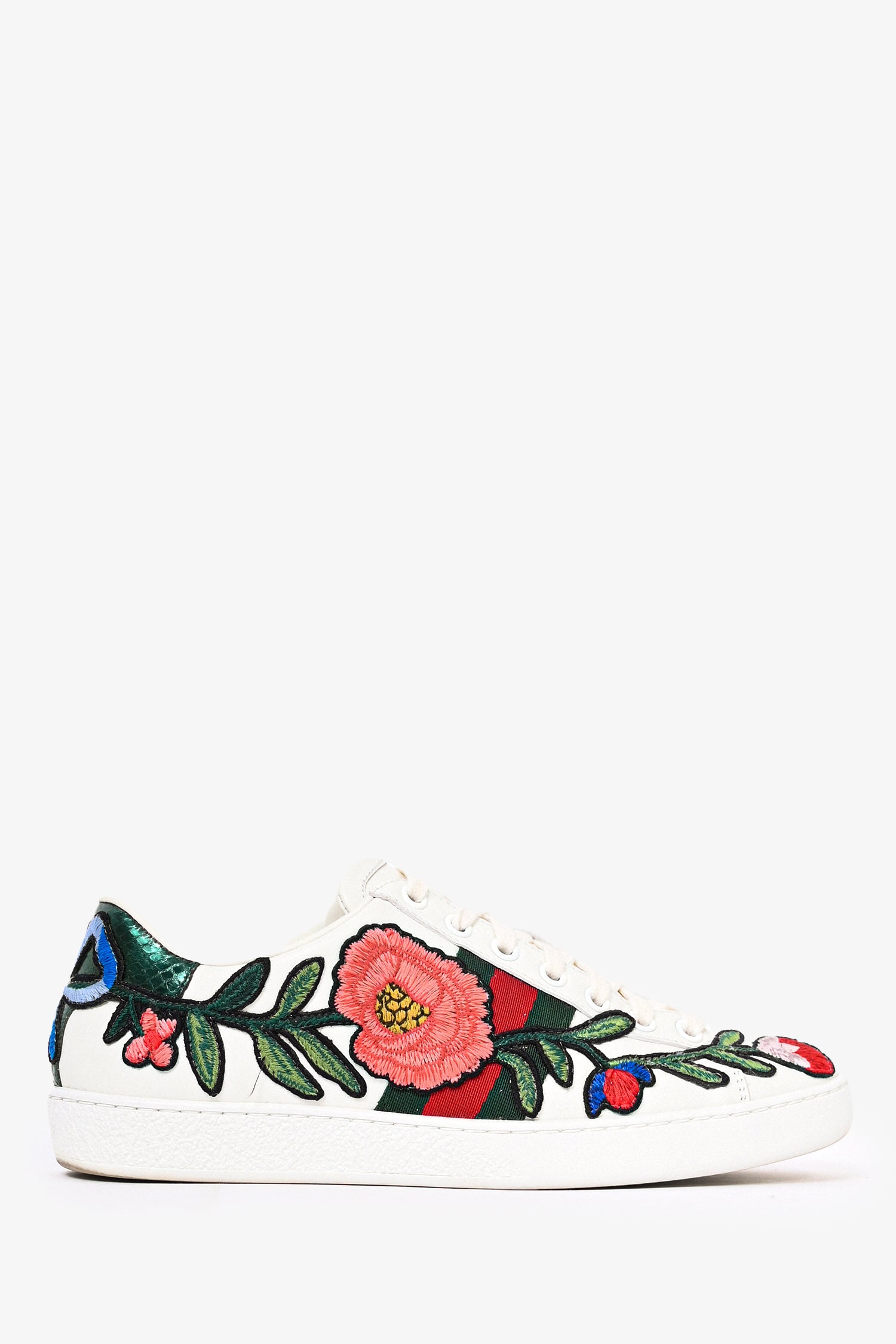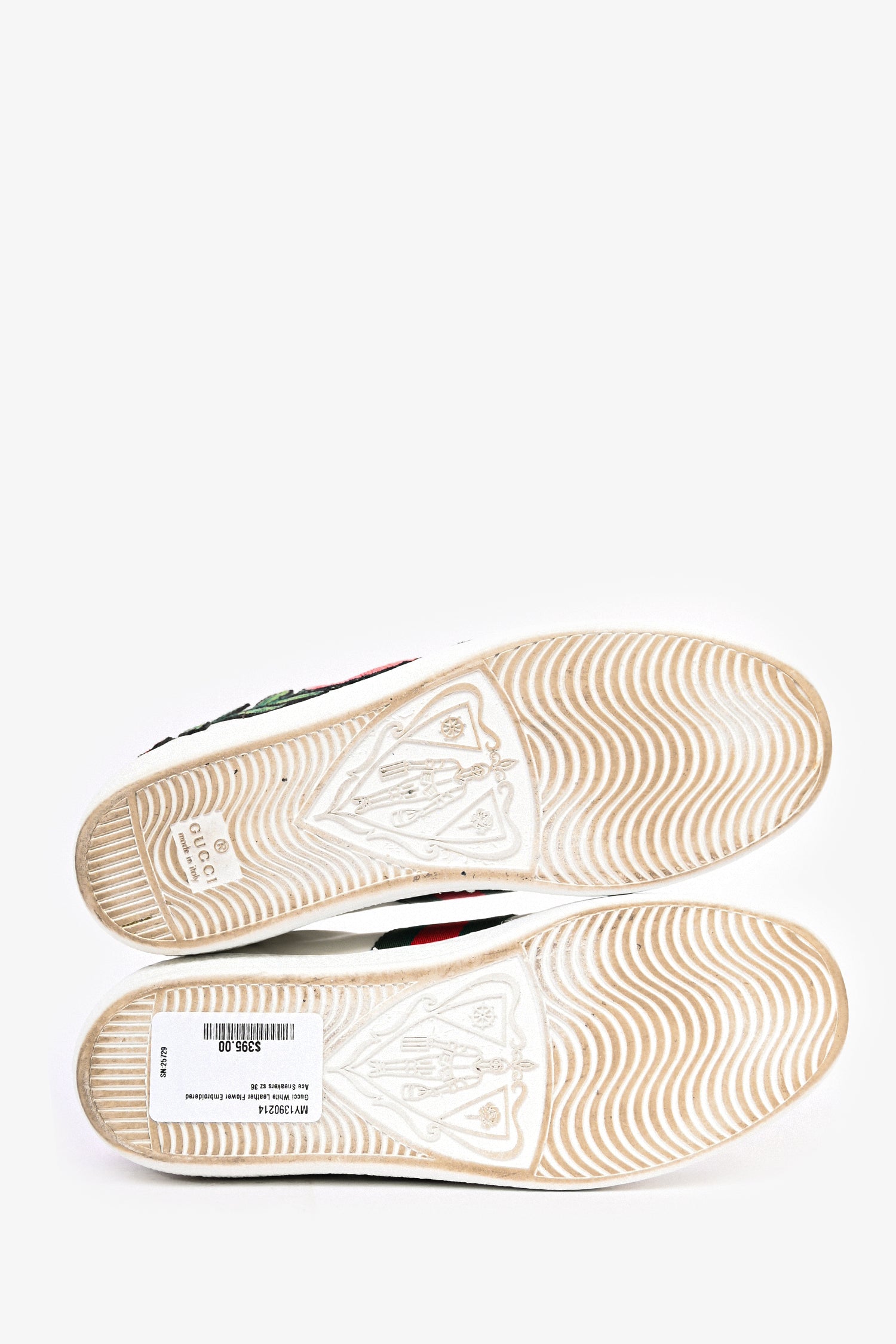 Gucci White Leather Flower Embroidered Ace Sneakers Size 36