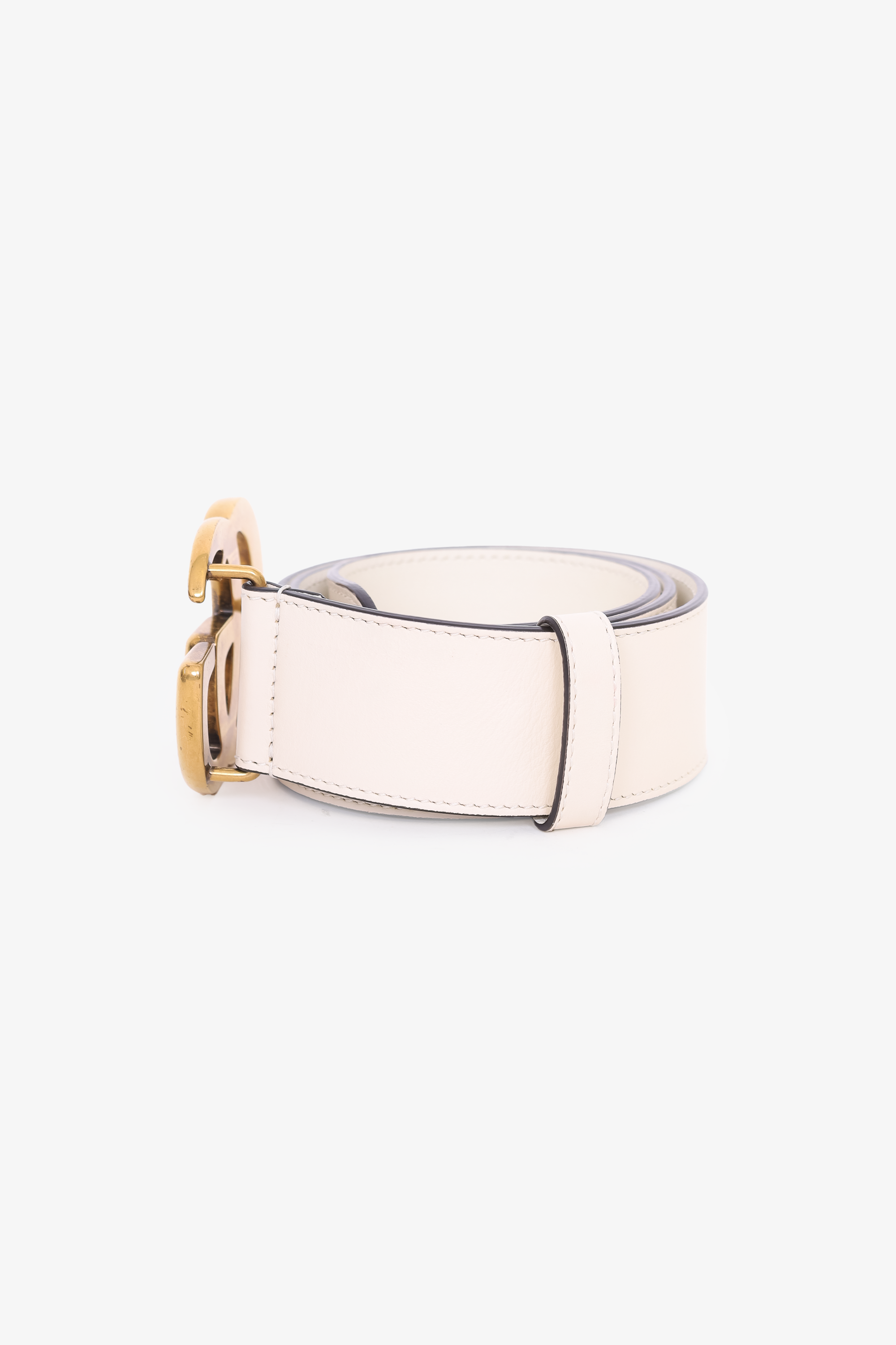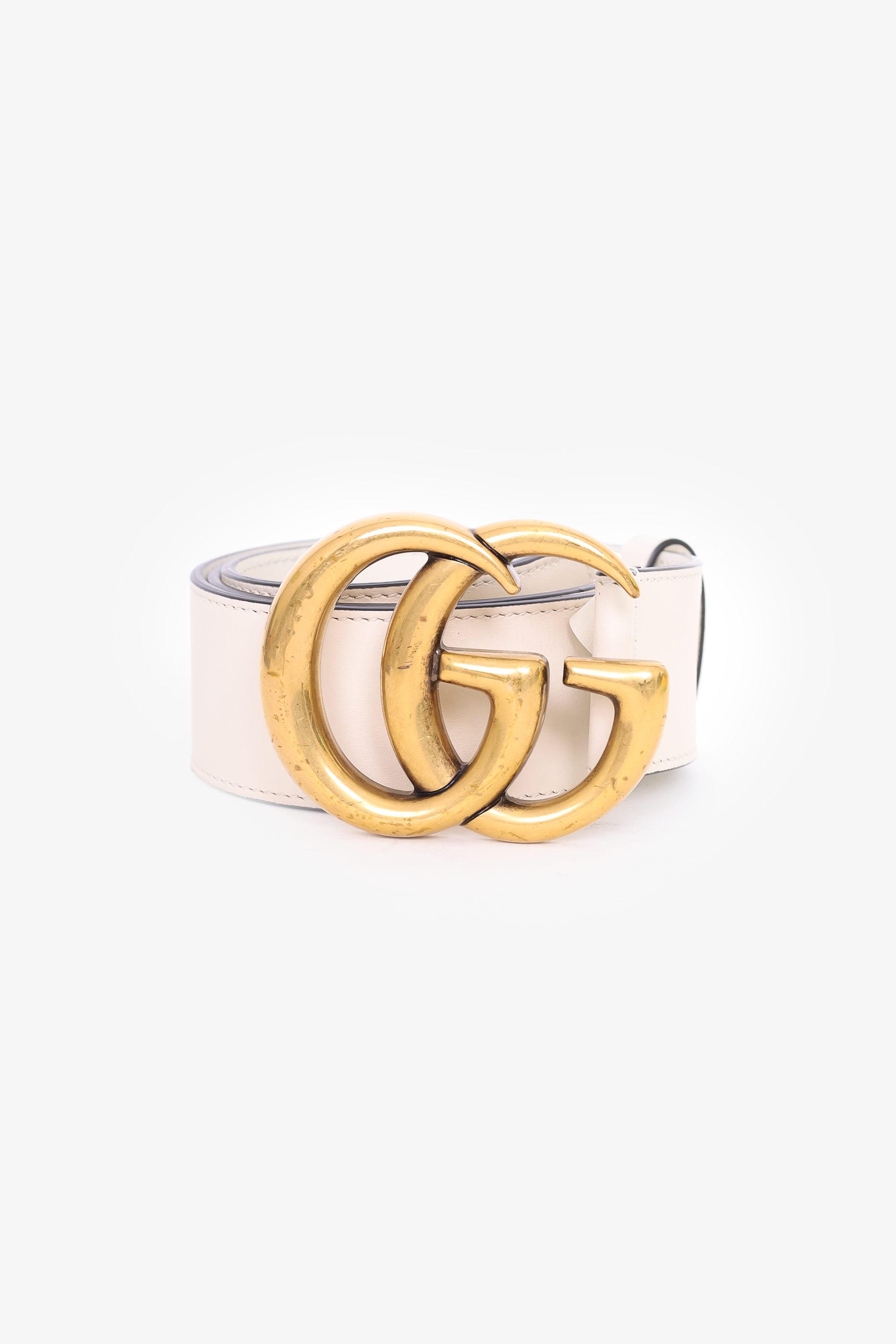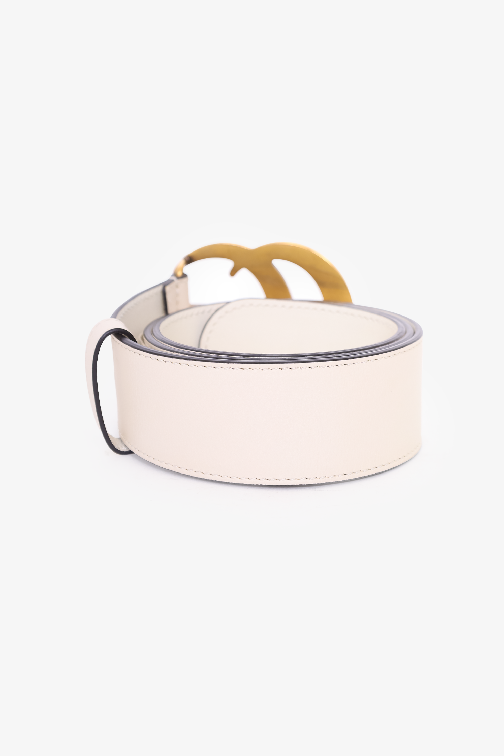 Refresh availabilityGucci White Leather GG Marmont Belt. Gold tone-hardware. Tonal stitching.
