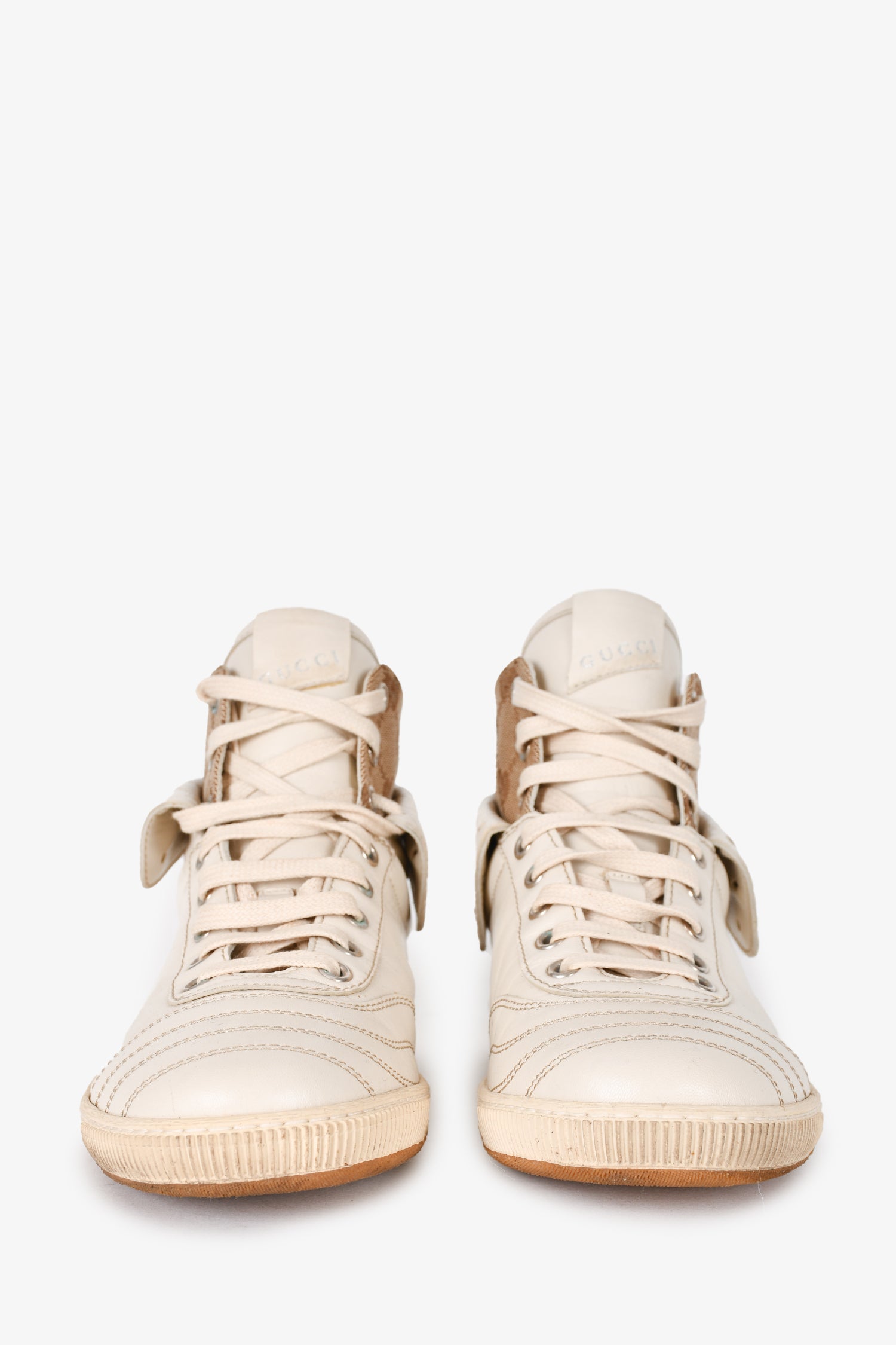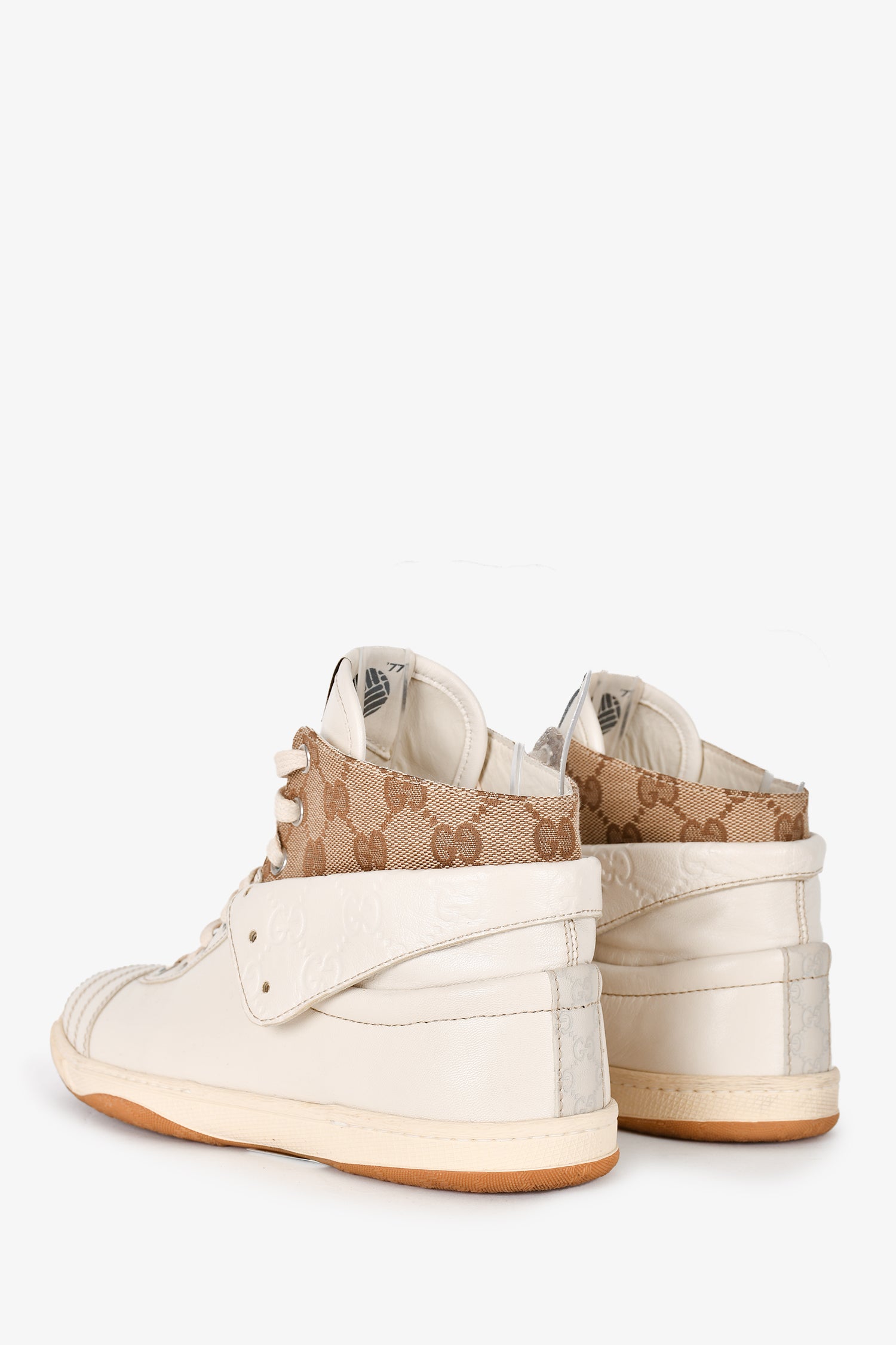 Gucci White Leather GG Supreme Mid Top Sneakers Size 37