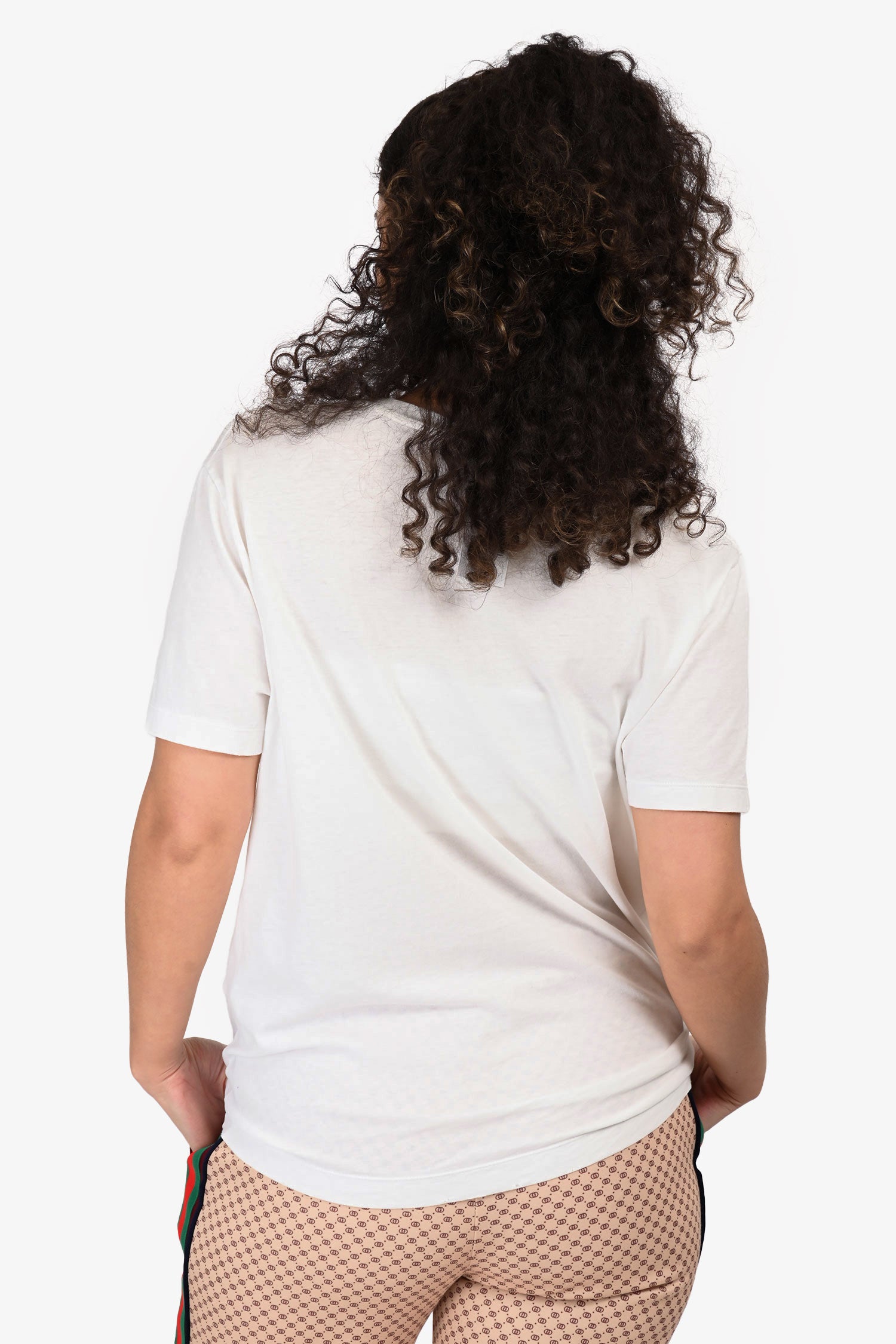 Gucci White Thin Jersey Distressed Logo T-Shirt Size XS