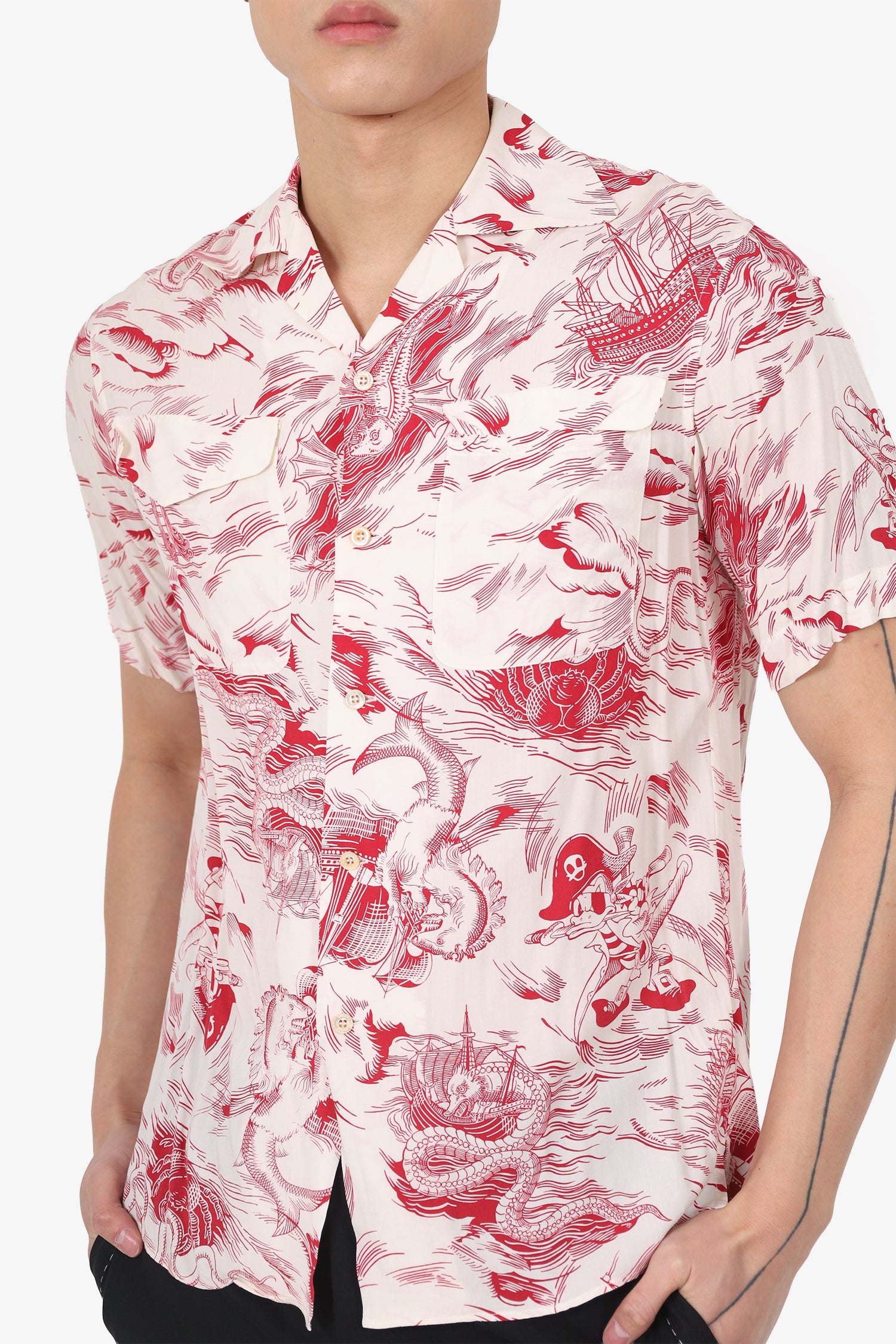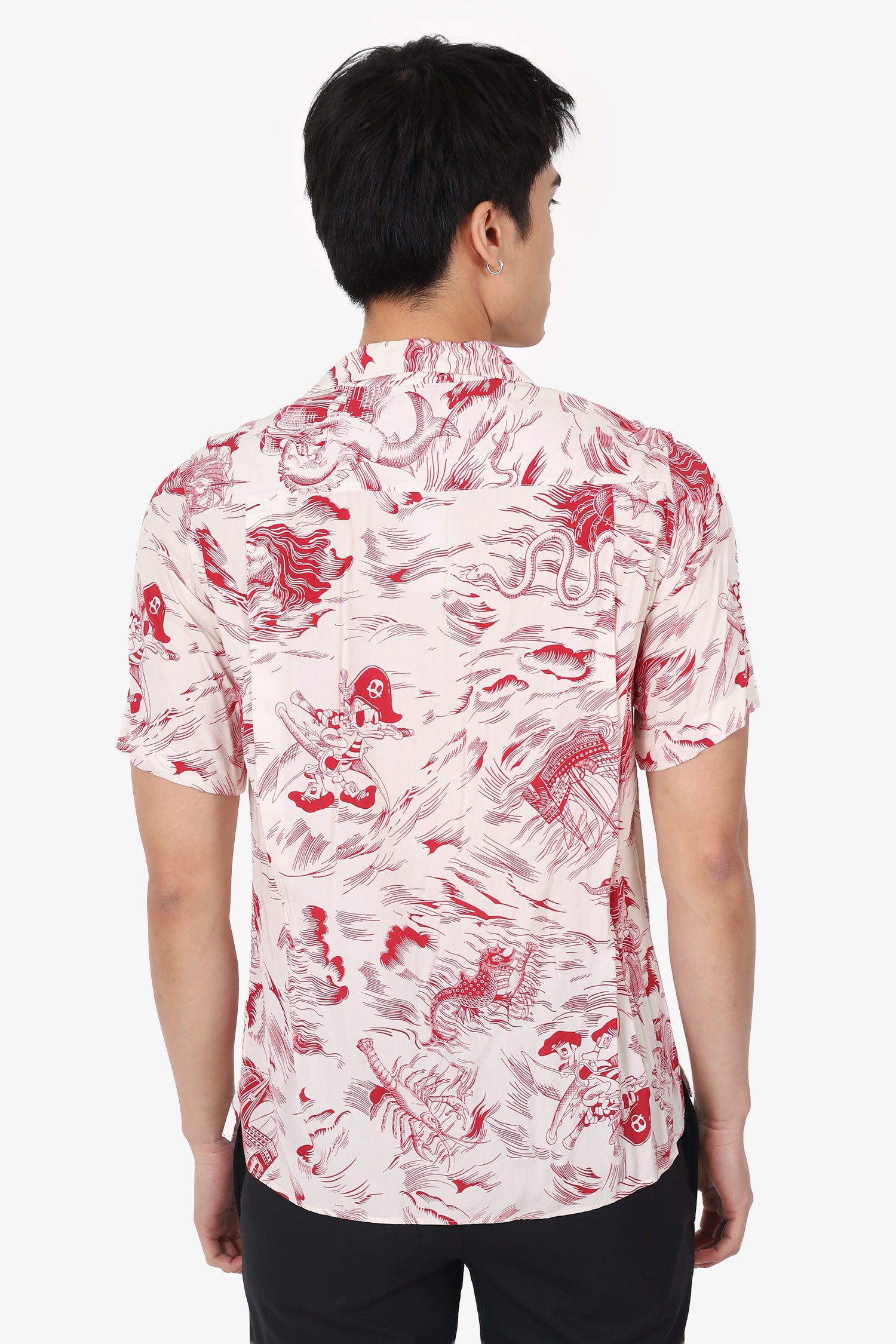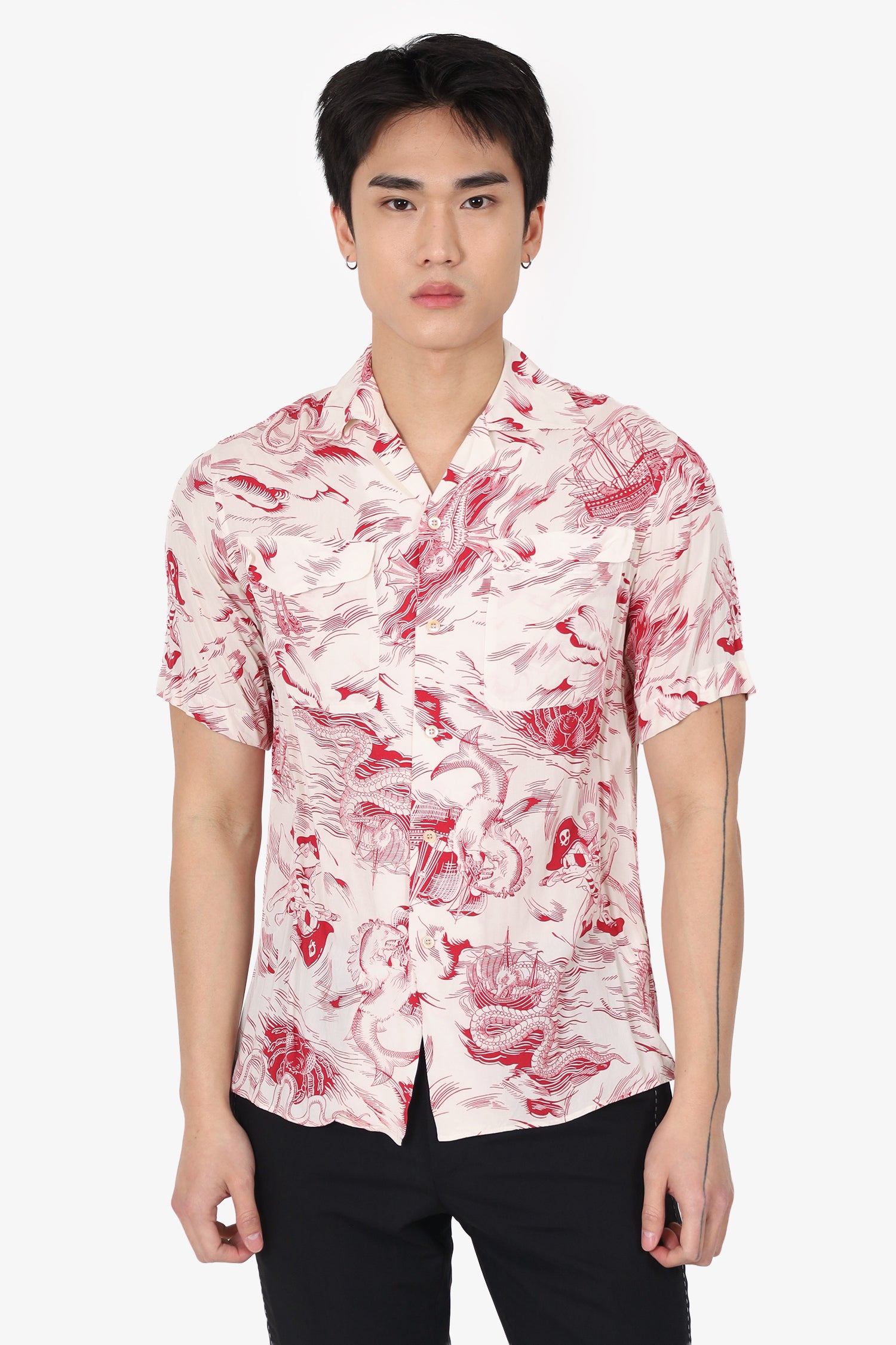 Refresh availabilityGucci X Disney Cream/Red Dragon Printed Shirt Sleeve Shirt. Pull-on. Collared-neckline. Front button-up closure. 2 front exterior flap pockets. Tonal stitching.
