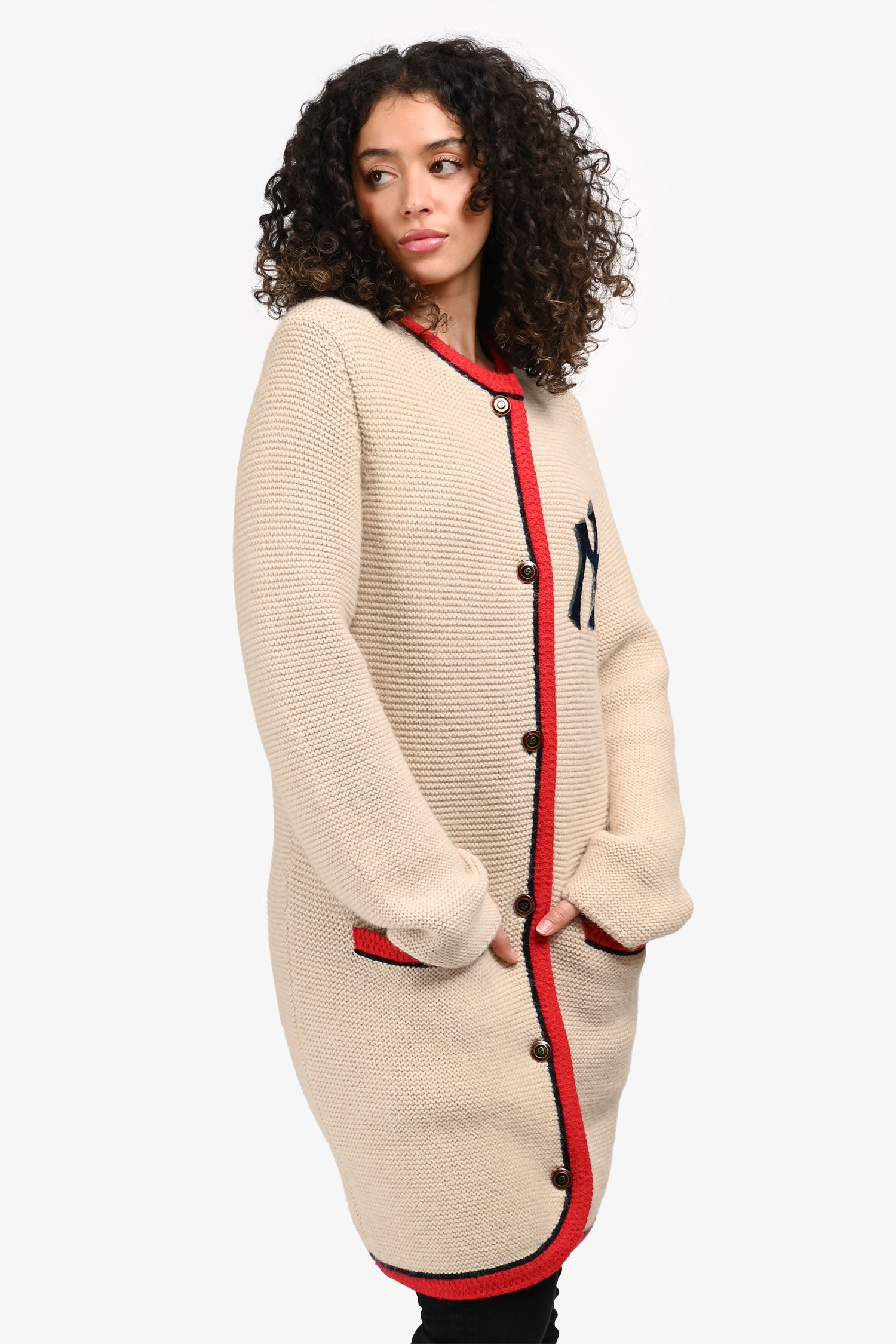 Gucci x NY Yankees Beige Alpaca/Wool Embellished Patchwork Long Cardigan Size S