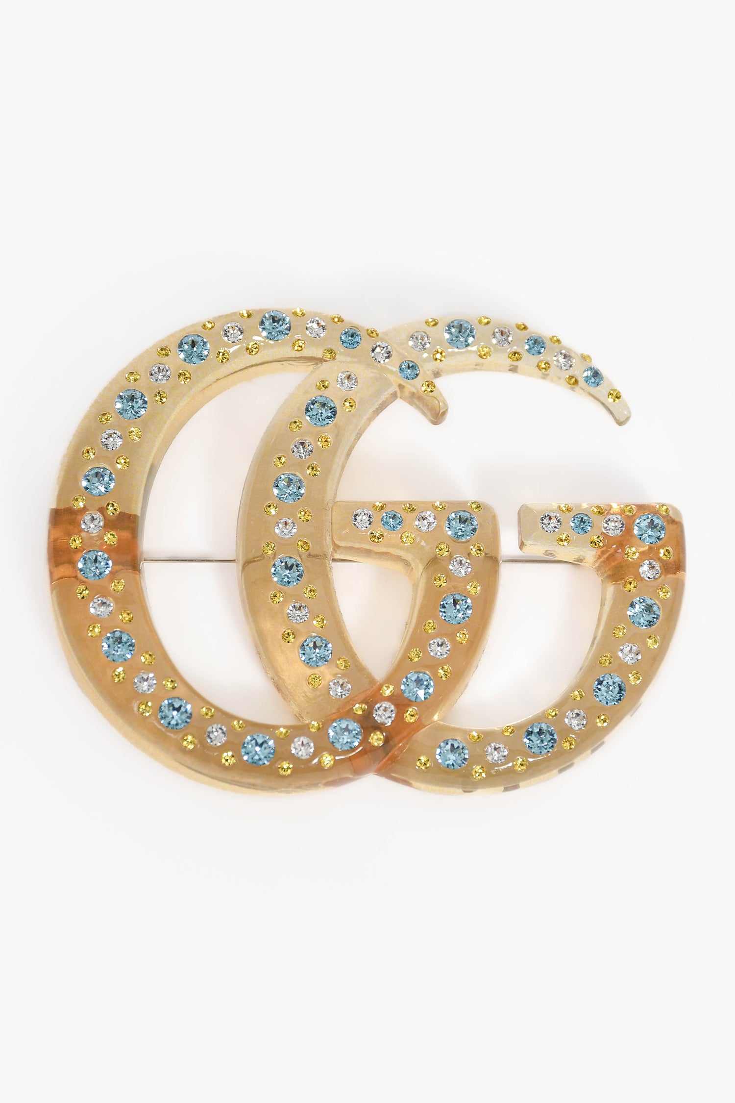 Refresh availabilityGucci Yellow Resin/Blue Rhinestone Embellished GG Brooch. Pin closure.