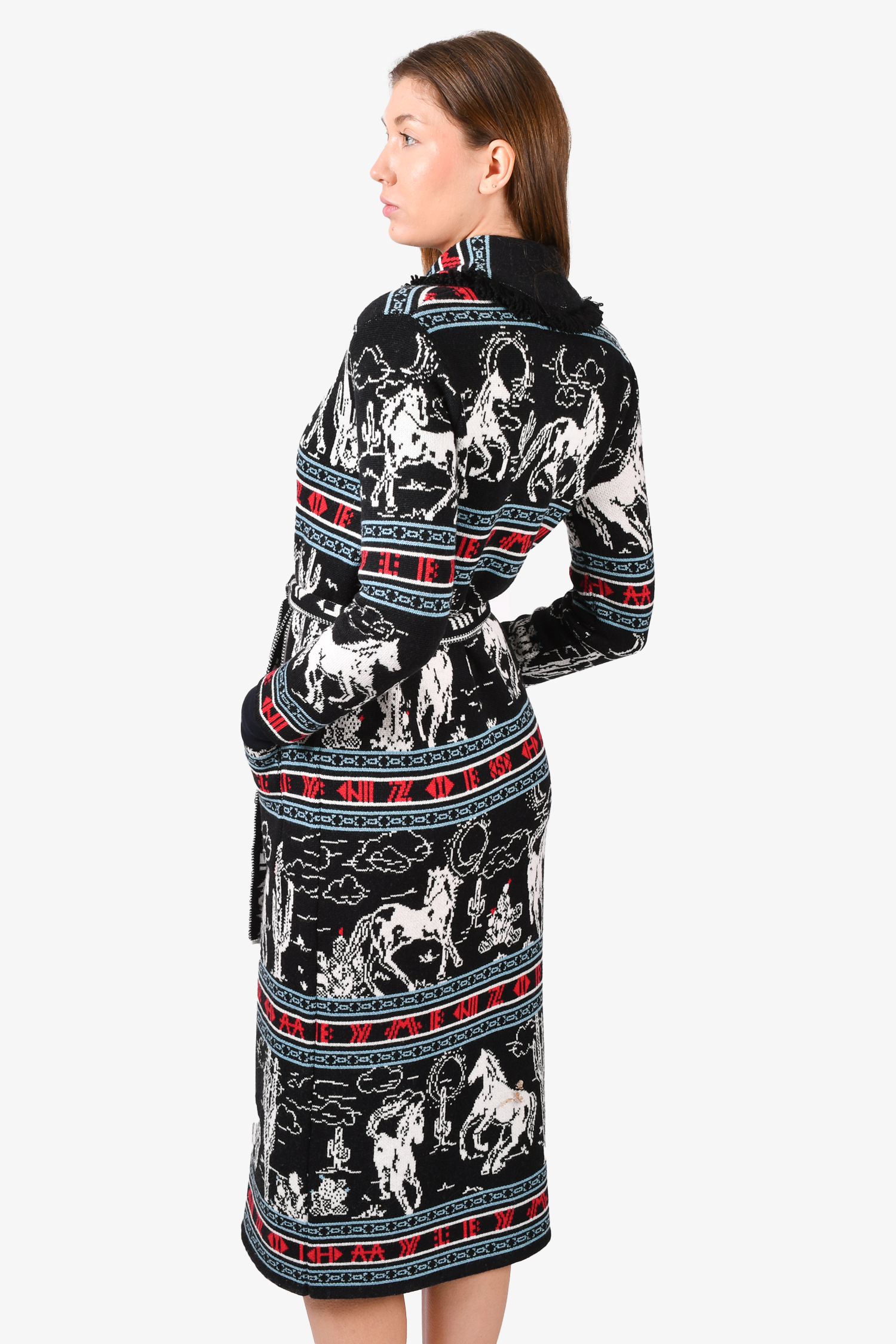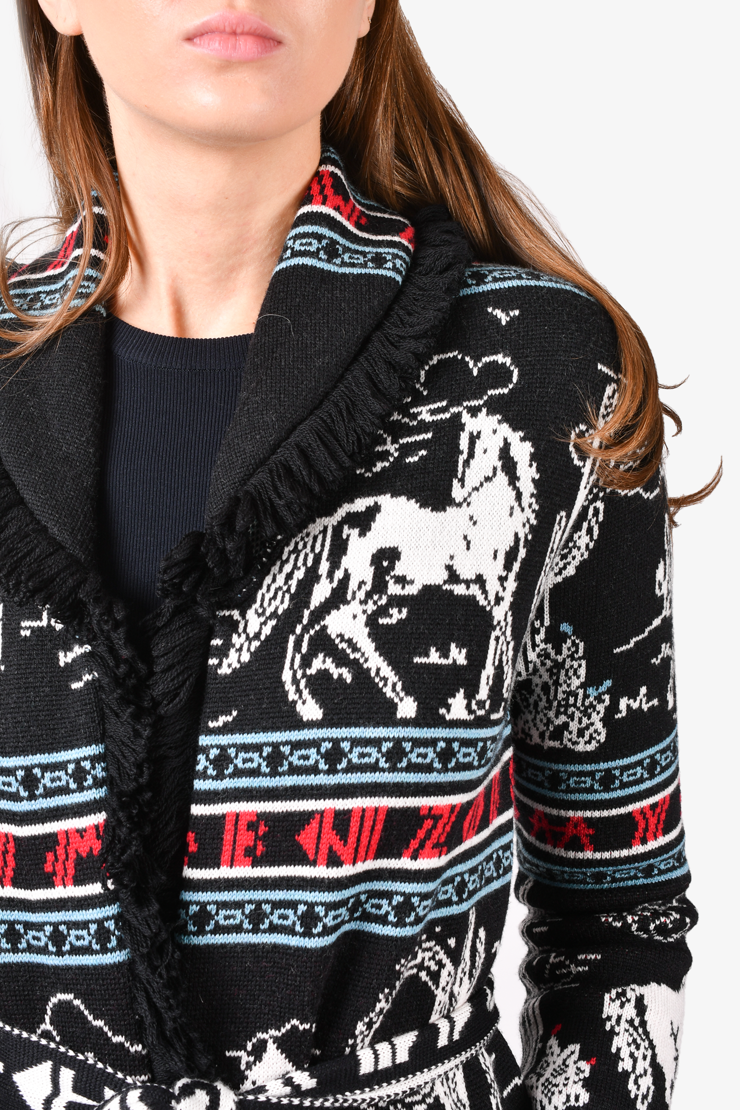 Hayley Menzies Black/Red/White Wool Graphic Fringe Cardigan Sweater with Belt Size XS
