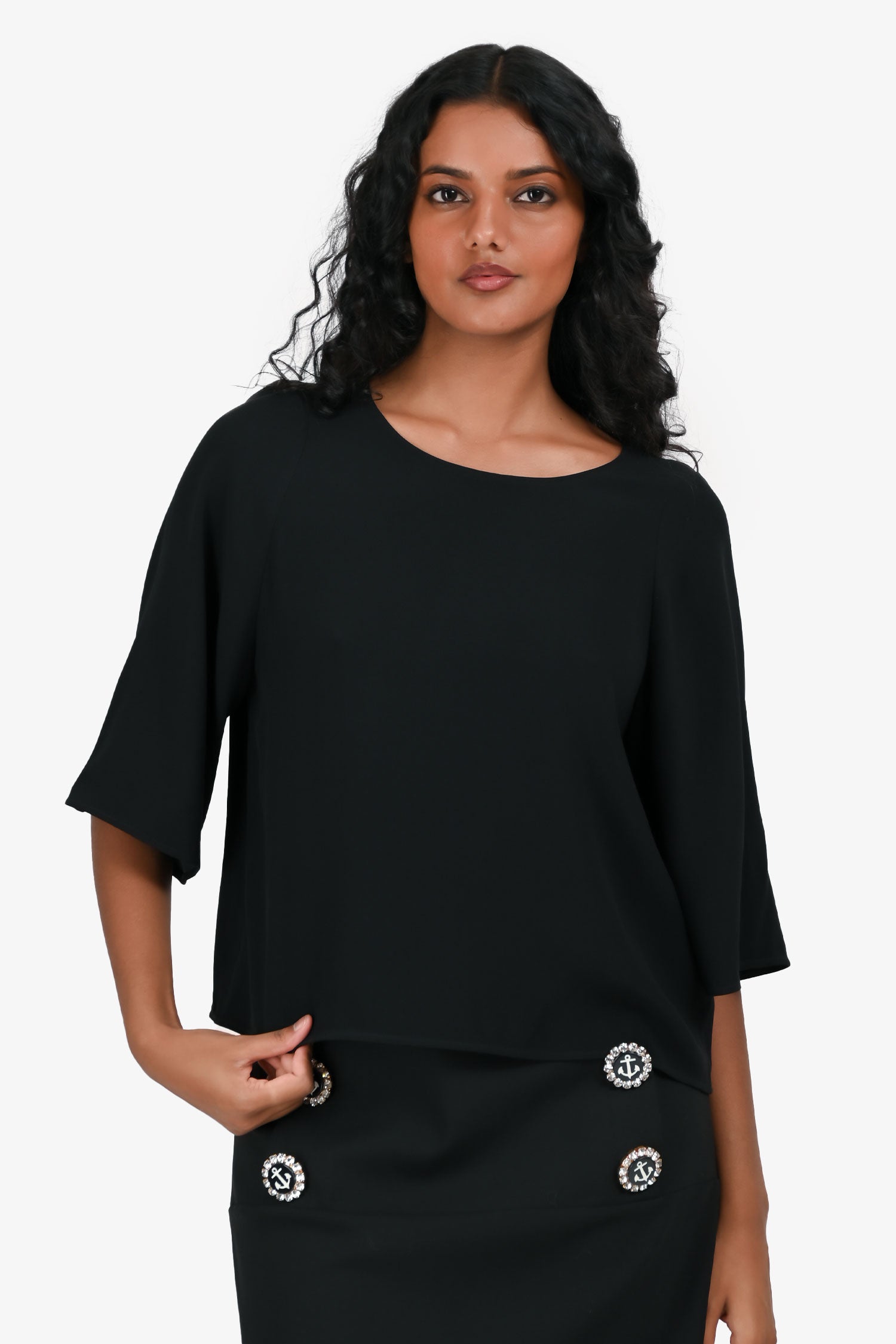 Refresh availabilityHelmut Lang Black Cropped Boxy Blouse. Crew neckline. Short sleeves. Boxy silhouette. Tonal stitching.