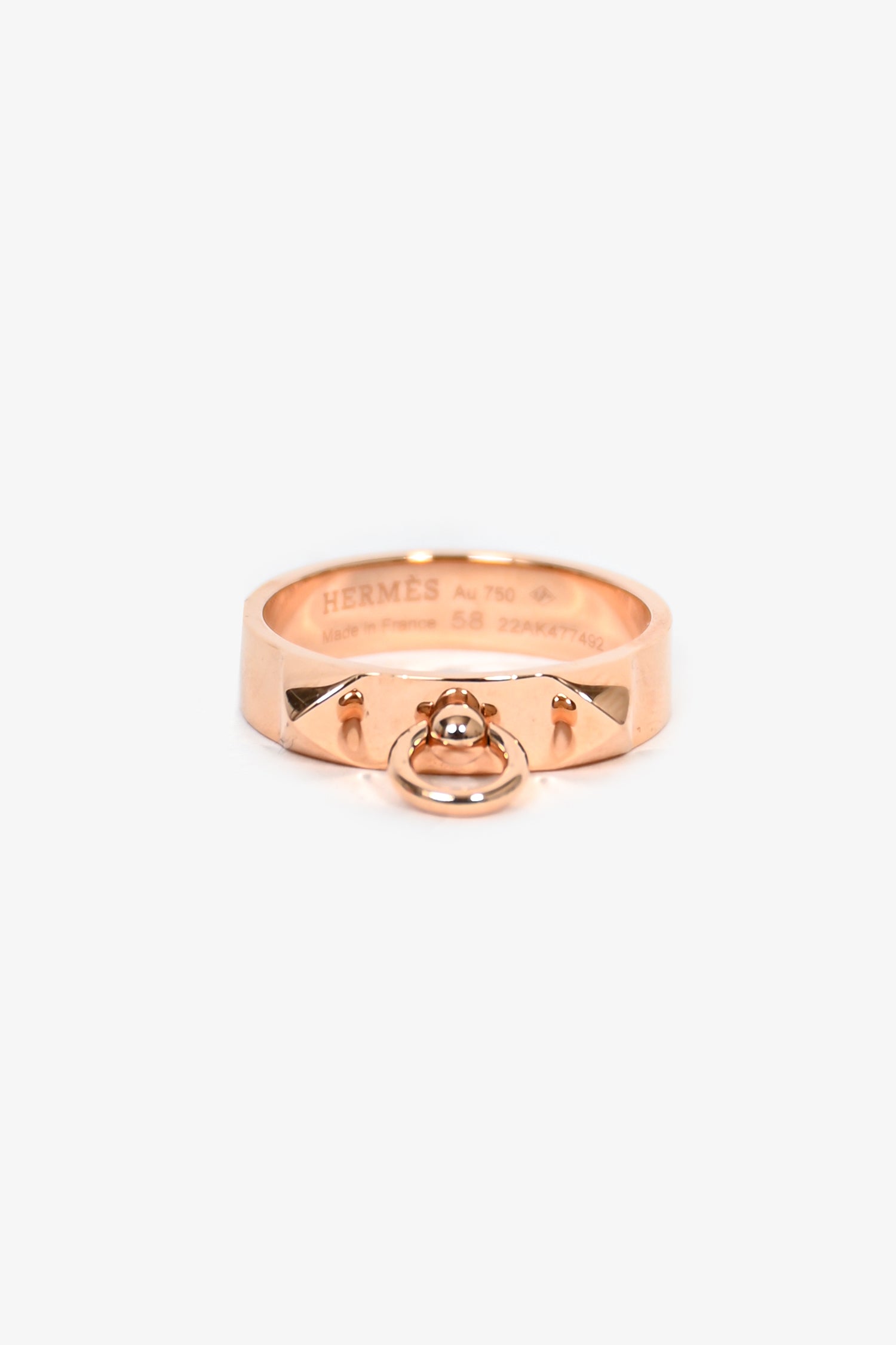 Hermès 18K Rose Gold 'Collier de Chien' Ring Small Model Size 58