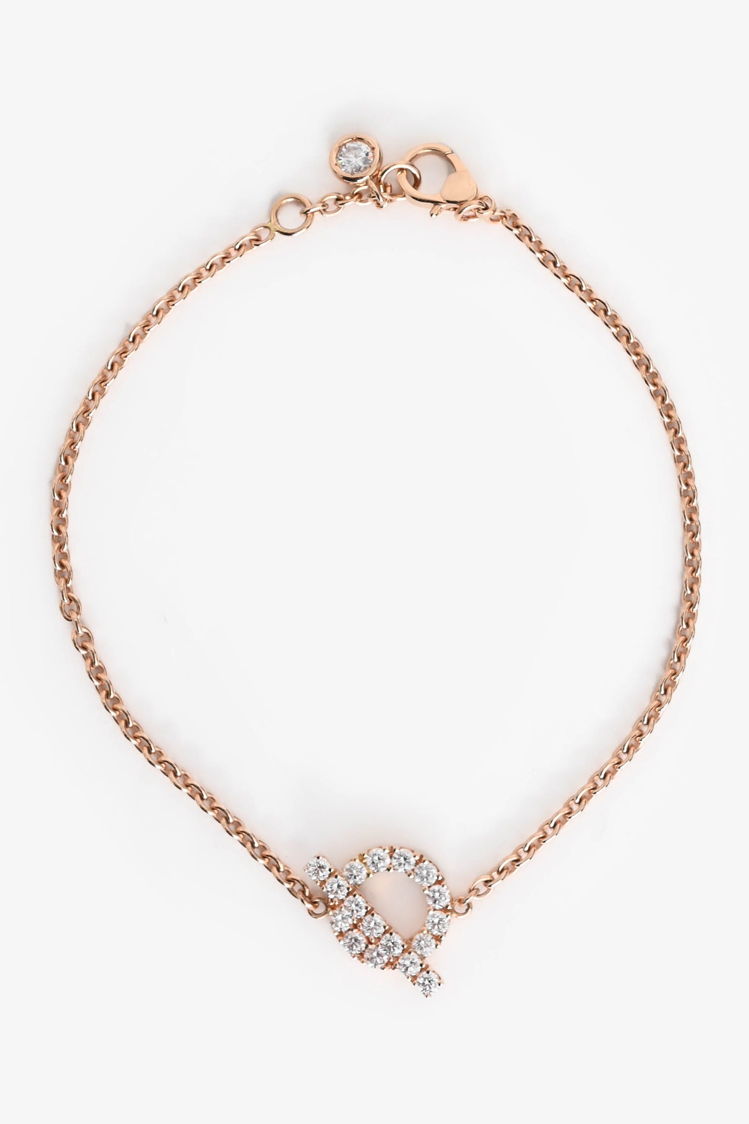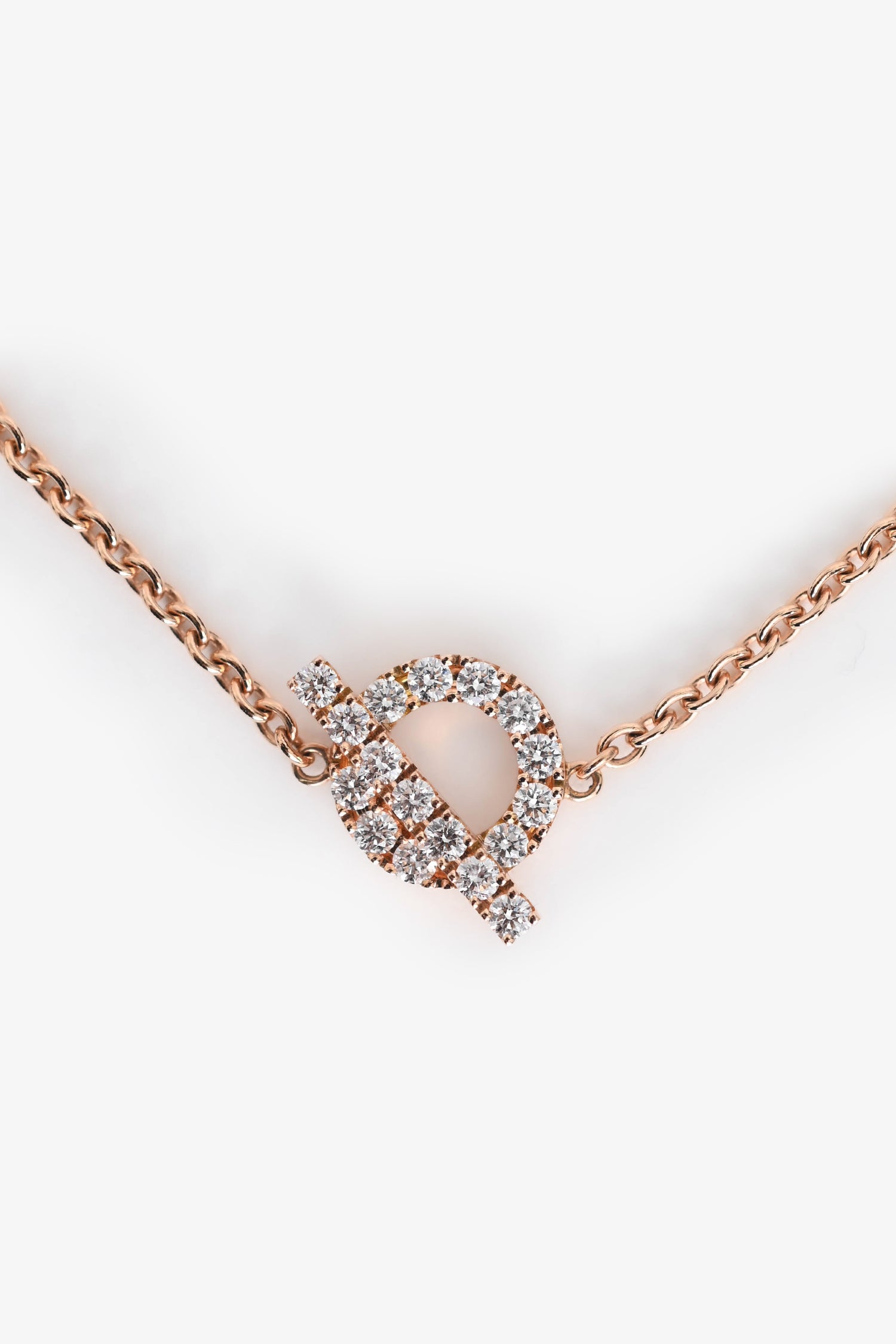 Refresh availabilityHermès 18K Rose Gold Diamond Set Finesse Bracelet. Adjustable lobster clasp closure. 18 round, brilliant cut diamonds. Diamond encrusted open circle with a bar.
