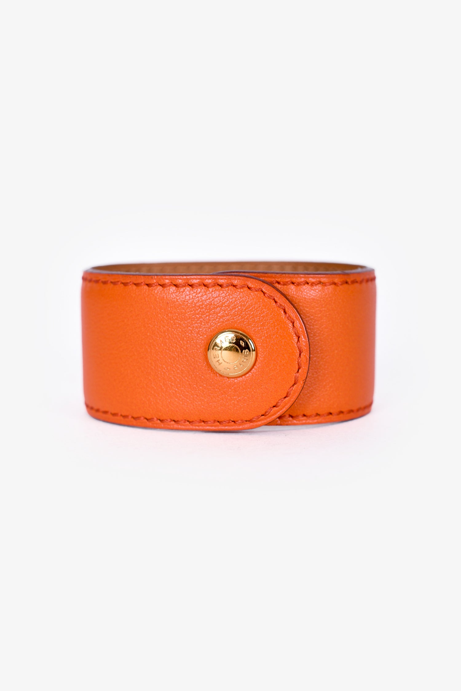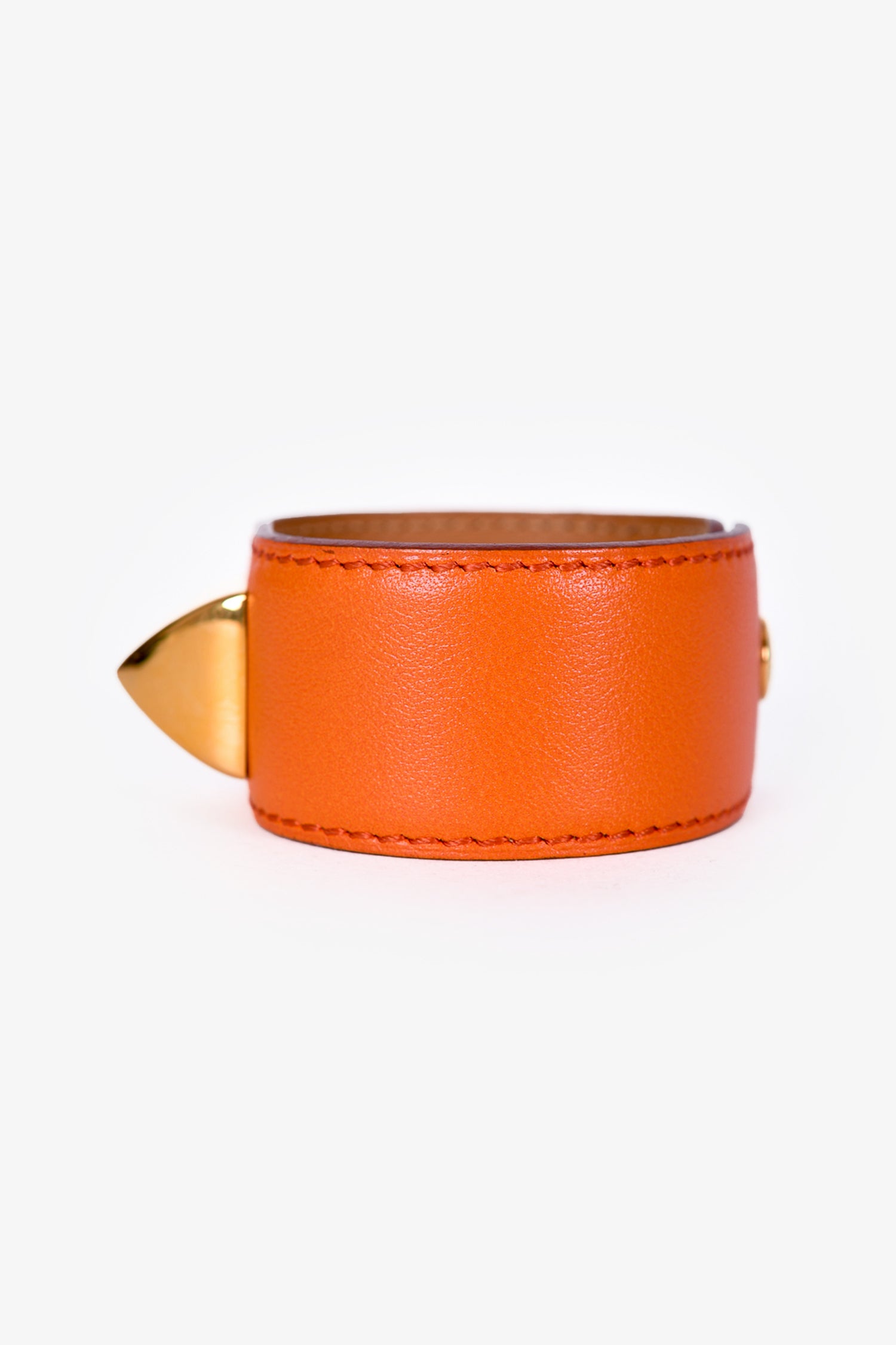 Refresh availabilityHermès 1998 Orange Leather Médor Bracelet. Gold-toned hardware.