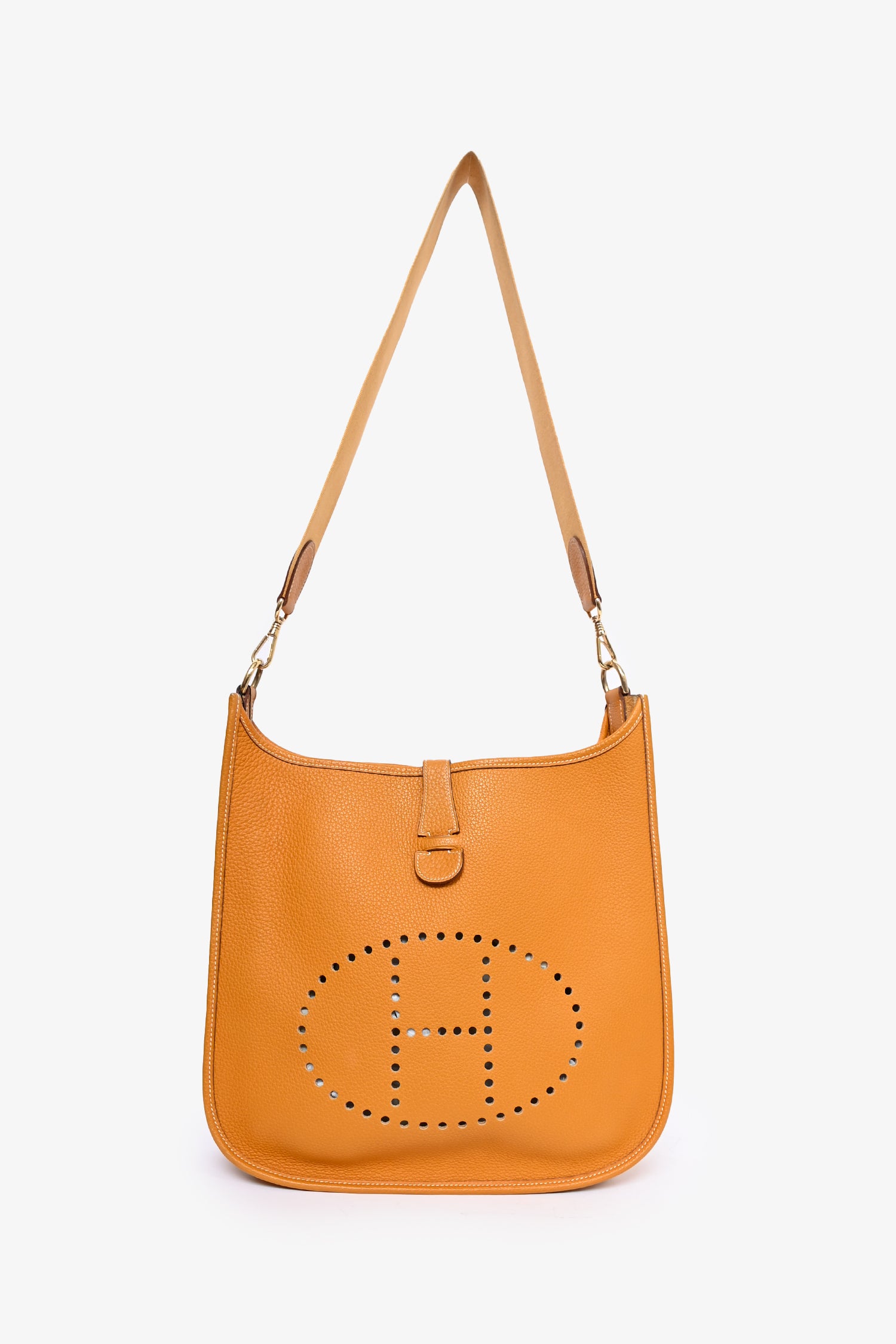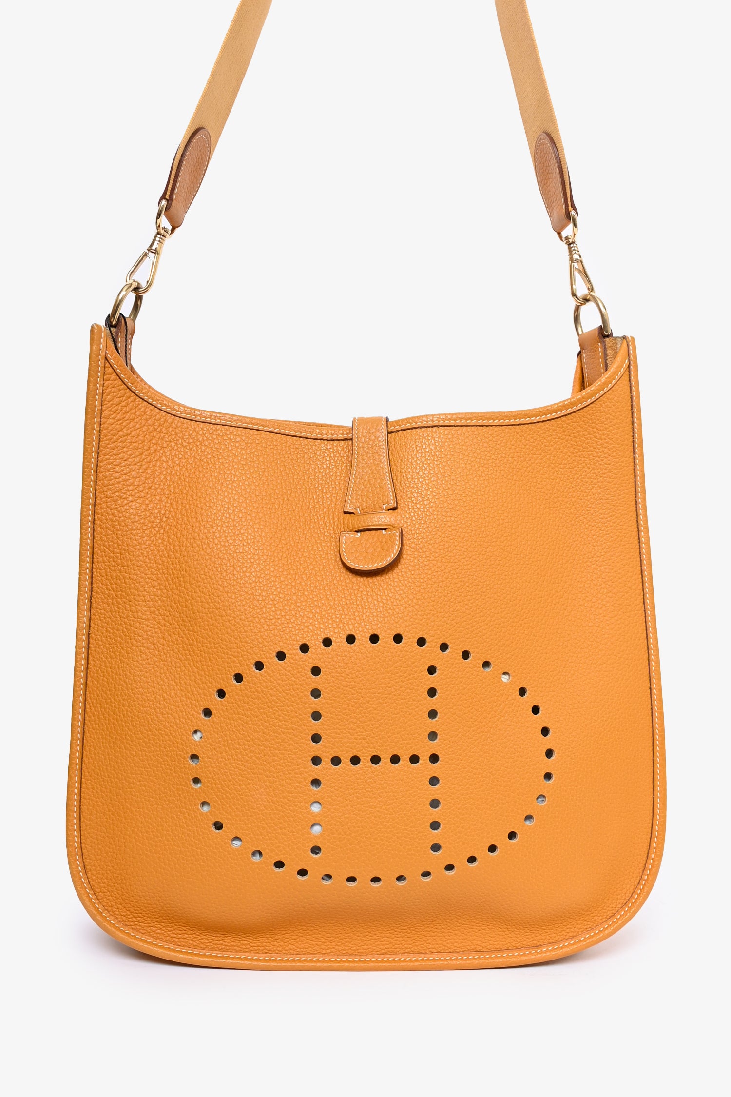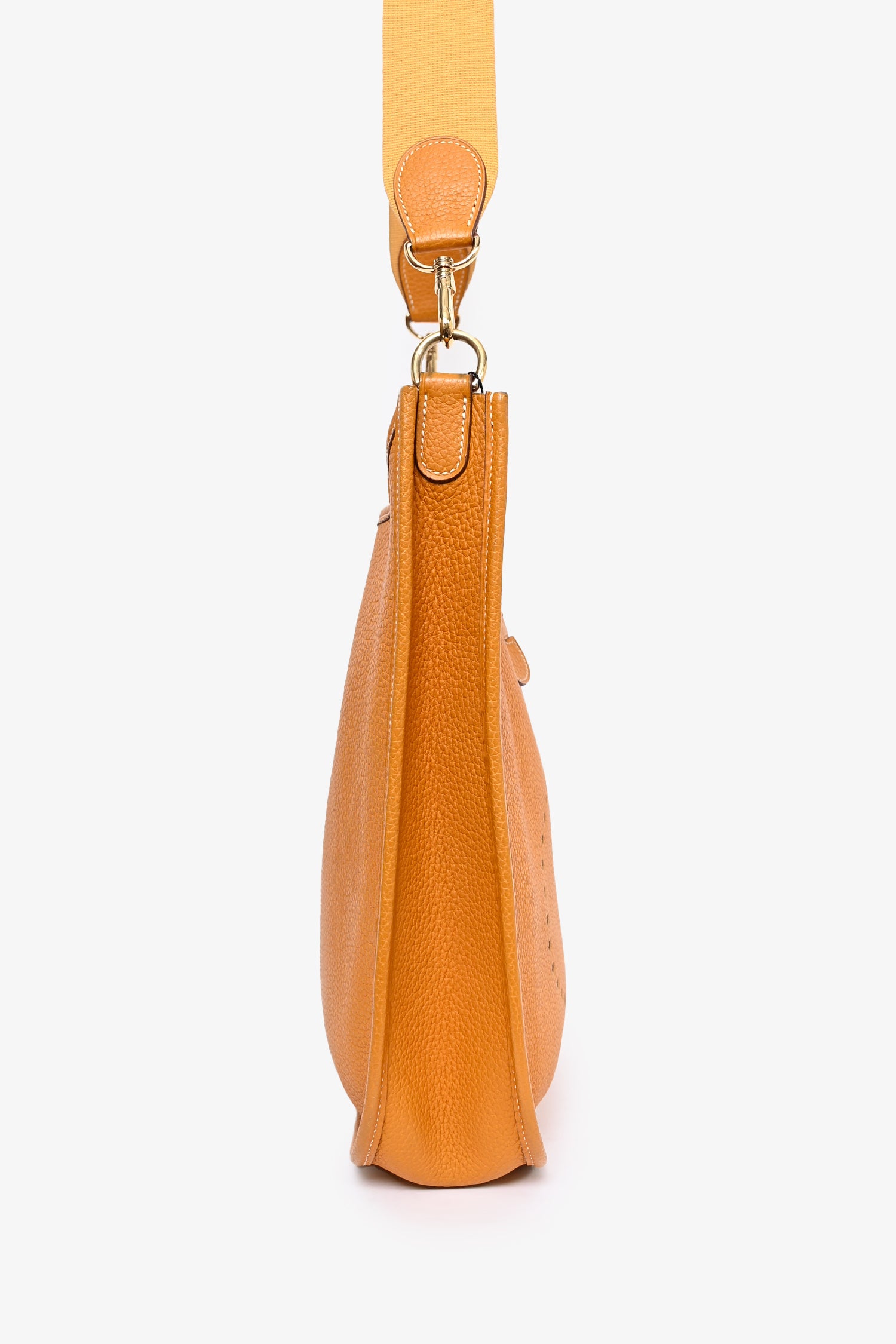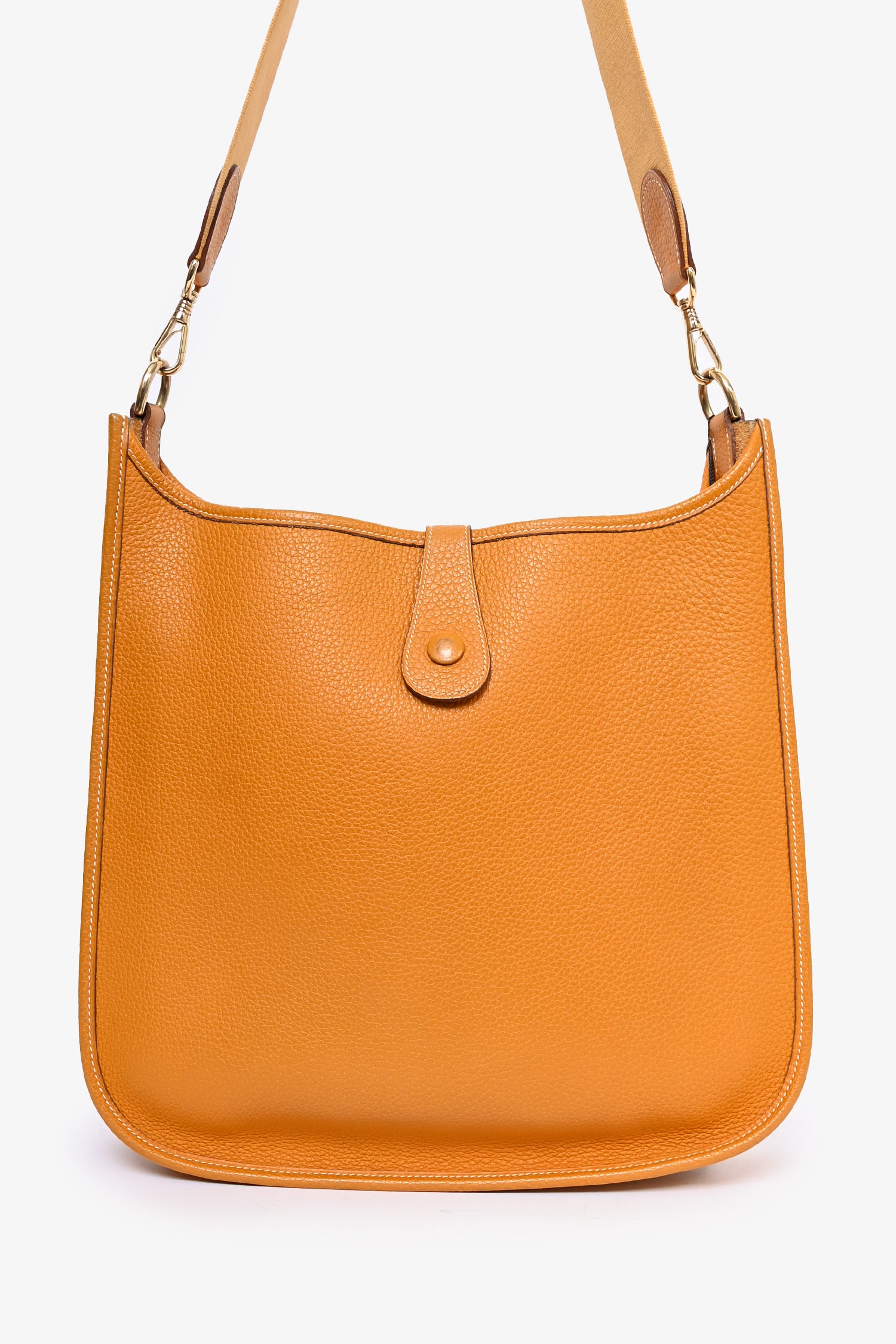 Hermès 2002 Orange Clemence Leather Evelyn GM Crossbody
