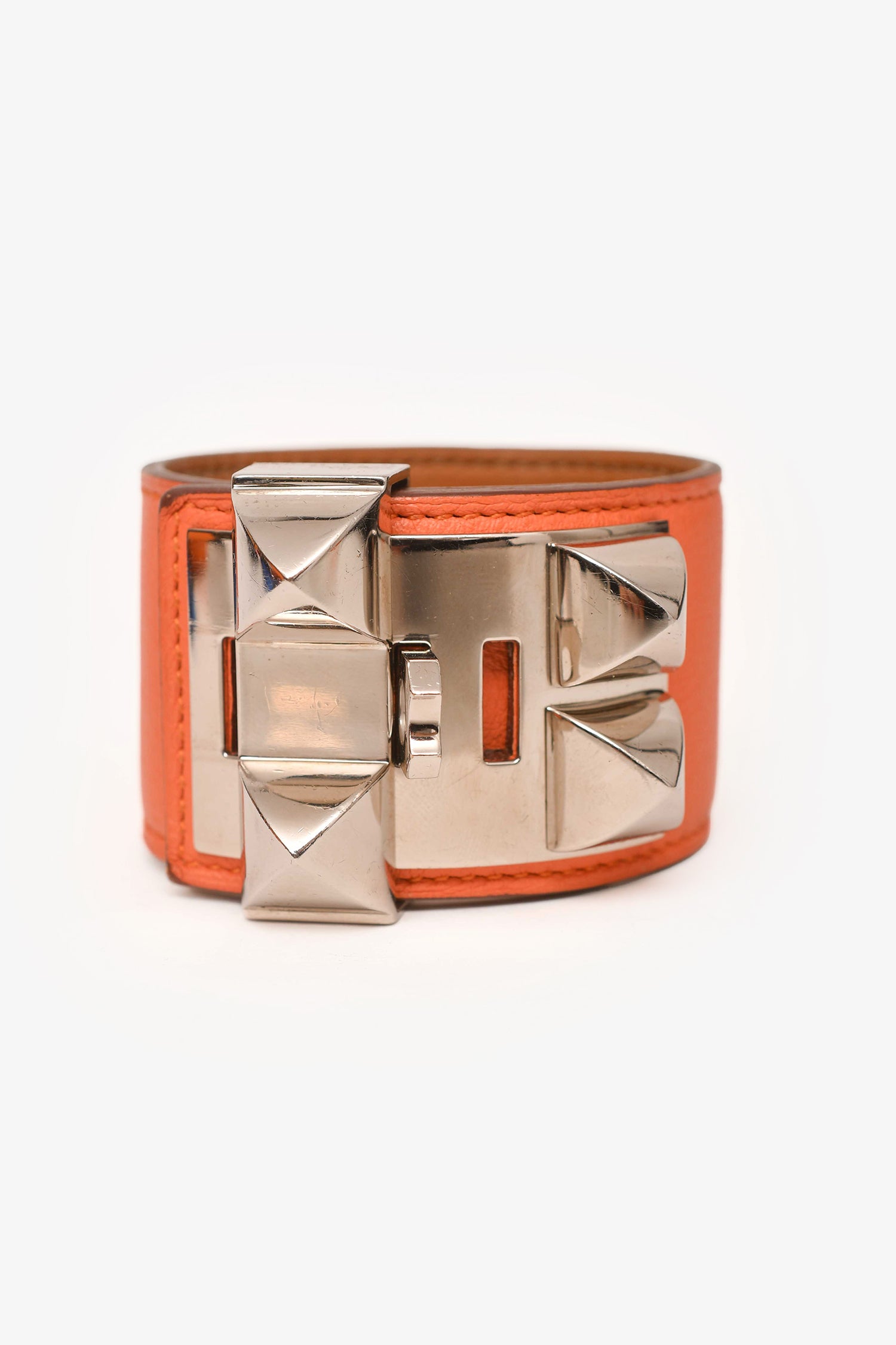 Refresh availabilityHermès 2011 Orange Swift Leather Collier De Chien Bracelet. Adjustable closure. Silver-tone hardware. Tonal stitching.