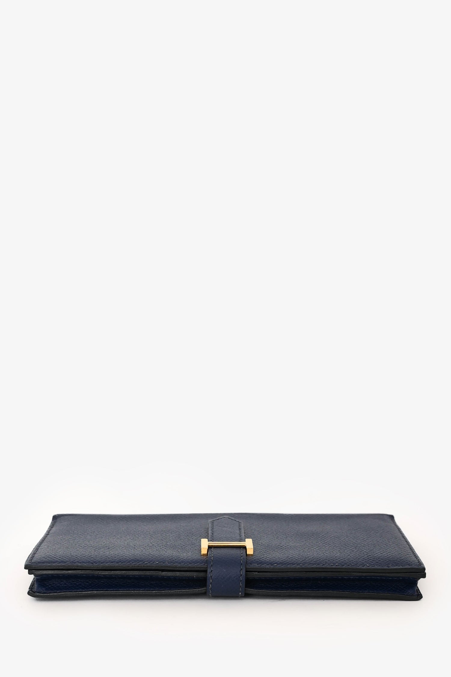 Hermès 2011 Navy Epsom Leather Bearn Long Wallet Gold Hardware