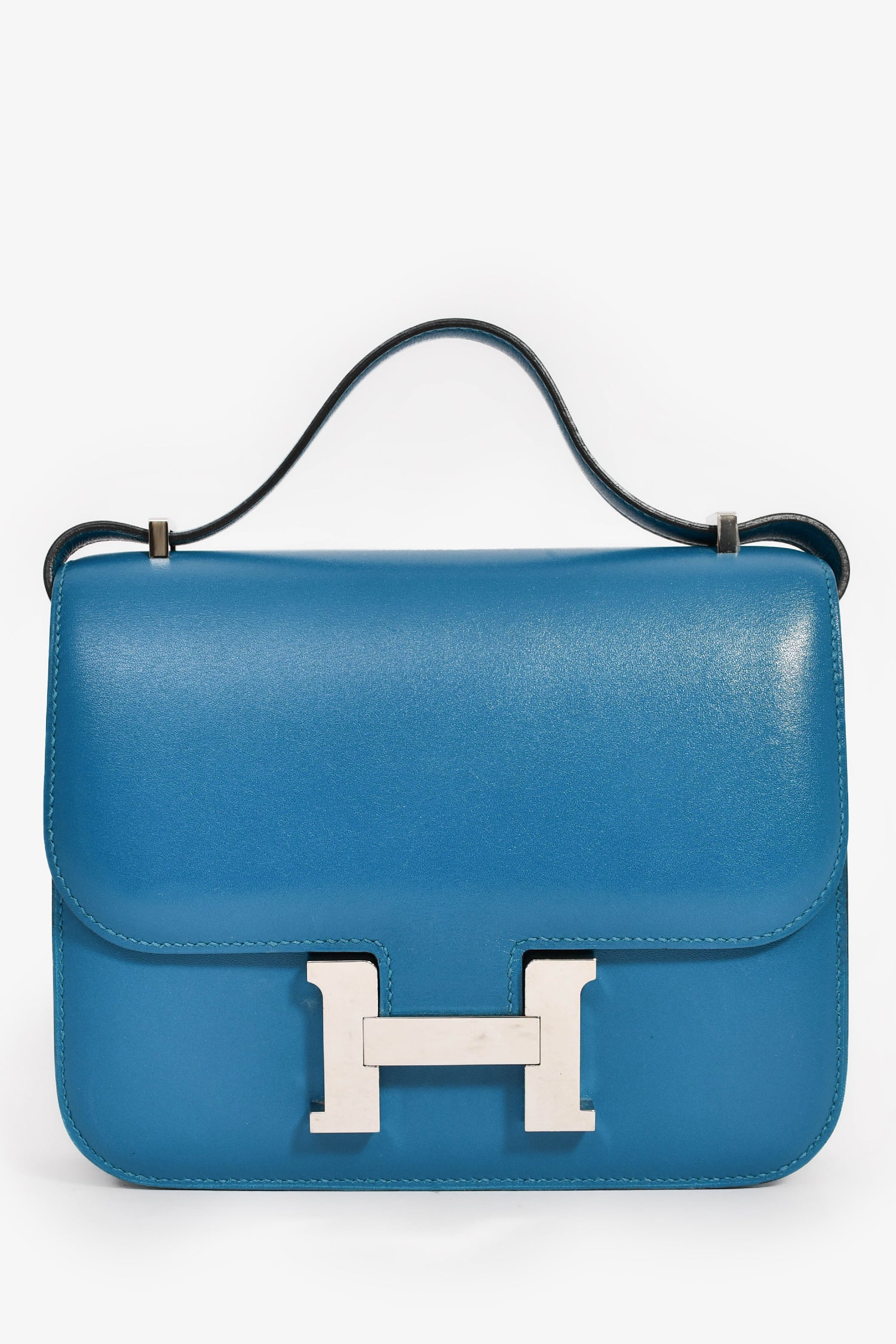 Refresh availabilityHermes 2017 Bleu Izmir Tadelakt Leather Constance 18. Front fold-over flap with clasp closure. 2 interior compartments with 2 slip pockets. Single crossbody strap. Coated trimming. Tonal stitching. Silver-tone hardware.