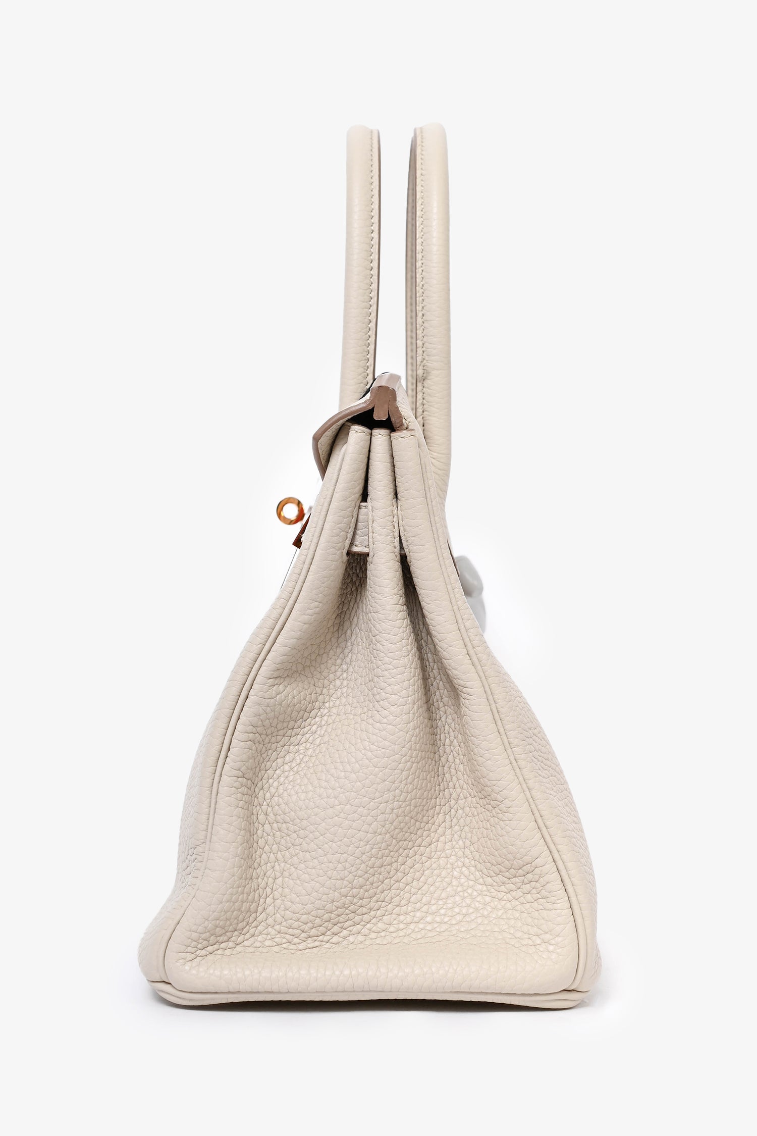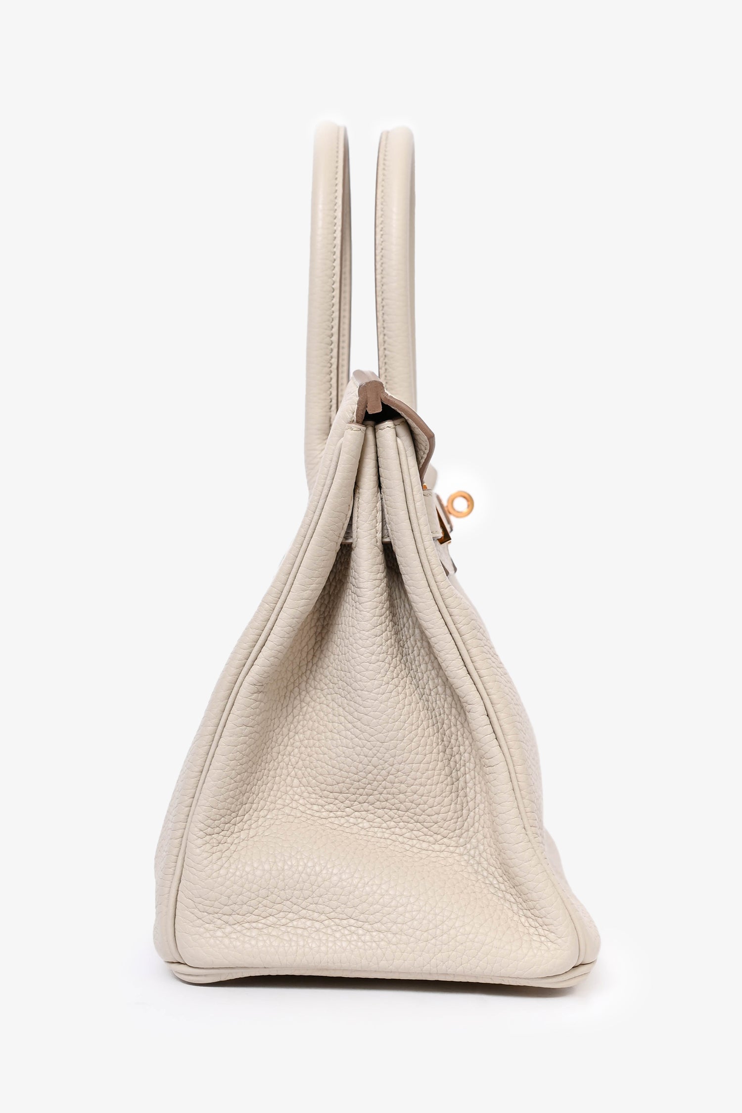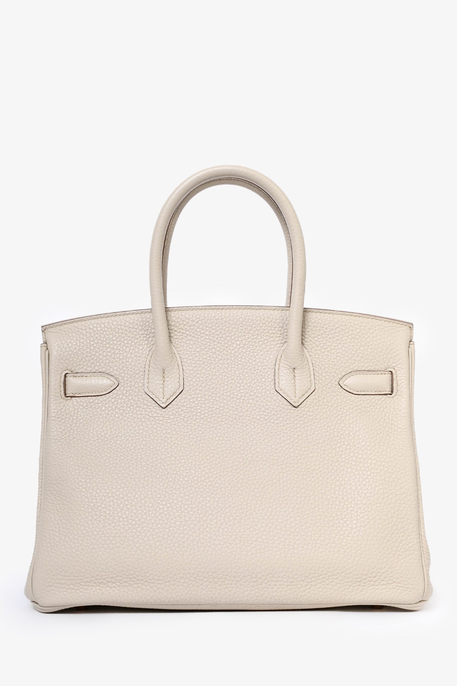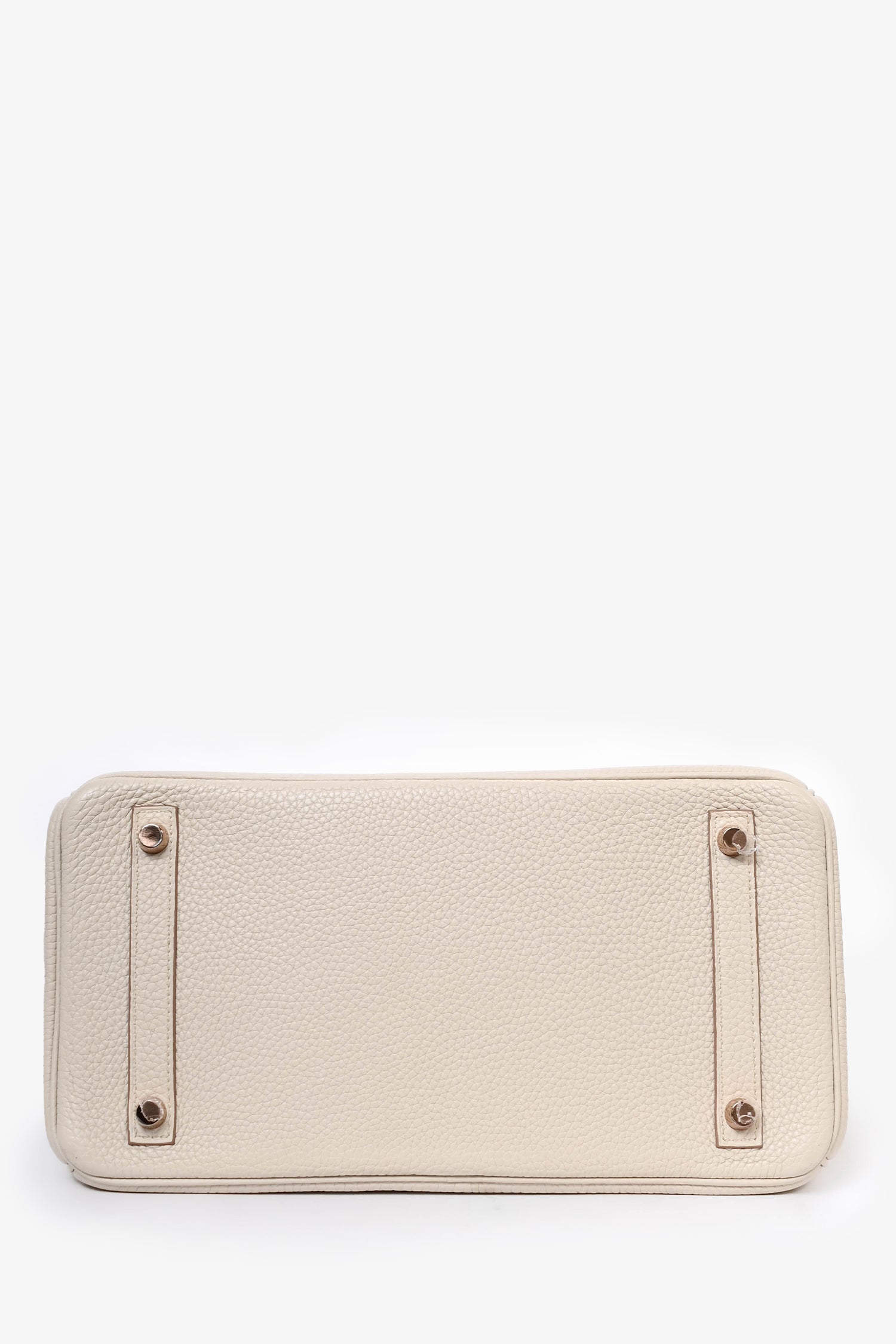 Refresh availabilityHermès 2019 Beton Clemence Leather Birkin 30. Rose gold-tone hardware. Dual rolled handles. Coated trimming. Front turn-lock closure with pull through straps. Bag feet at the base. Zipped interior compartment.
