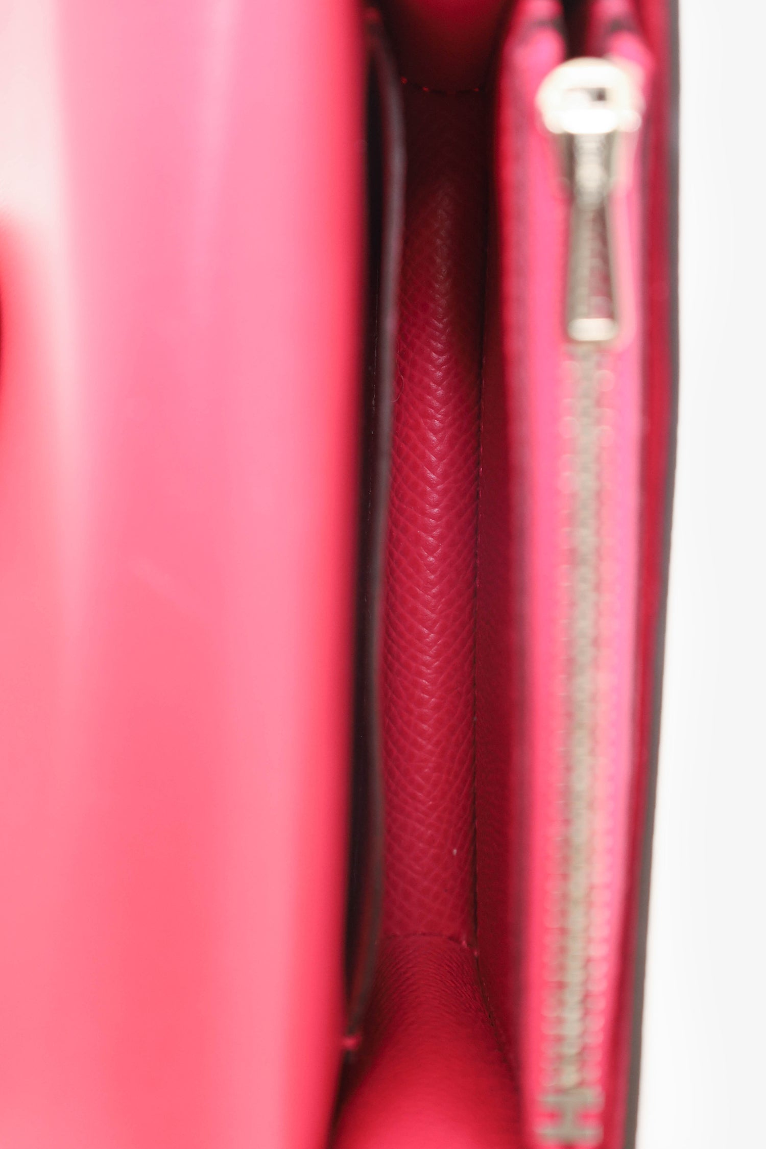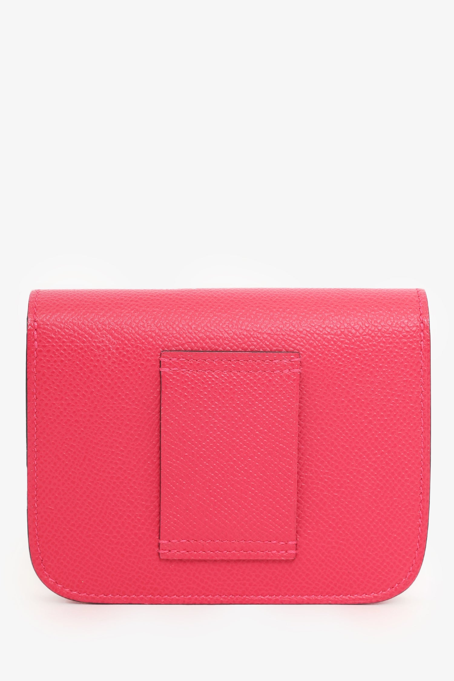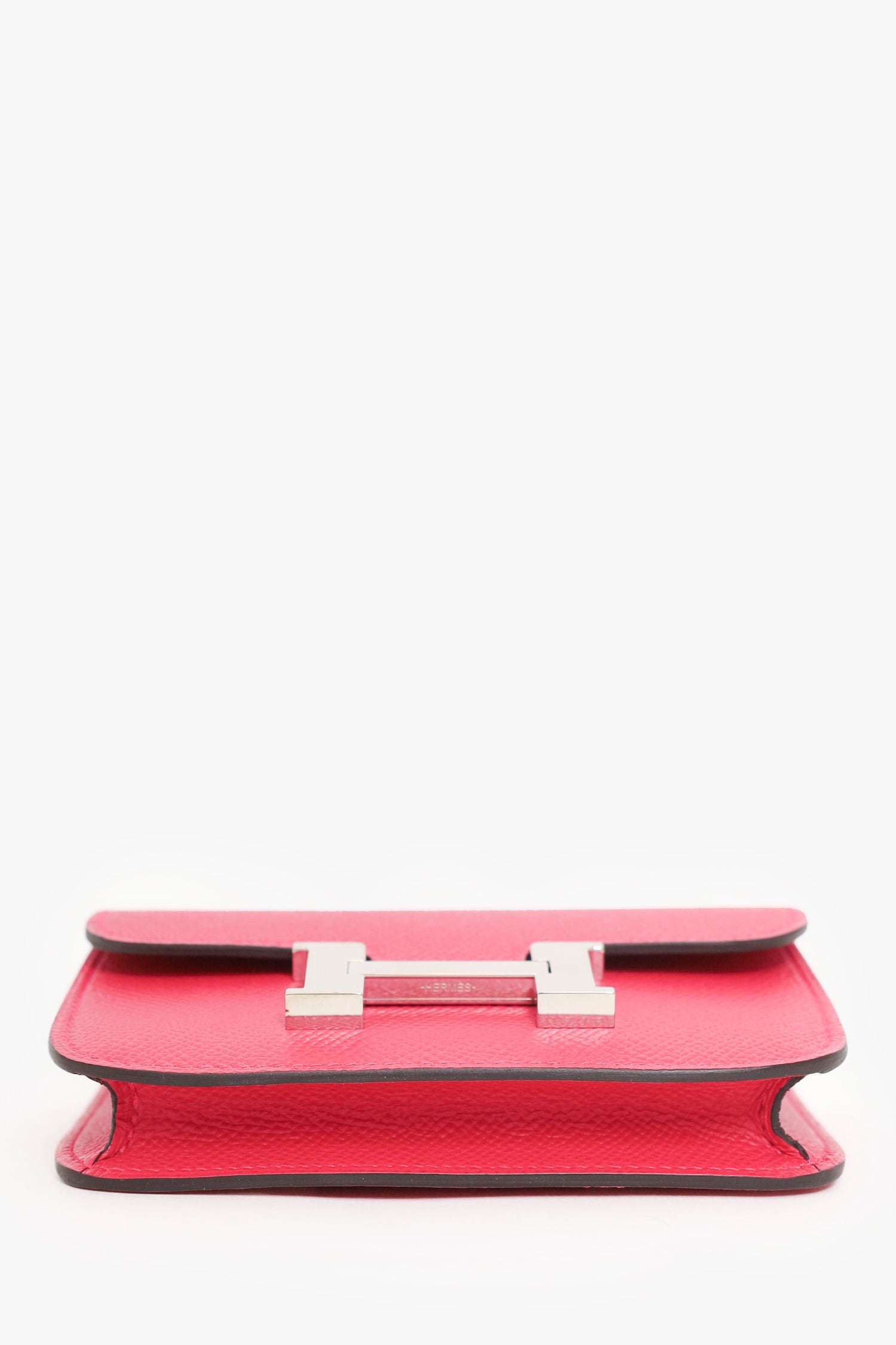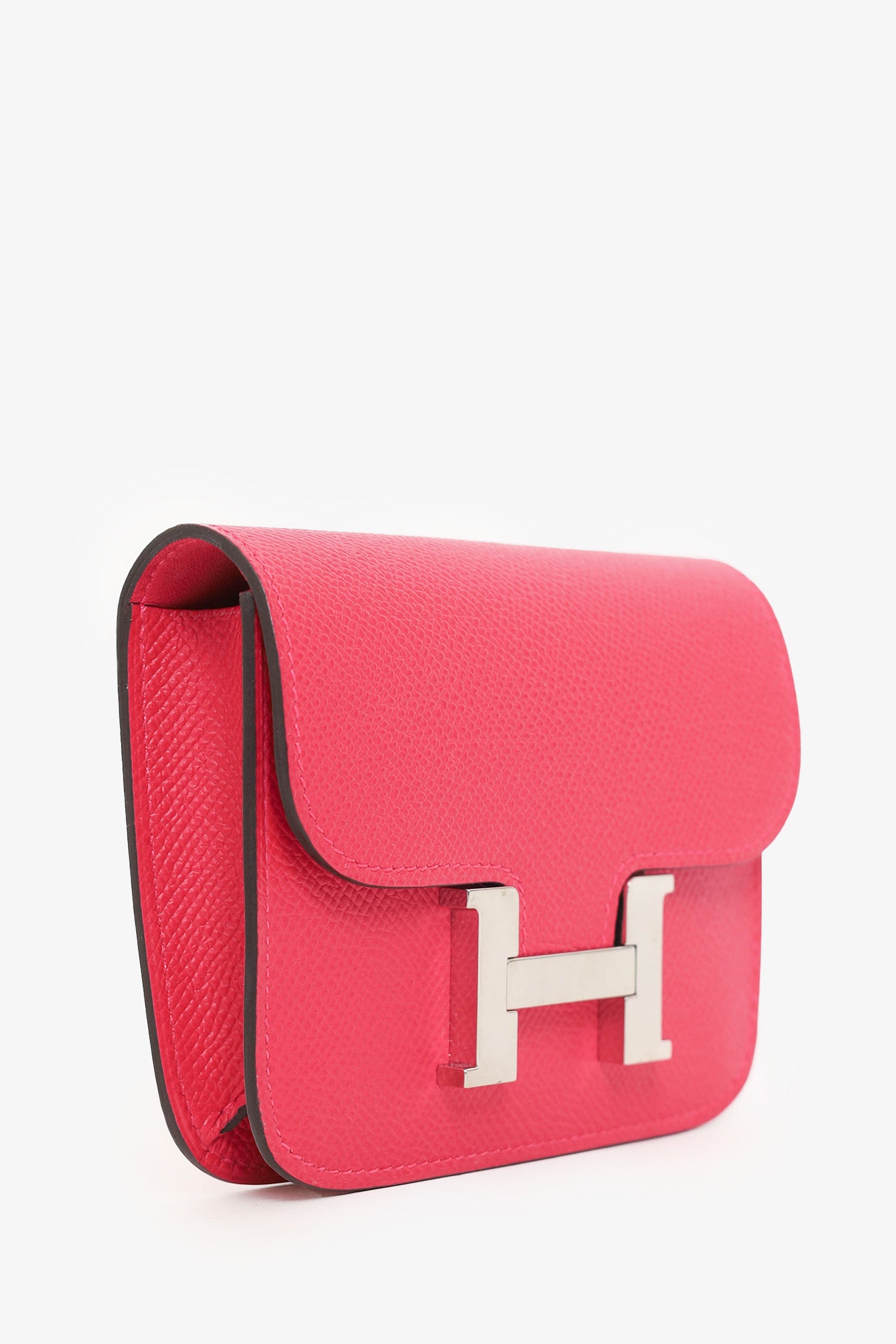 Refresh availabilityHermès 2020 Rose Mexico Epsom Leather Constance Slim. Front fold-over flap with push-lock closure. 2 interior slip pockets with removable zip closure pouch. Silver-tone hardware. Tonal stitching.