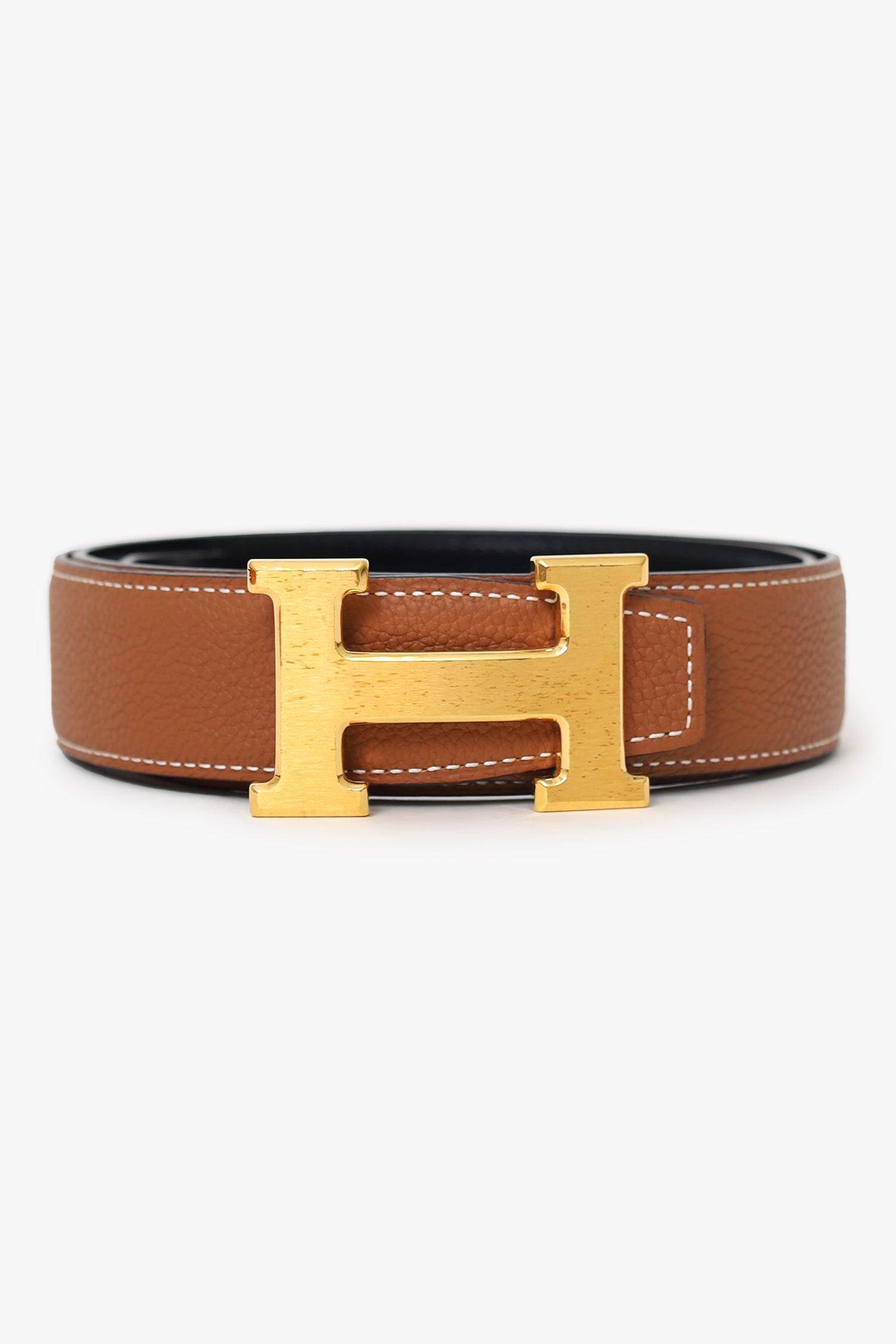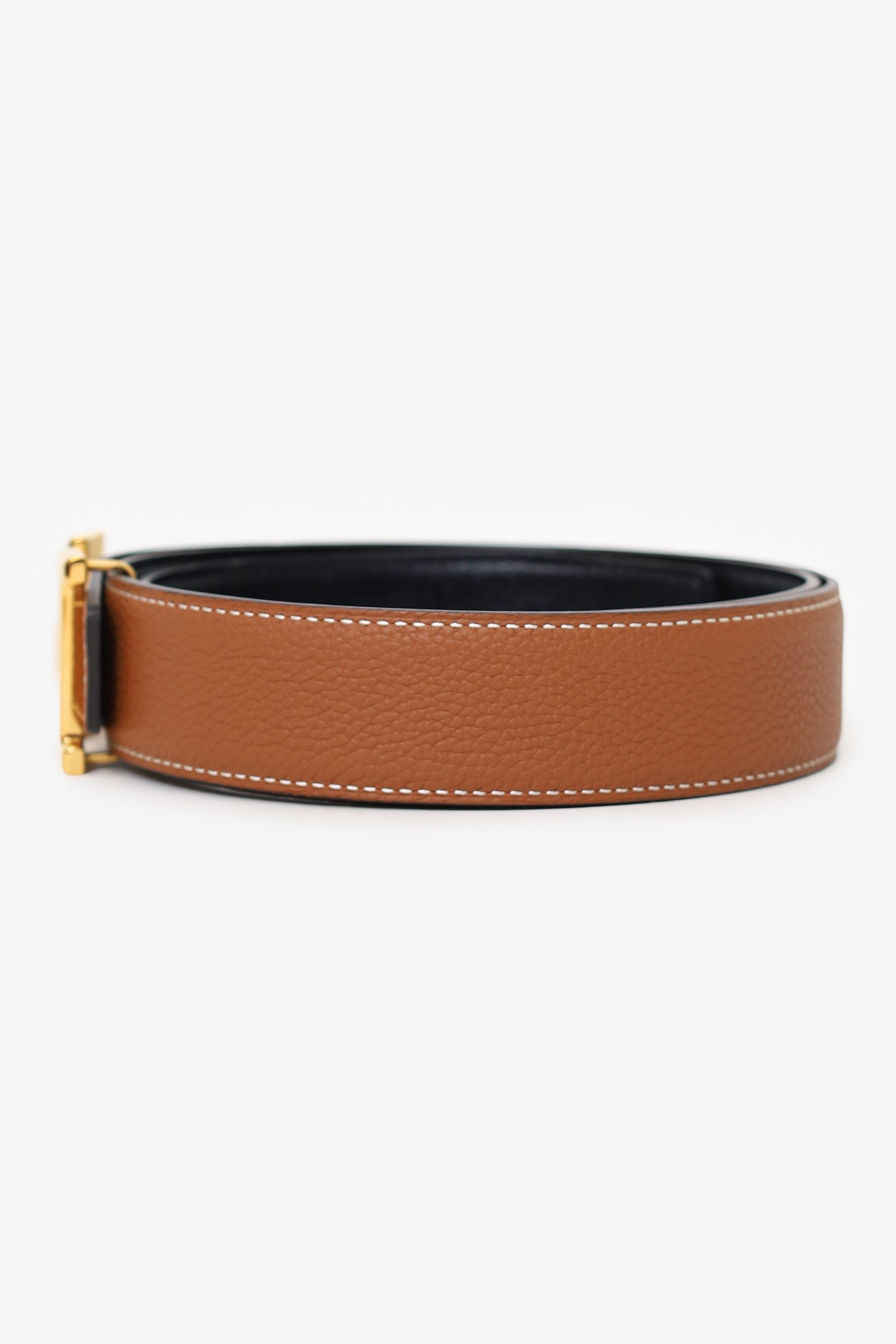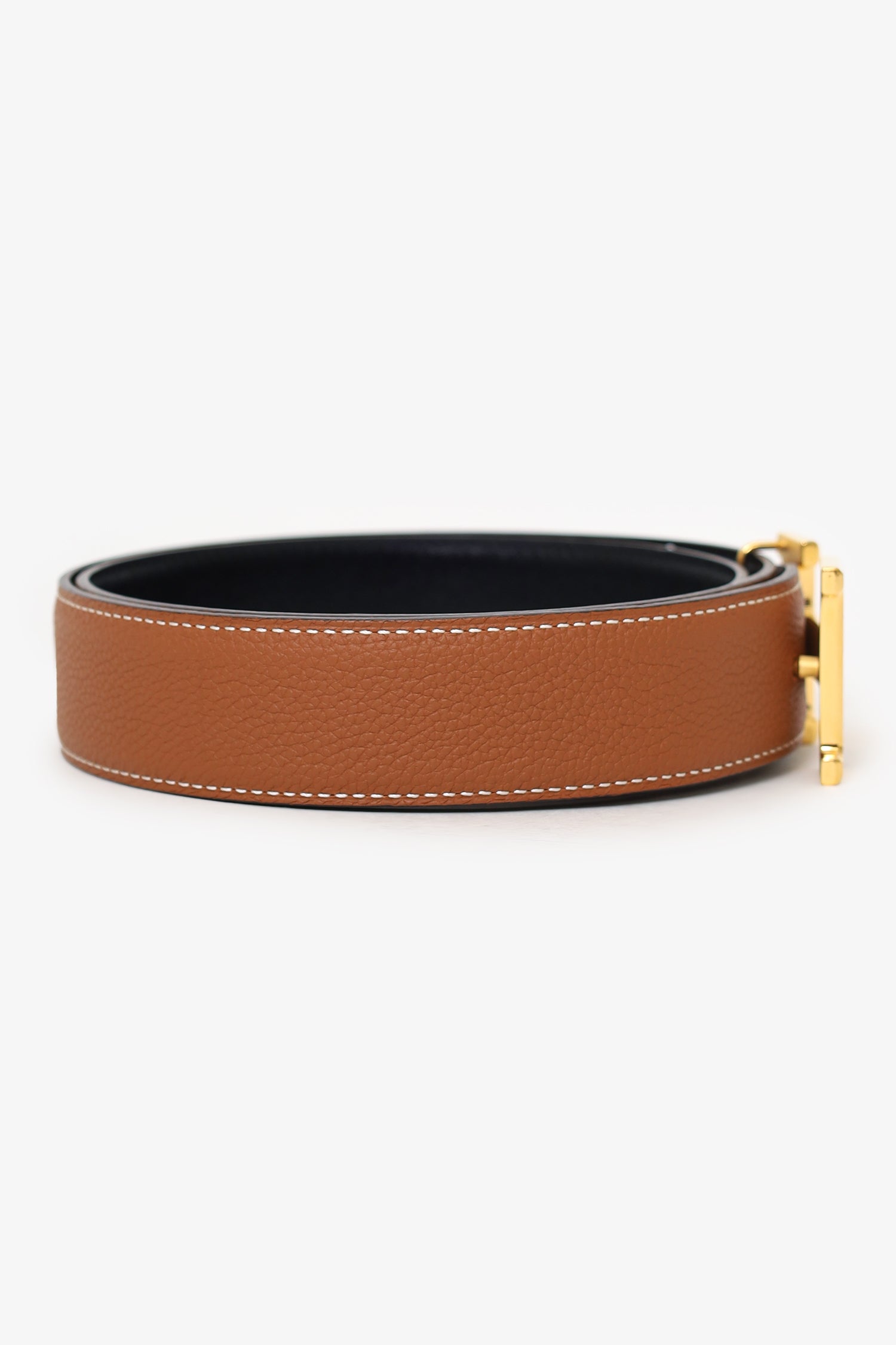 Hermès 2022 Gold/Black Reversible Leather Gold H Belt