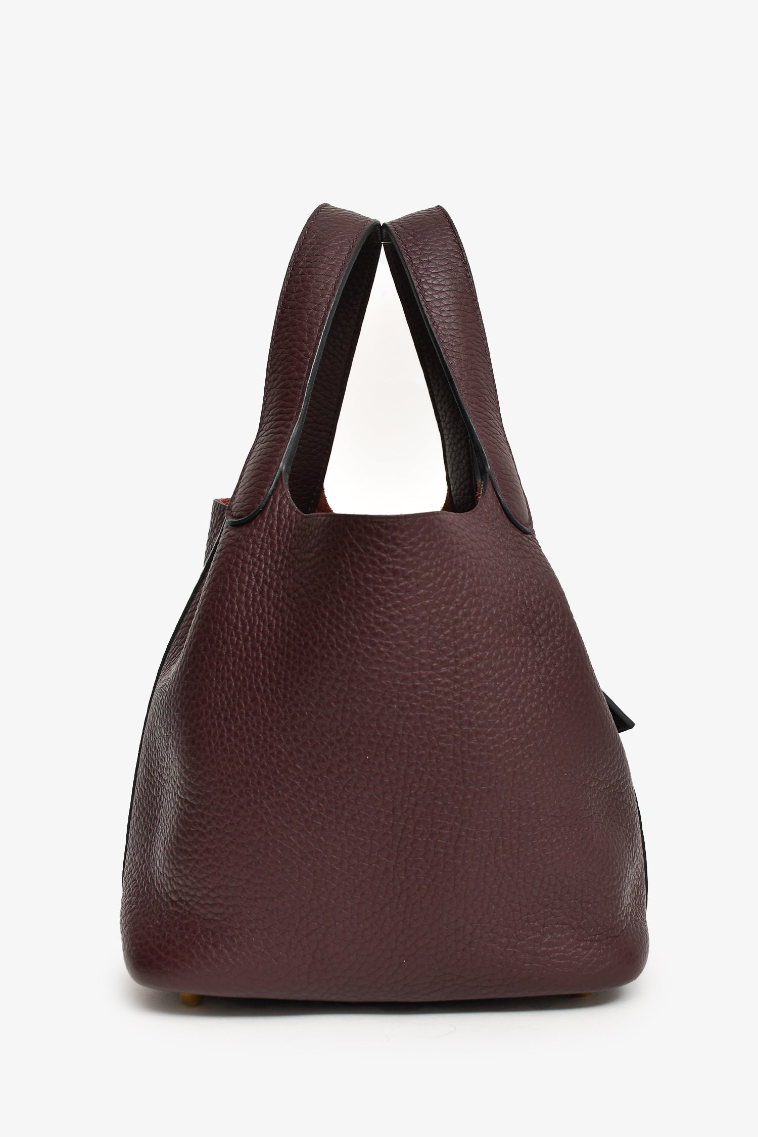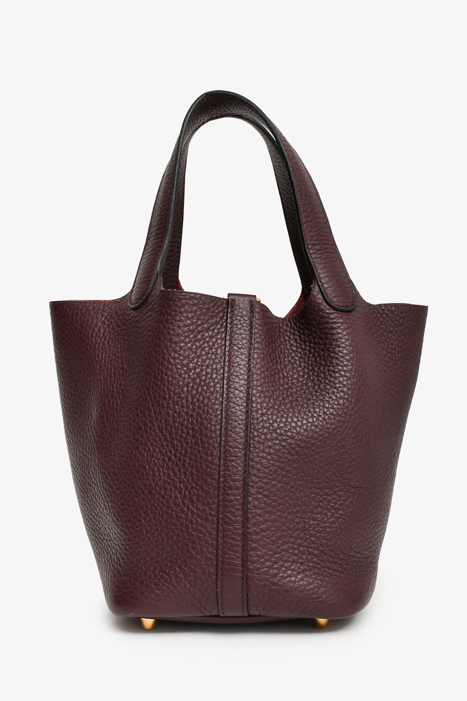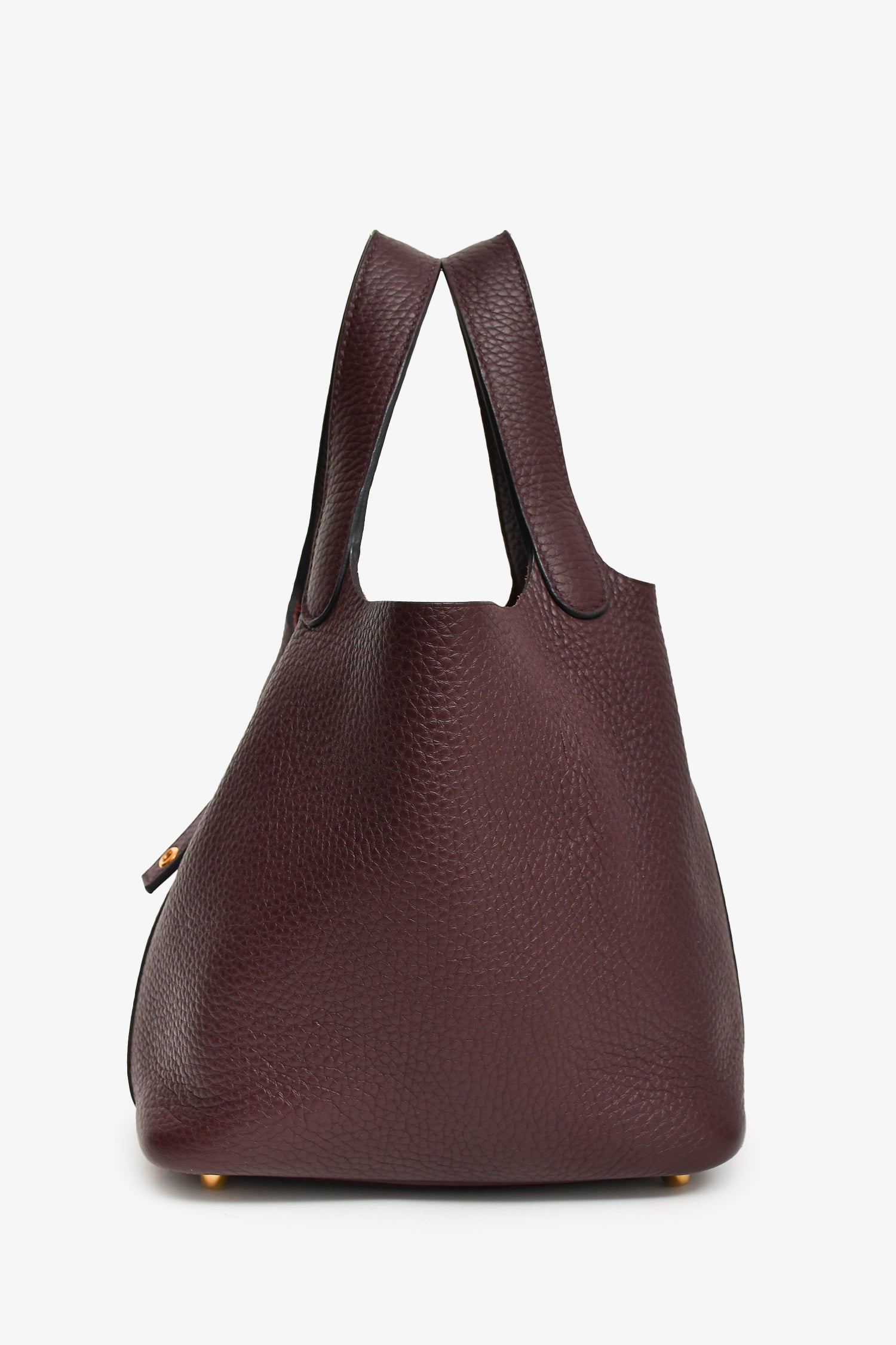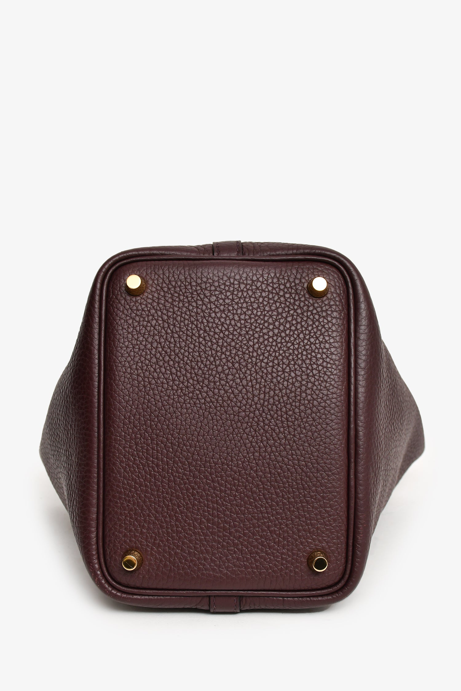 Refresh availabilityHermès 2022 Purple Clemence Leather Picotin 18. Dual handle. Top buckle closure. Single compartment. Suede lining. Protective bottom. Gold-tone hardware. Tonal stitching.