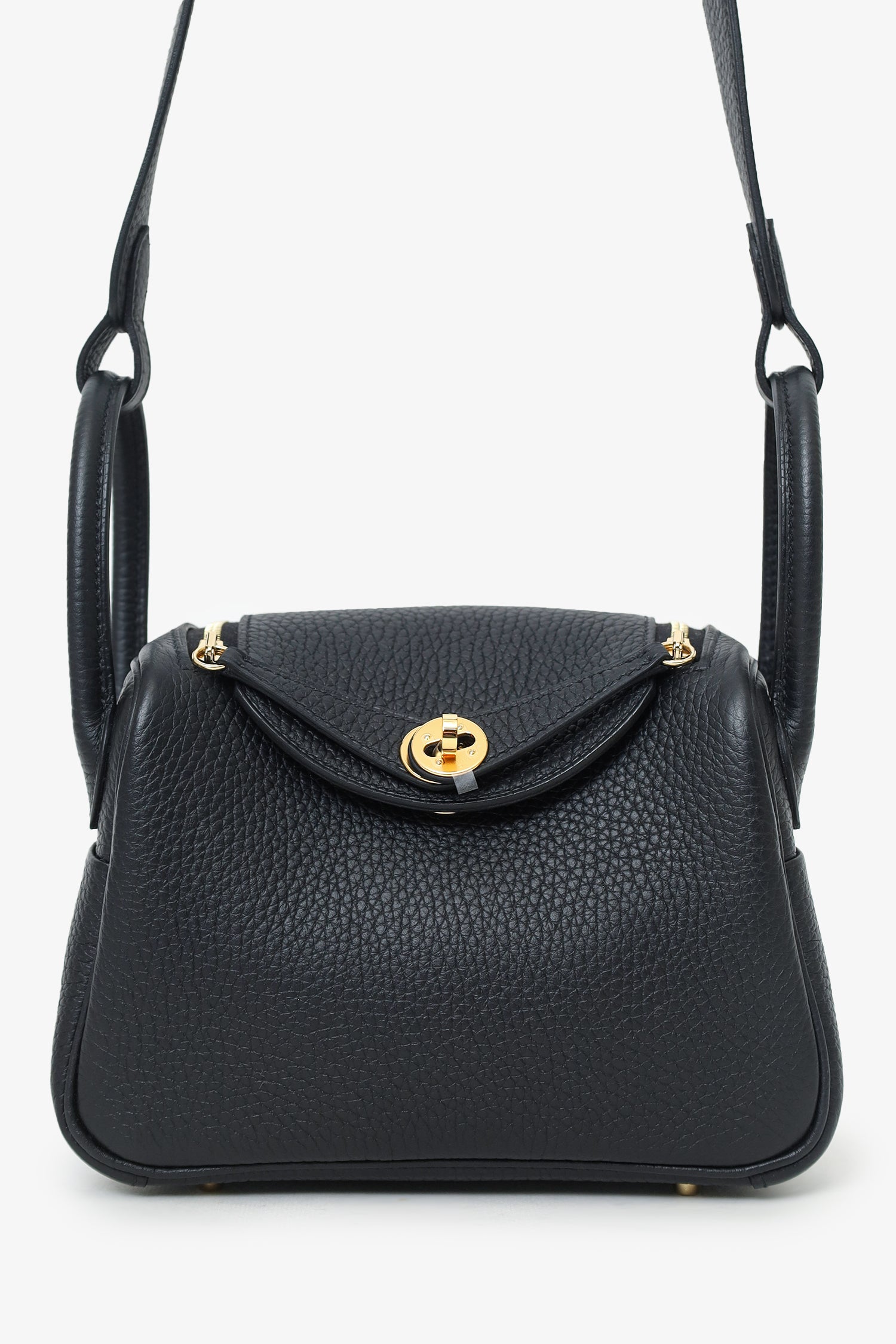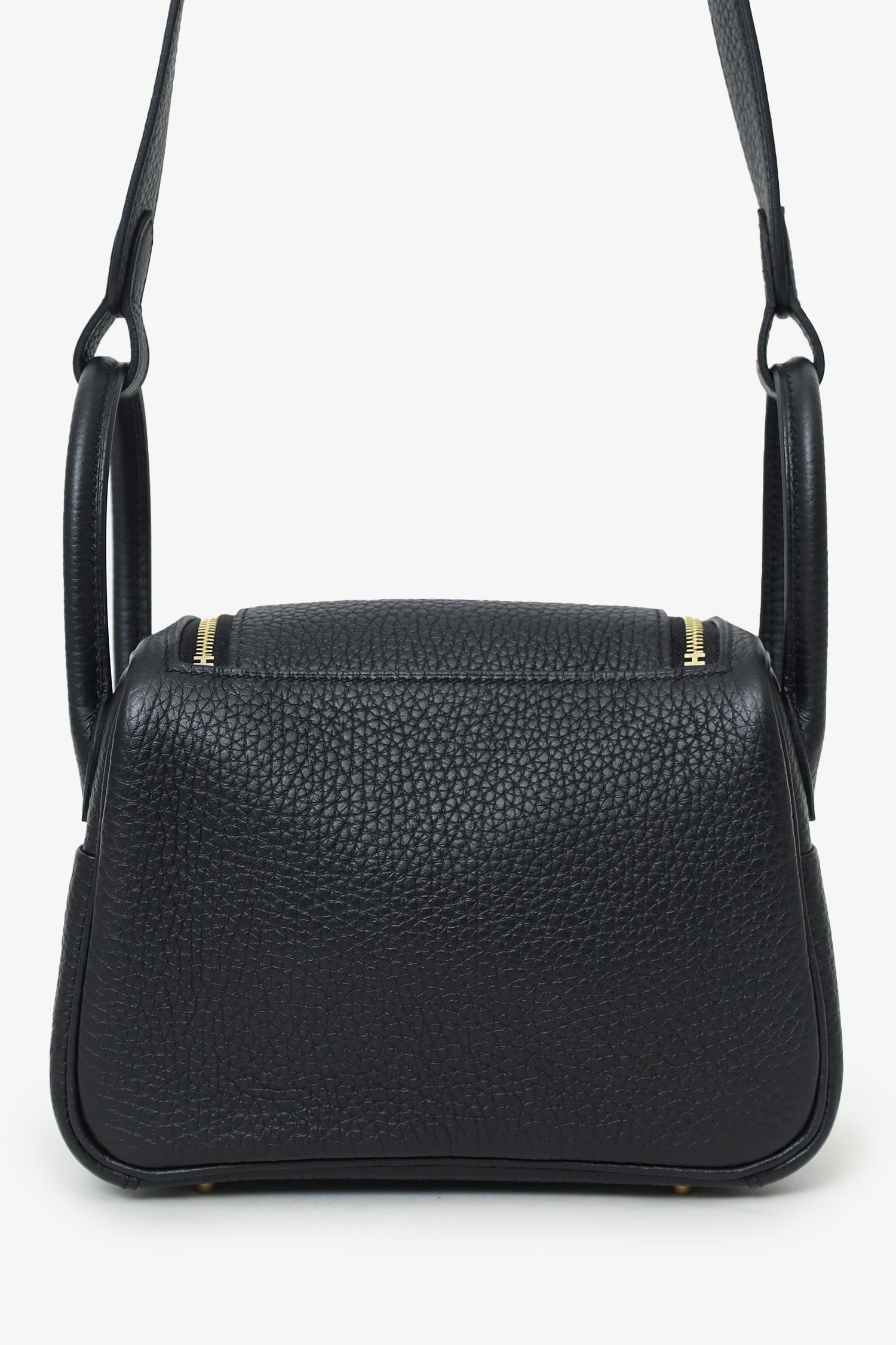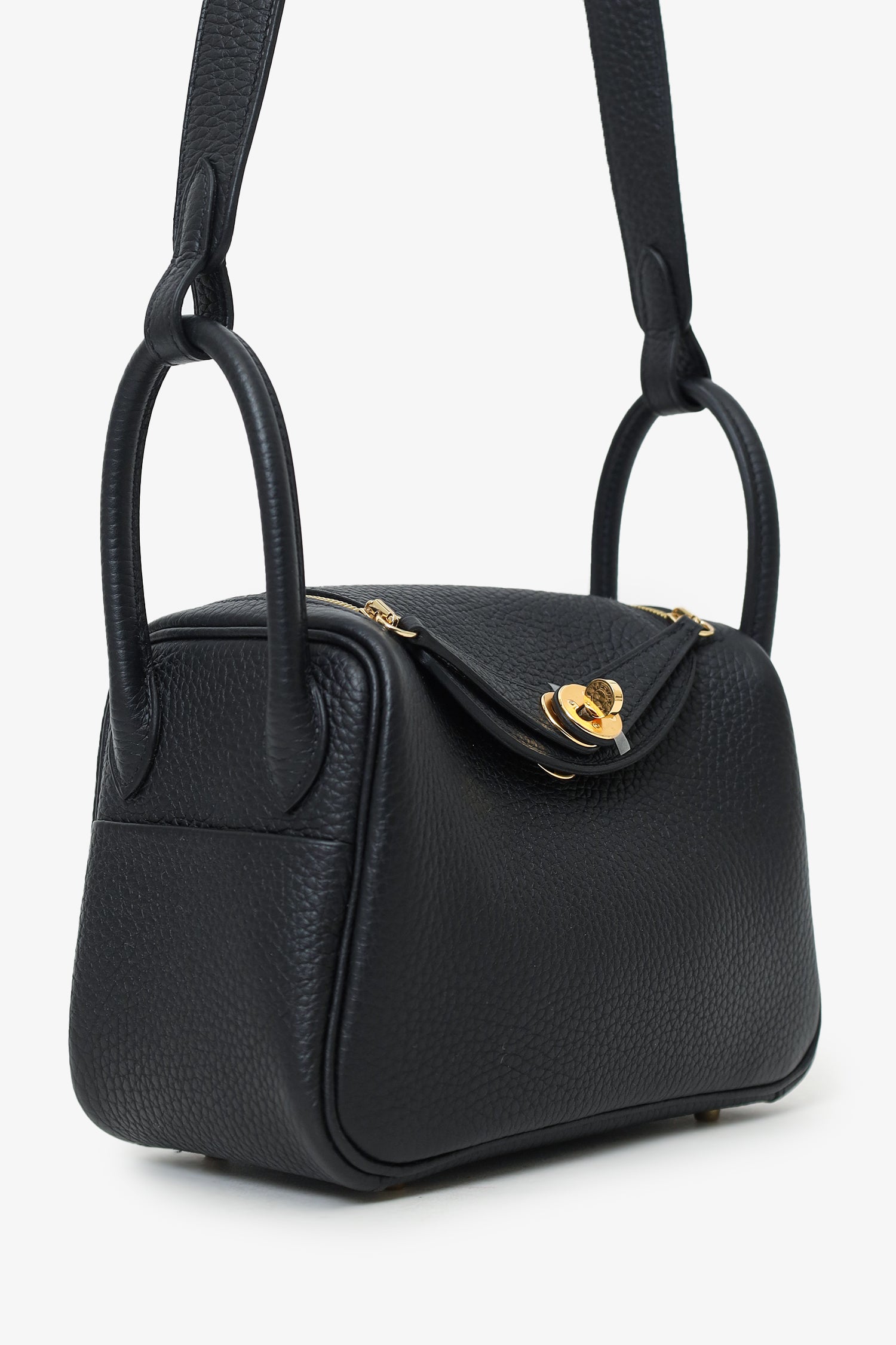 Refresh availabilityHermès 2021 Black Clemence Leather Lindy 26. Top two-way zipper strap and turn-lock closure. Dual top handles. Single crossbody strap. Two exterior side slip pockets. Single interior compartment with two side wall slip pockets. Bottom protective studs. Gold-tone hardware. Tonal stitching.