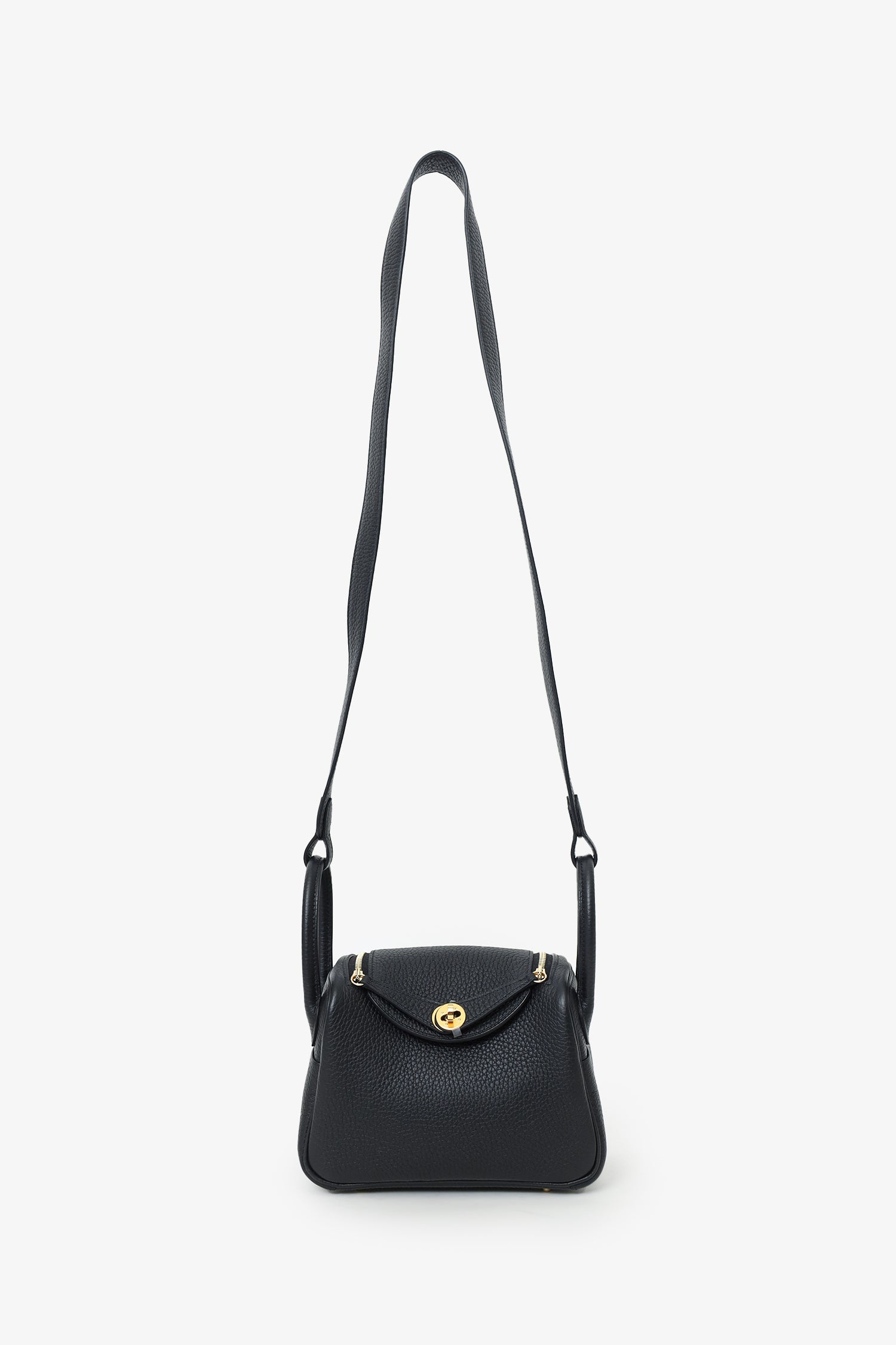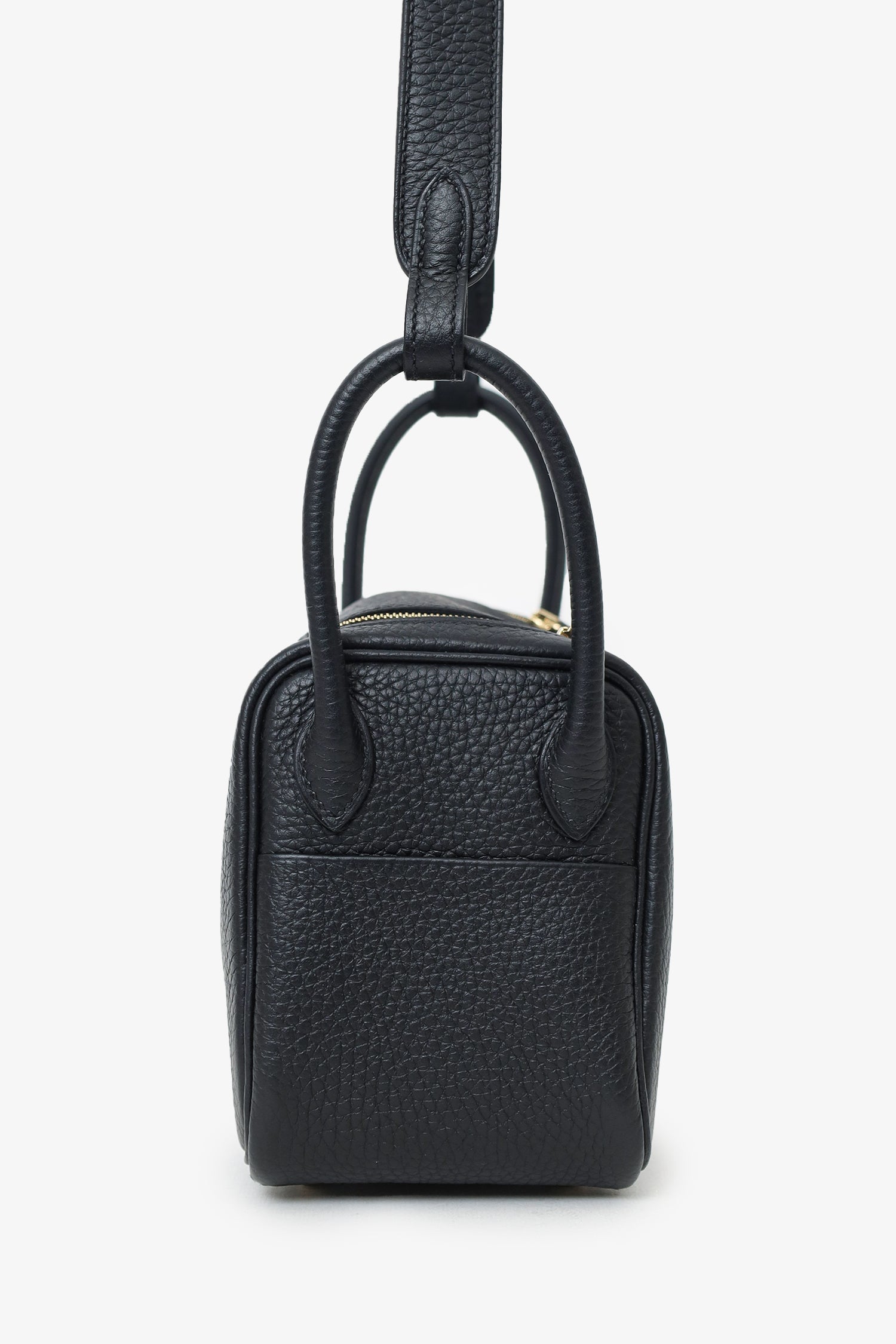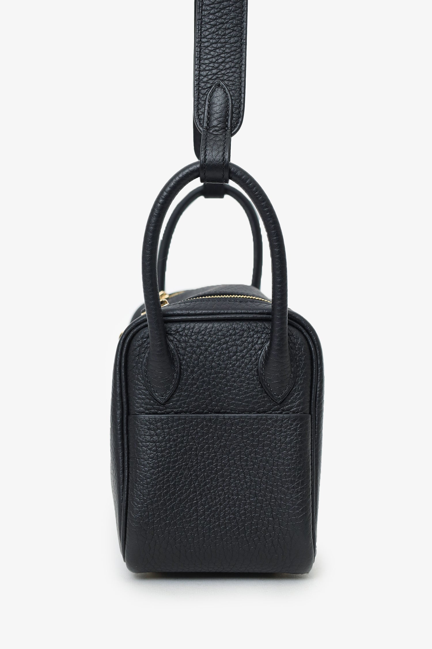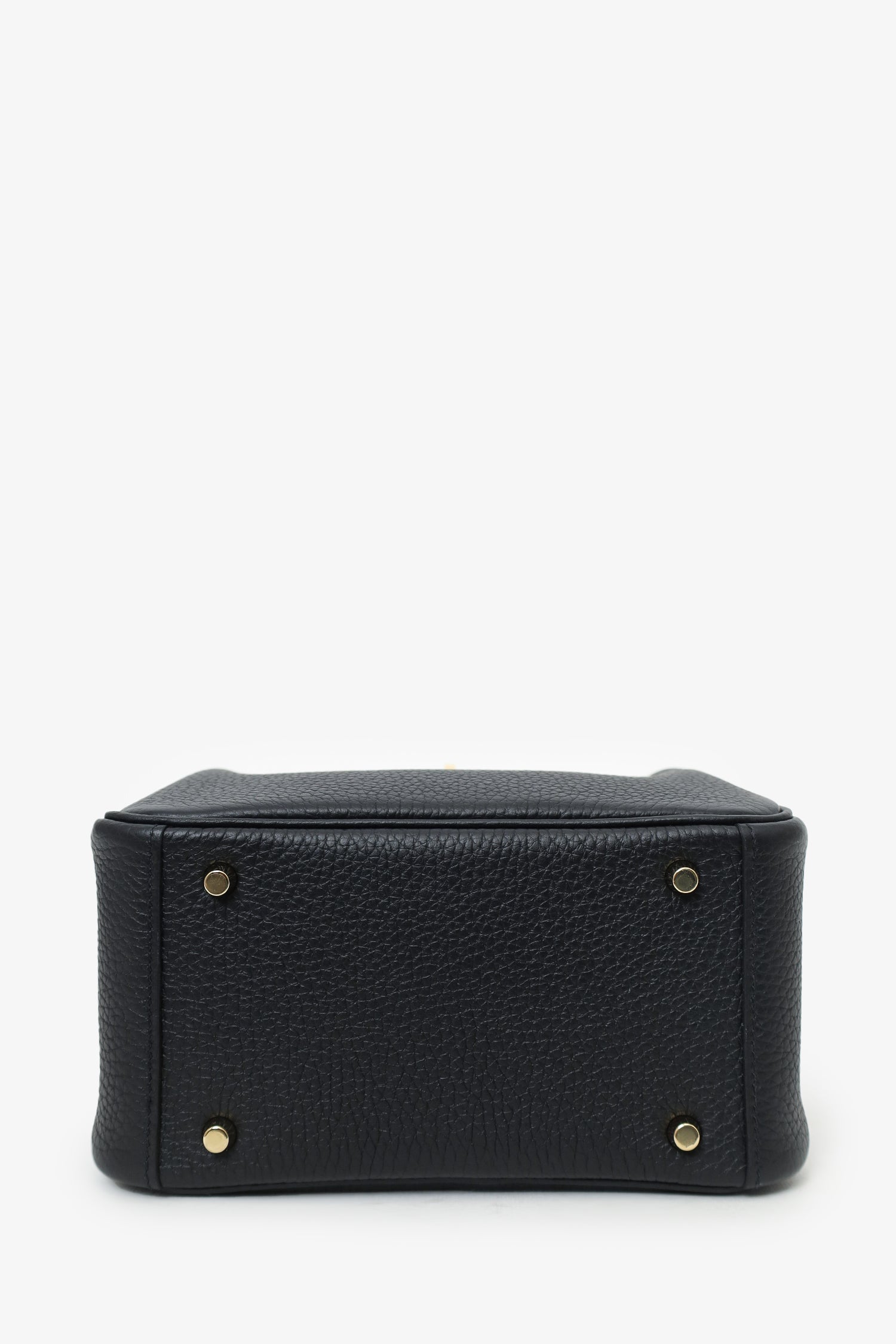 Refresh availabilityHermès 2021 Black Clemence Leather Lindy 26. Top two-way zipper strap and turn-lock closure. Dual top handles. Single crossbody strap. Two exterior side slip pockets. Single interior compartment with two side wall slip pockets. Bottom protective studs. Gold-tone hardware. Tonal stitching.