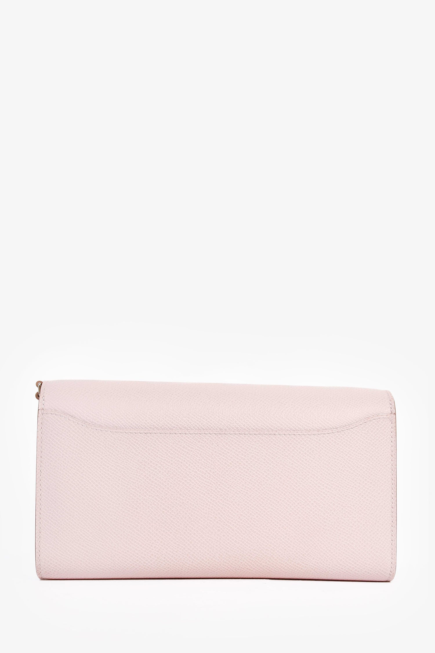Refresh availabilityHermès 2023 Light Pink Epsom Leather Constance to Go SHW. Silver-tone hardware. Fold-over flap. Push-open closure. 6 card slots. 4 interior compartments. 1 bill compartment. Single zipped compartment. Comes with a strap. Tonal stitching.